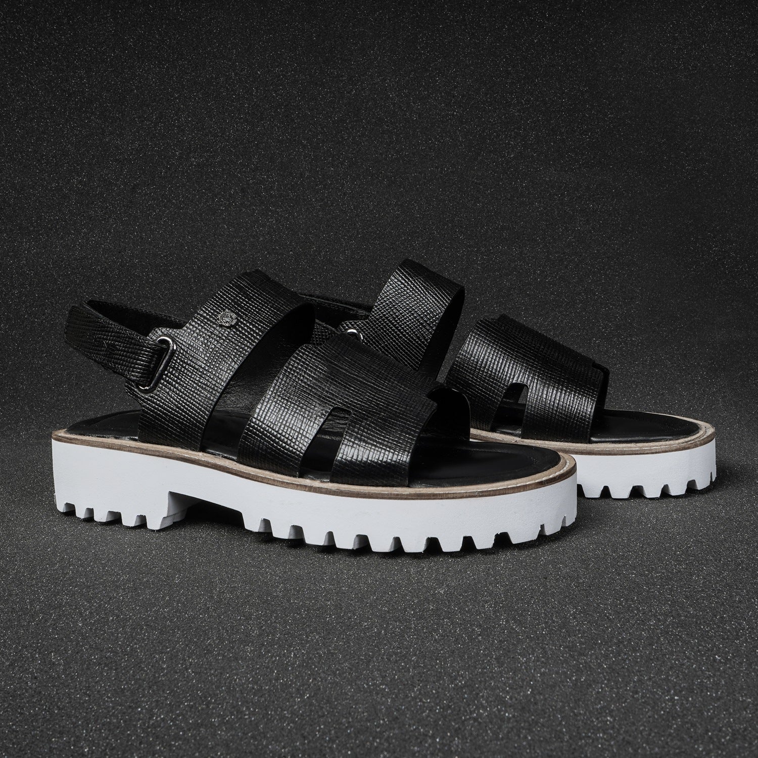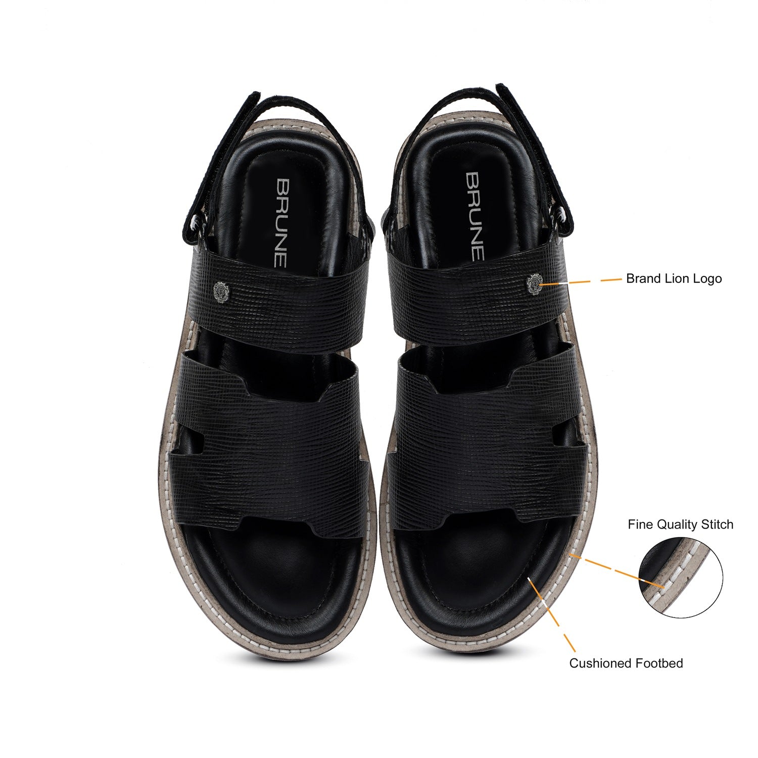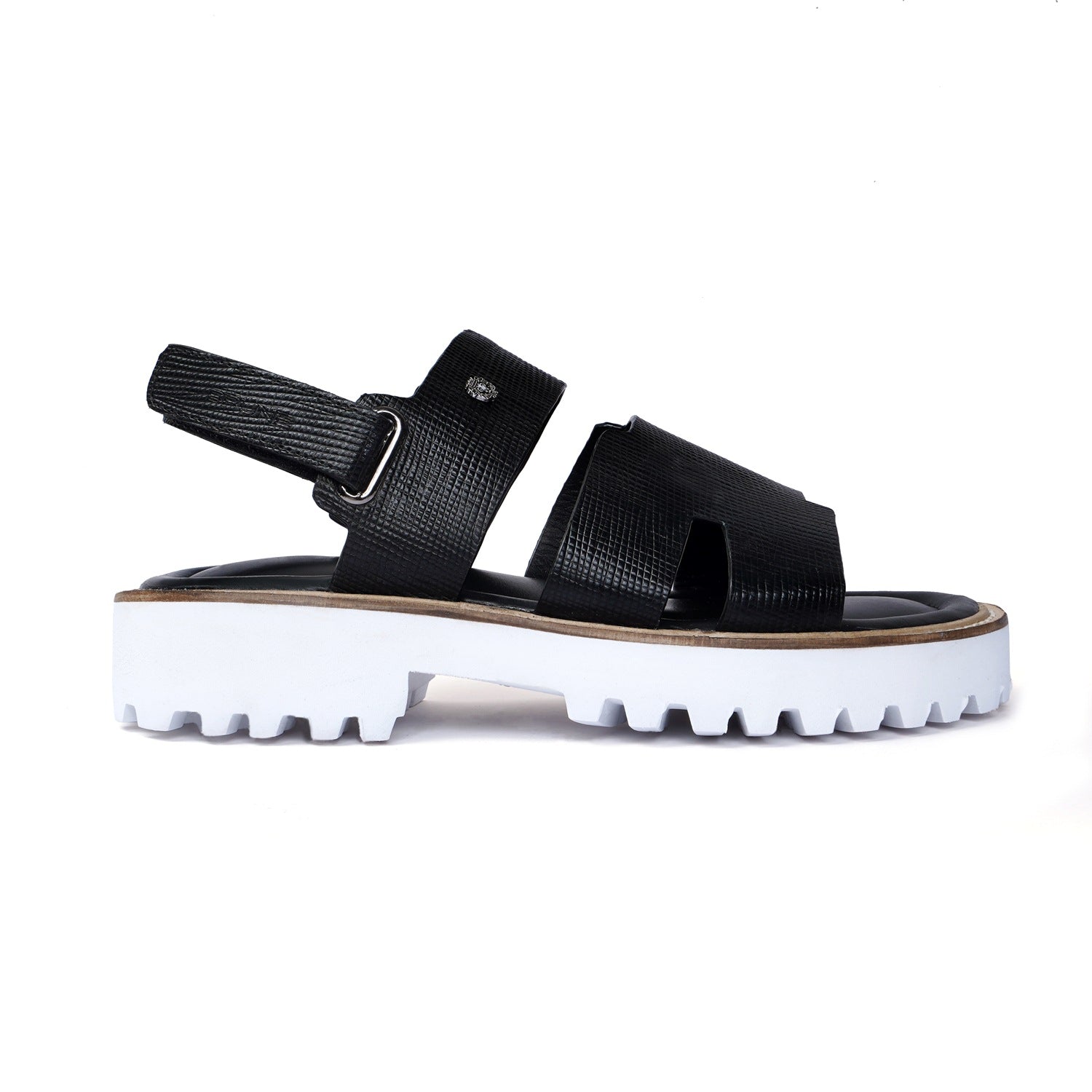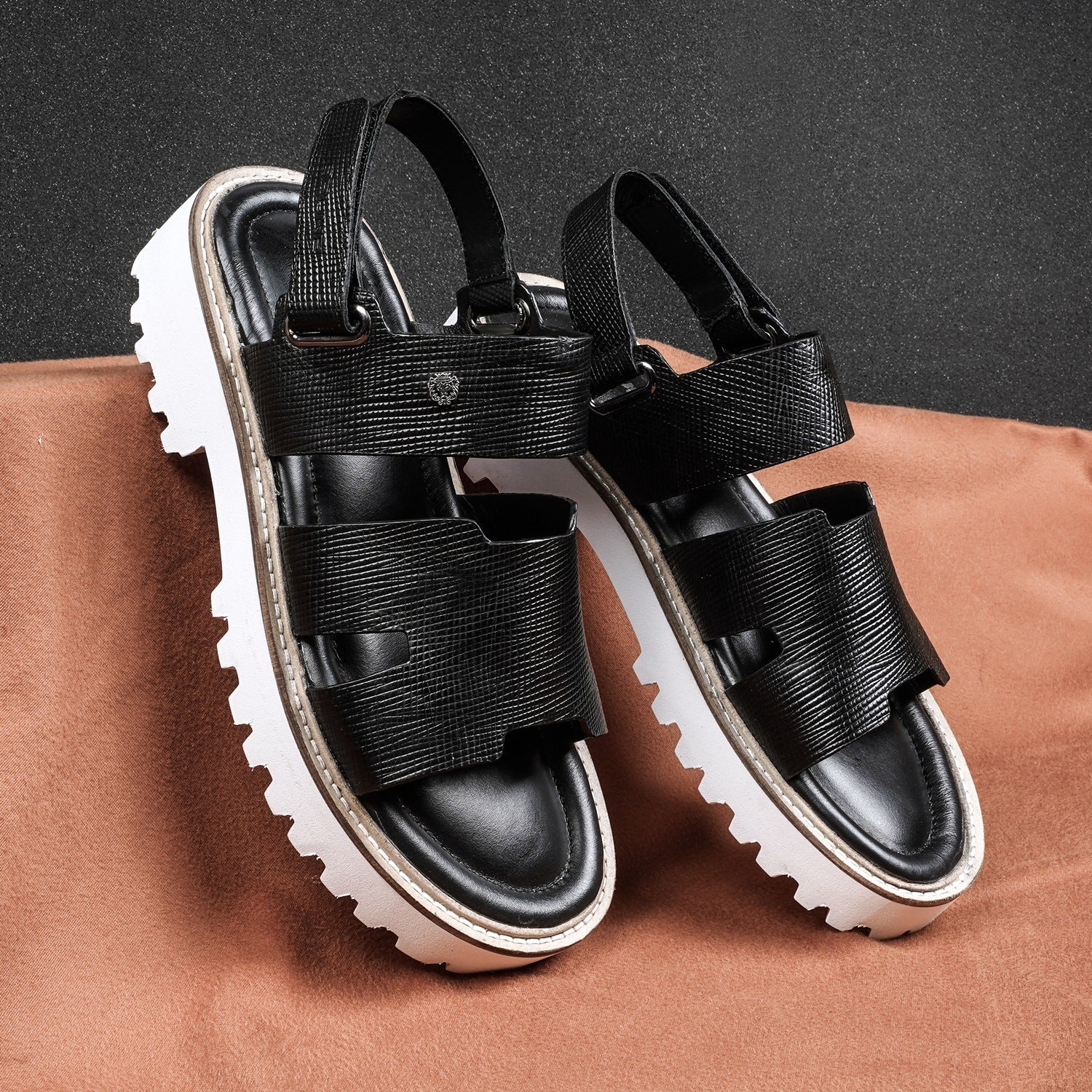 Indulge in luxury with our light weight chunky sole sandal. The perfect edition to elevate your style and comfort, this men's leather sandal by Brune & Bareskin is handcrafted with premium quality genuine Saffiano leather. Featuring a broader toe strap and adjustable Velcro strap, it offers a perfect secure fit. The anti-skid rubberized chunky sole and extra cushioned foot-bed provide both style and practicality. Finished with a mini metal lion brand logo and double strap design, this sandal is perfect to carry with any outfit, from casual to formal.