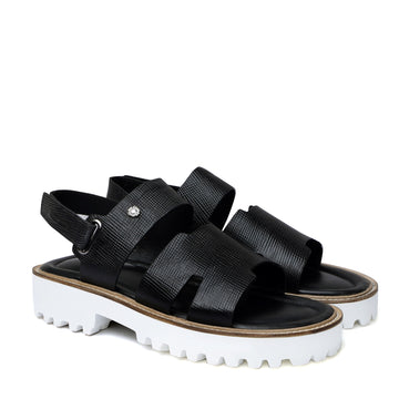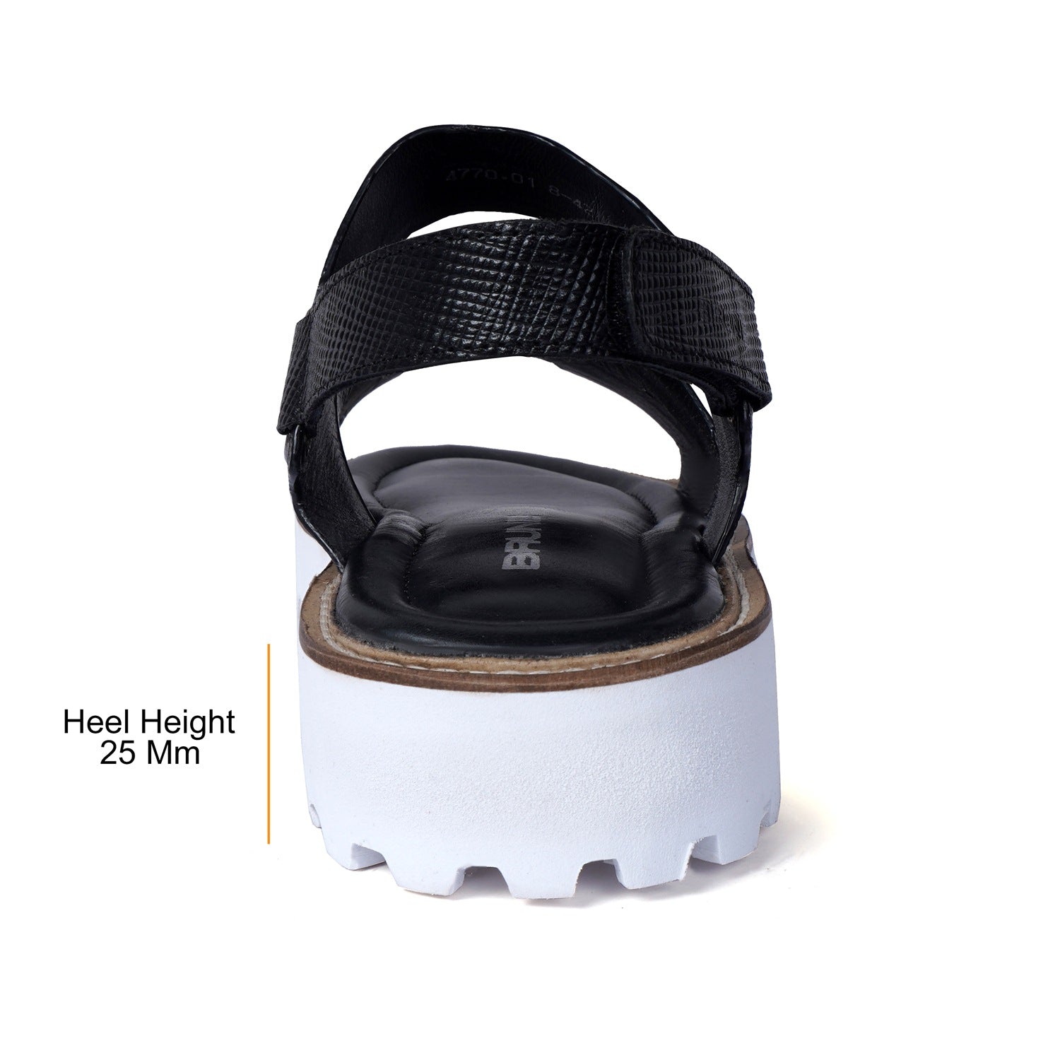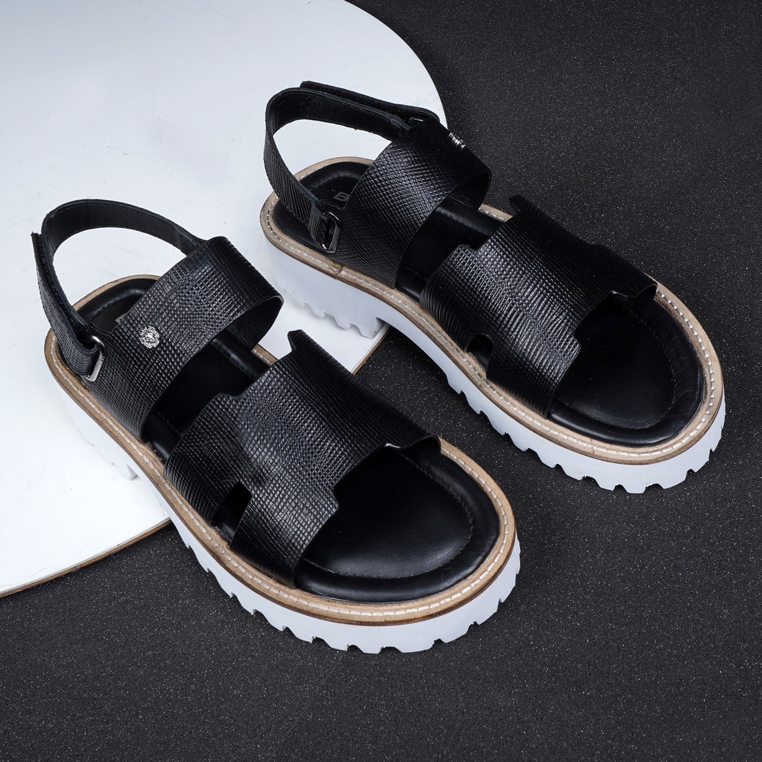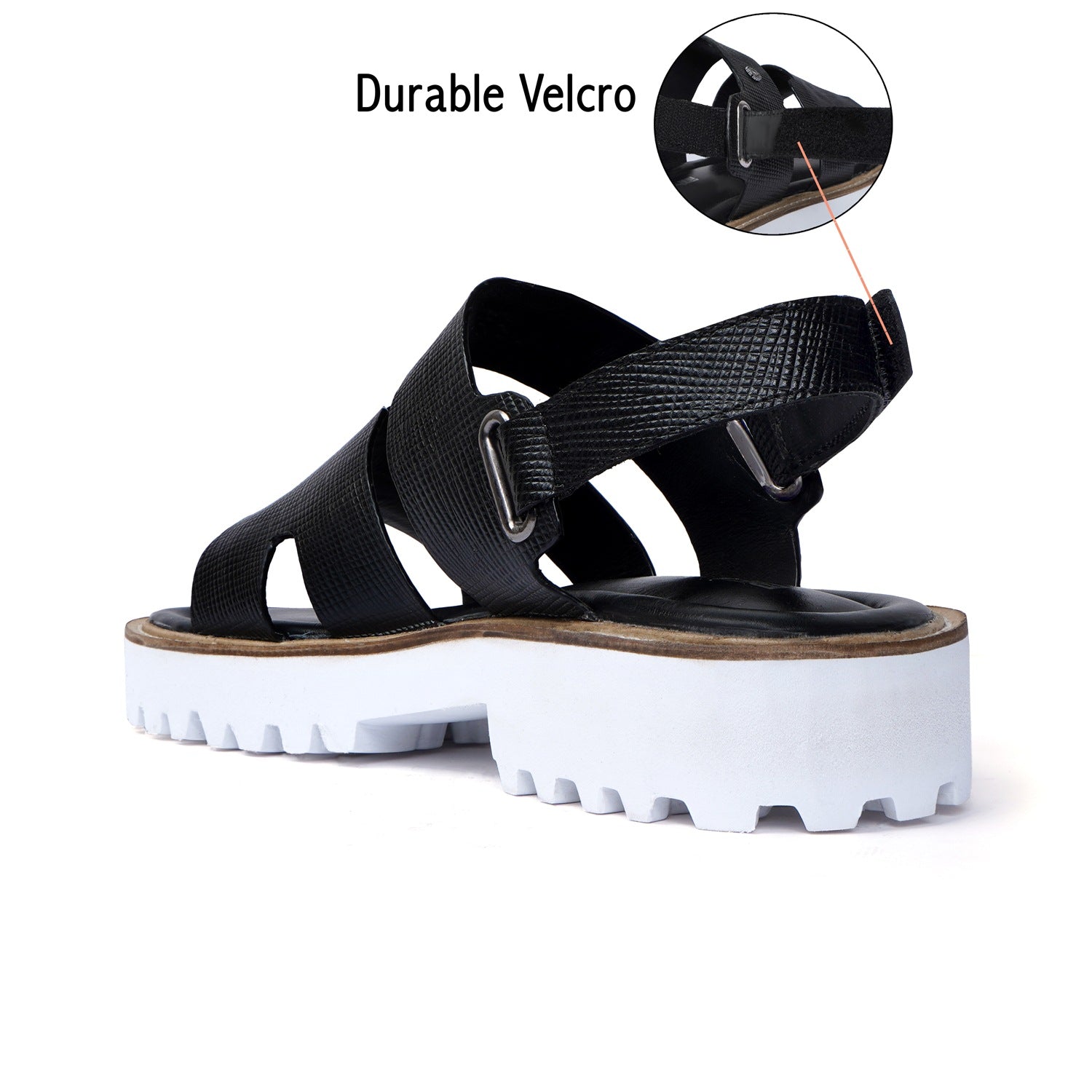 Indulge in luxury with our light weight chunky sole sandal. The perfect edition to elevate your style and comfort, this men's leather sandal by Brune & Bareskin is handcrafted with premium quality genuine Saffiano leather. Featuring a broader toe strap and adjustable Velcro strap, it offers a perfect secure fit. The anti-skid rubberized chunky sole and extra cushioned foot-bed provide both style and practicality. Finished with a mini metal lion brand logo and double strap design, this sandal is perfect to carry with any outfit, from casual to formal.