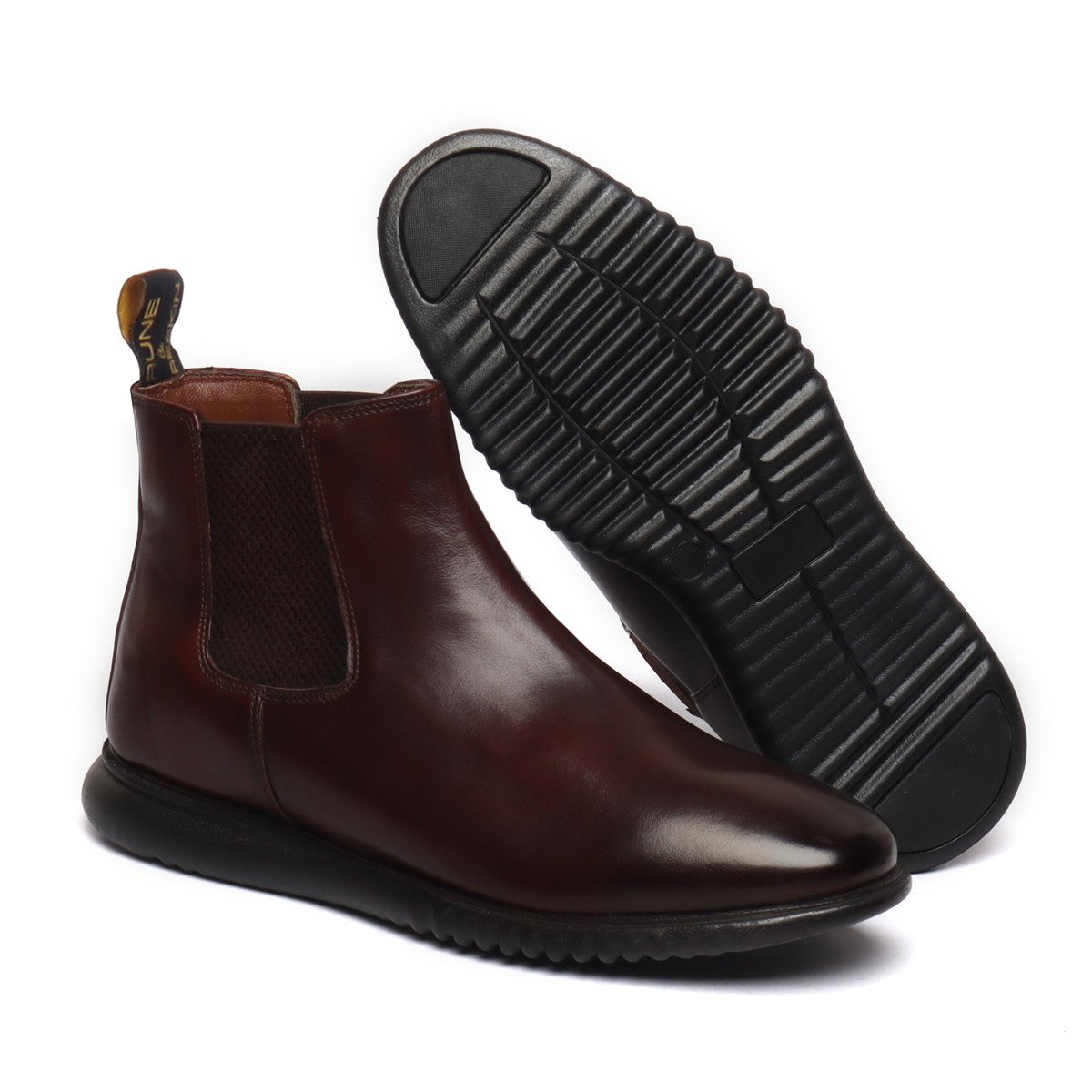 This high-ankle length Dark Brown leather Chelsea boot is one of a kind for your wardrobe. The weight of the shoe is less then 500 gms with Flat sole. The memory foam insole provides a super comfy walk all day long.