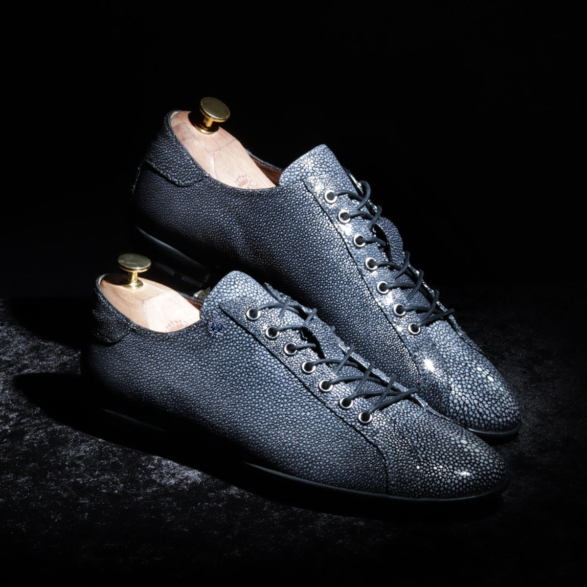 Light Weight Lace-Up Sneaker in Exotic Stingray Fish Leather