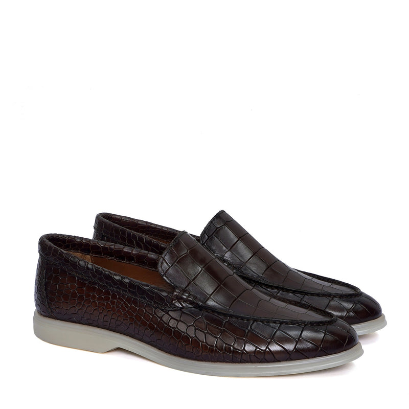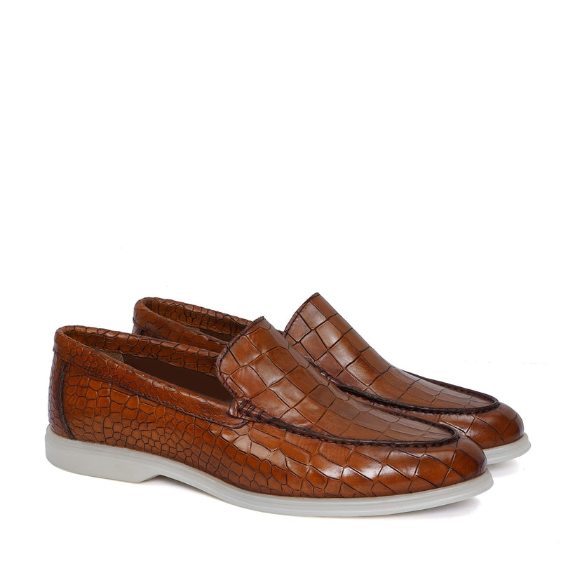 Experience the art of luxury with these sophisticated men's loafers by Brune & Bareskin. Exquisitely crafted from beige suede leather, these lightweight slip-ons offer maximum comfort with their well-designed construction and rubber sole for better grip. The perfect shoes for summer walks, enjoy the feel of luxury and exclusivity every time you wear them. This is a must have pair in your footwear collection. You can get it customized in your favorite color shade with Initials with our "BRUNE & BARESKIN" services.