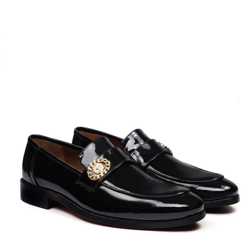 Lightweight Blue Slip-Ons with Golden Lion Chain Emblem