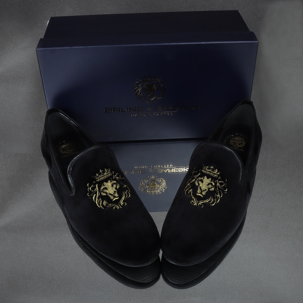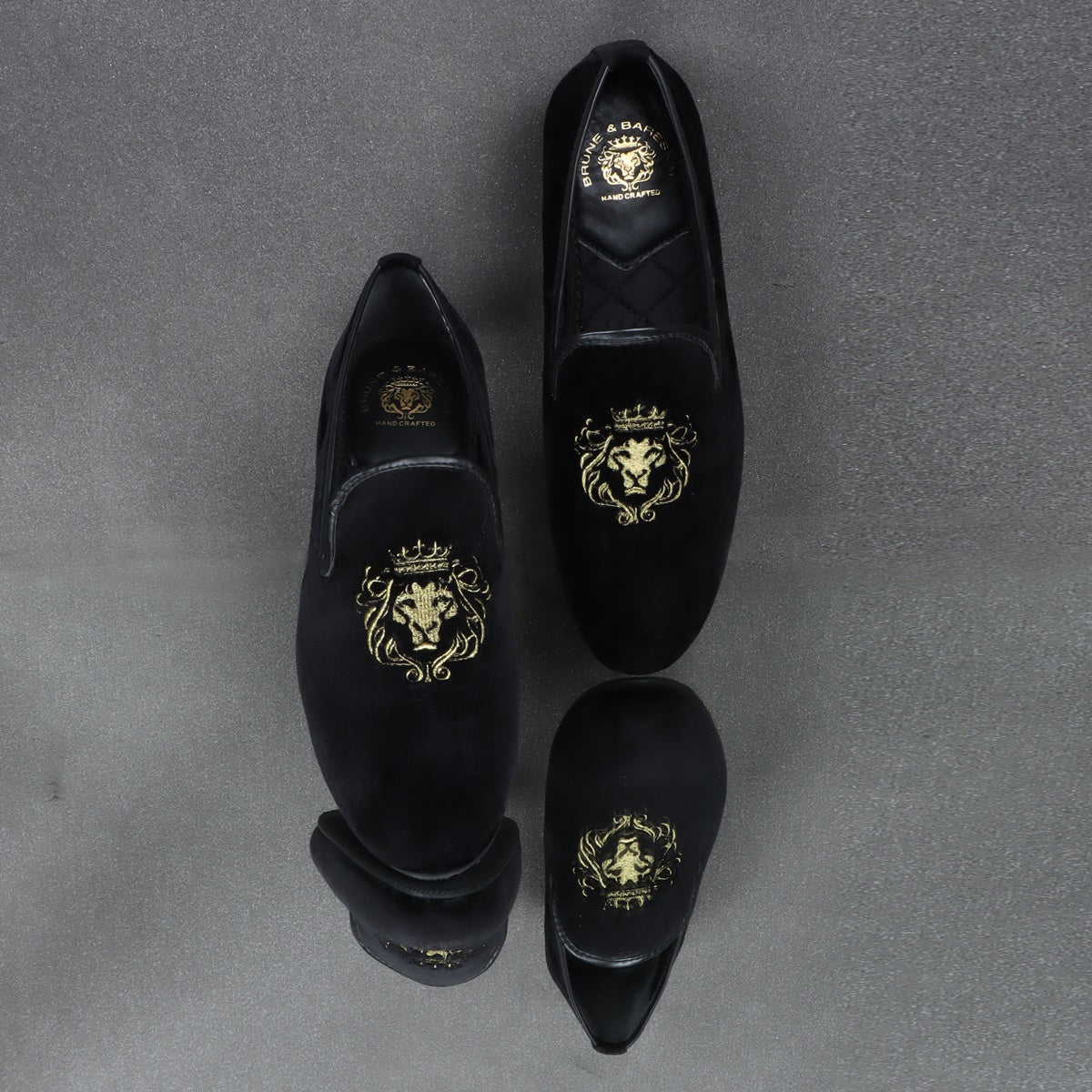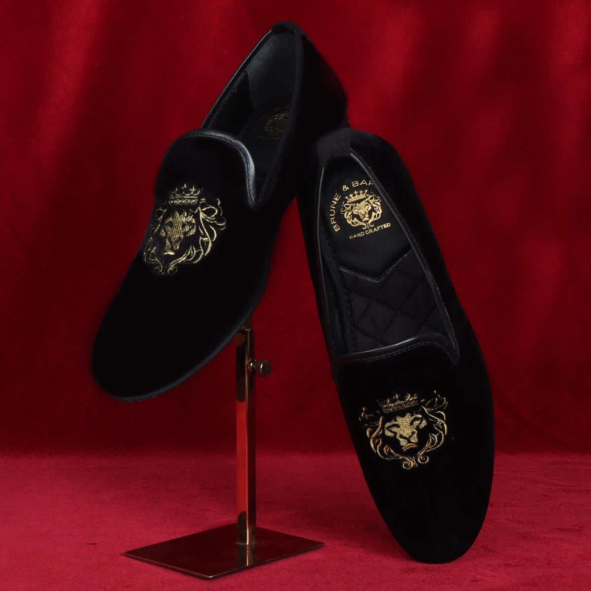 Black Velvet Lion-King Design Men'S Handmade Slip-On By Brune & Bareskin