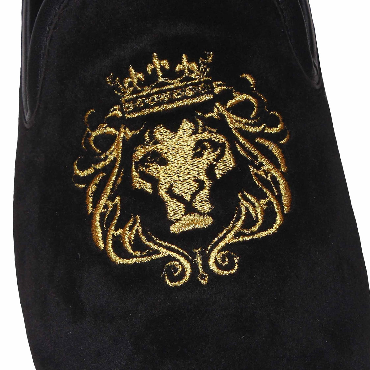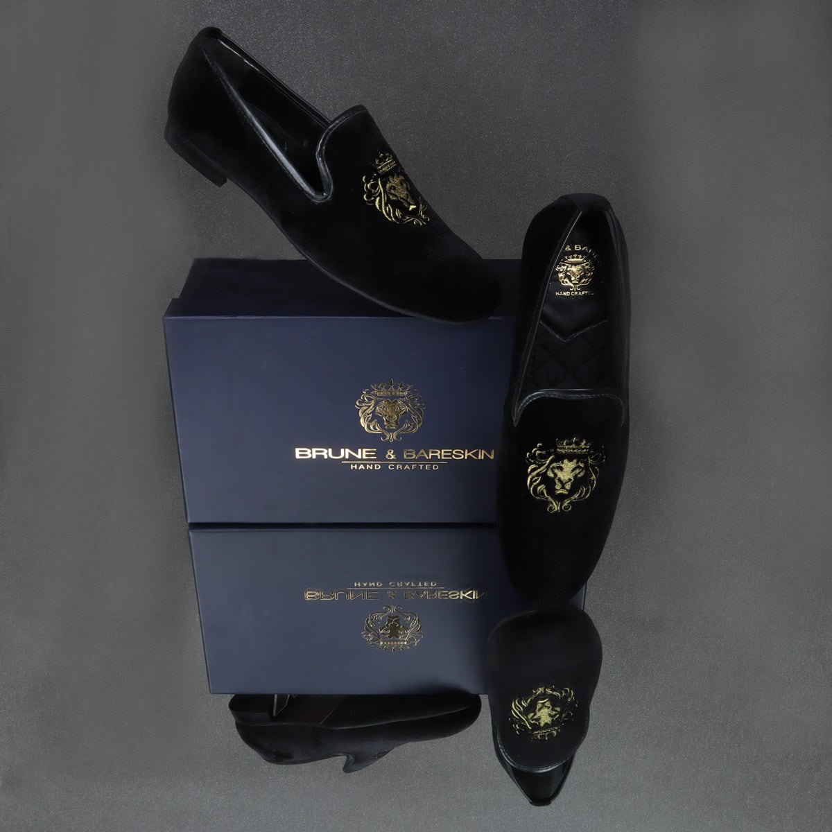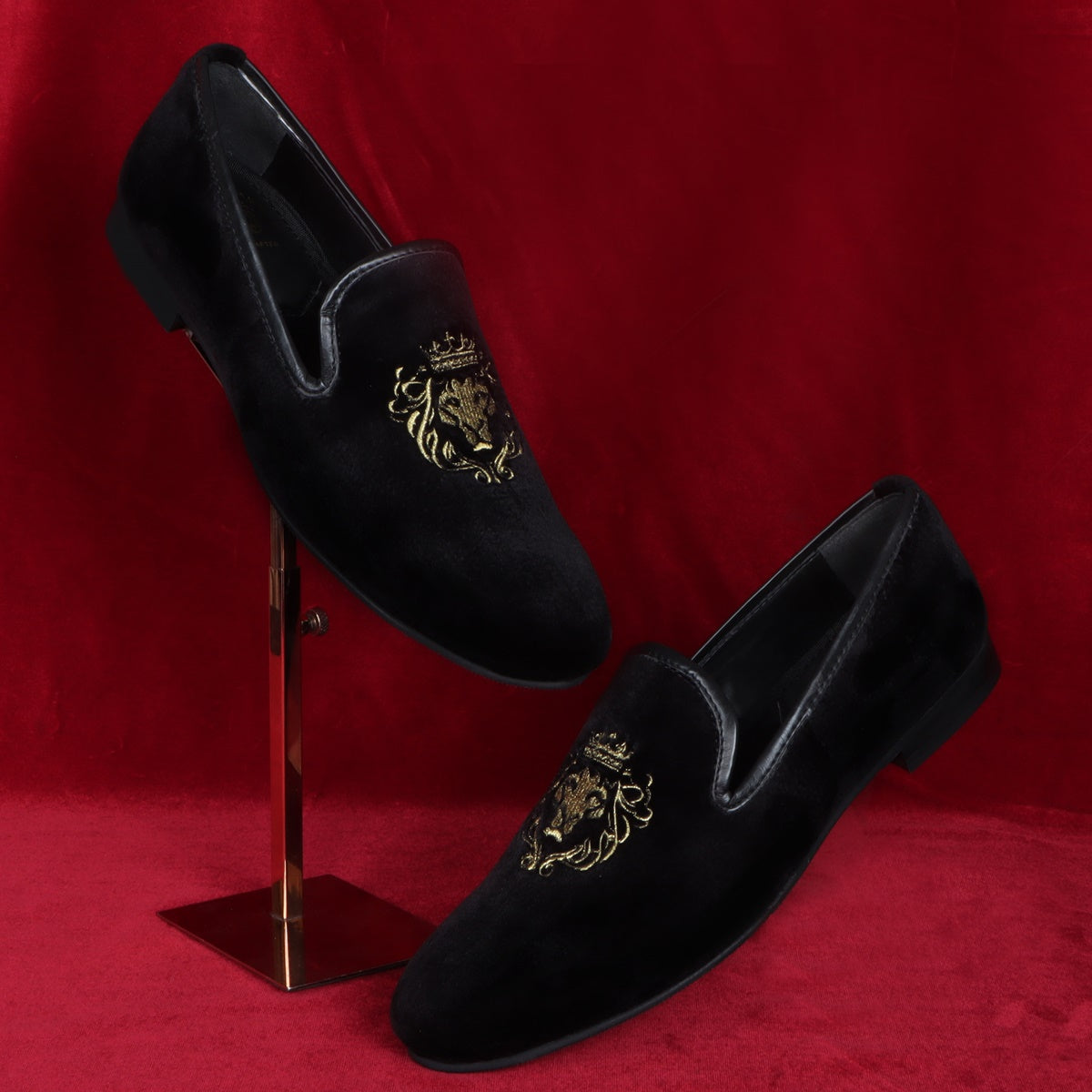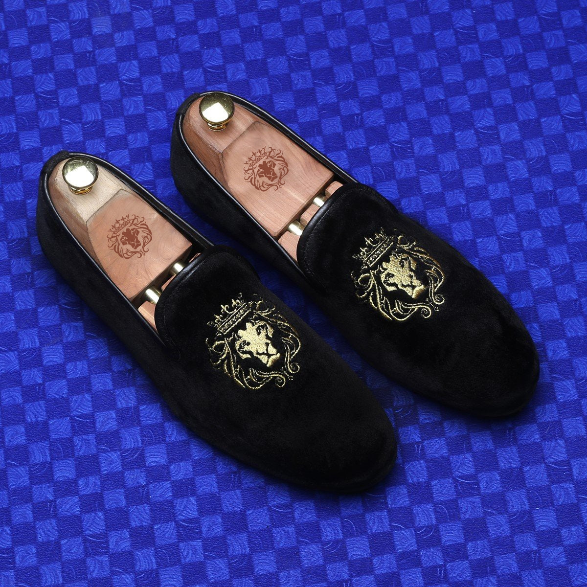 Black Velvet Lion-King Design Men'S Handmade Slip-On By Brune & Bareskin