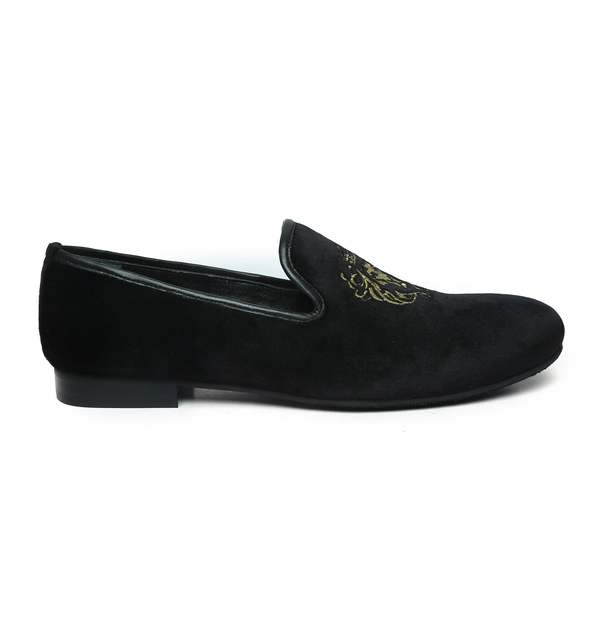An elegant pair of Black slip on shoes is a must-have for every well dressed man. This smooth Leather/Velvet Black Slip-on with Golden Embroidery Moccasin offered by "BRUNE & BARESKIN" gives an elite style and debonair look. This will be an amazing addition to your collection.