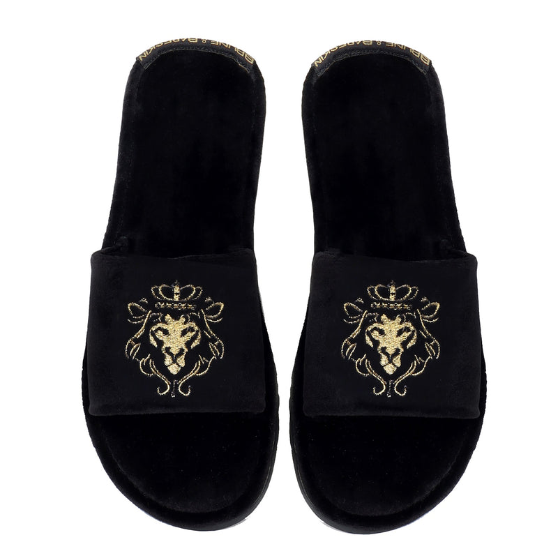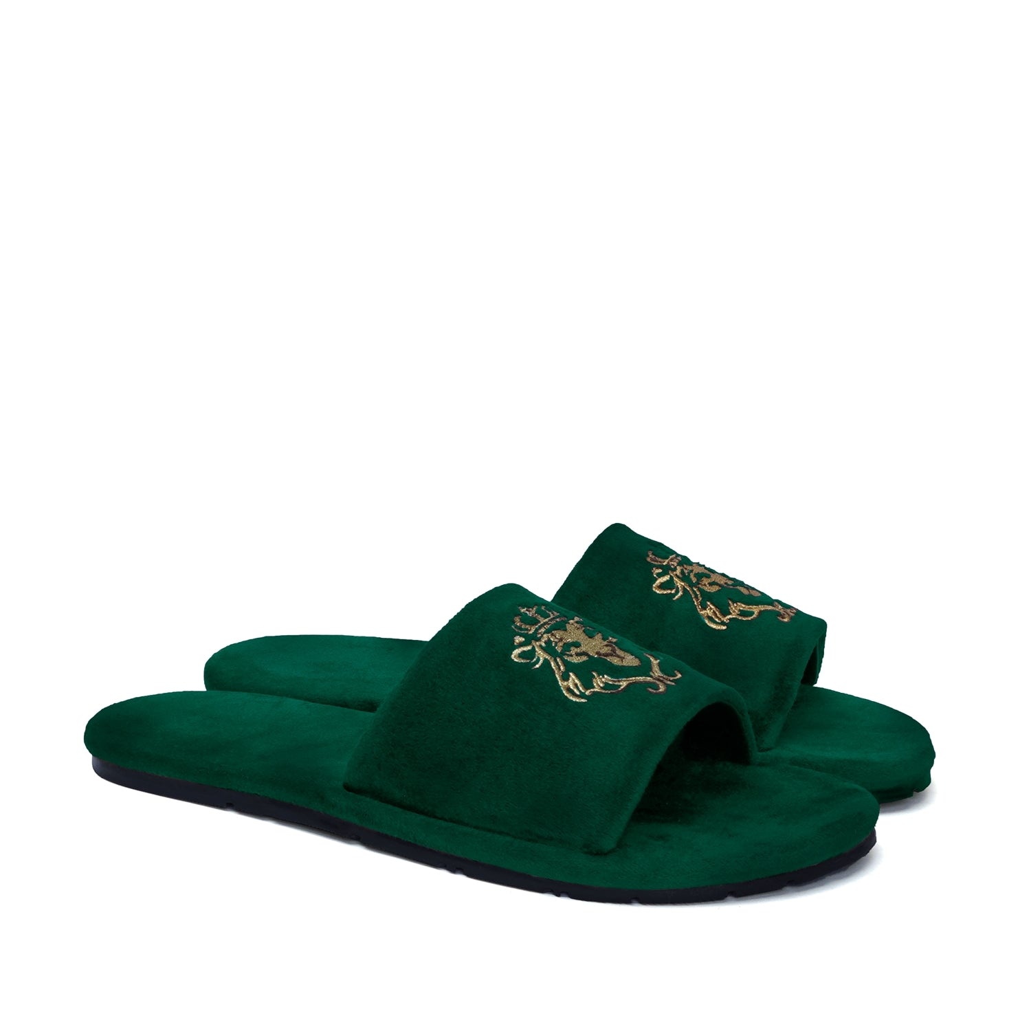 Lionesses are all ready to roar with their Lions. The women's slippers with lioness embroidered are one of the most comfortable slippers present in the style bucket of BRUNE & BARESKIN. The whole velvet base provides the extra cushioning effect to the feet. It feels very cozy while walking. The two shades green velvet looks fab when wears with Jeans, Shorts, Capris and other casual wears. The embroidered lioness on the strap enhances the elegance. Rubber outer sole ensures the perfect walking grip.