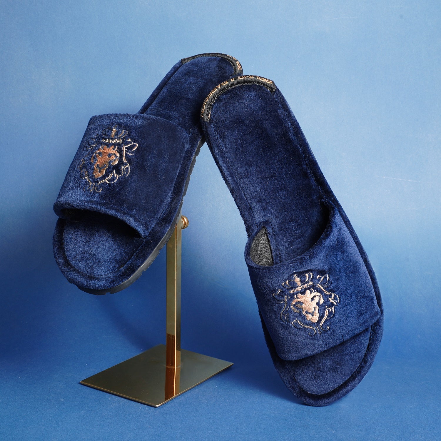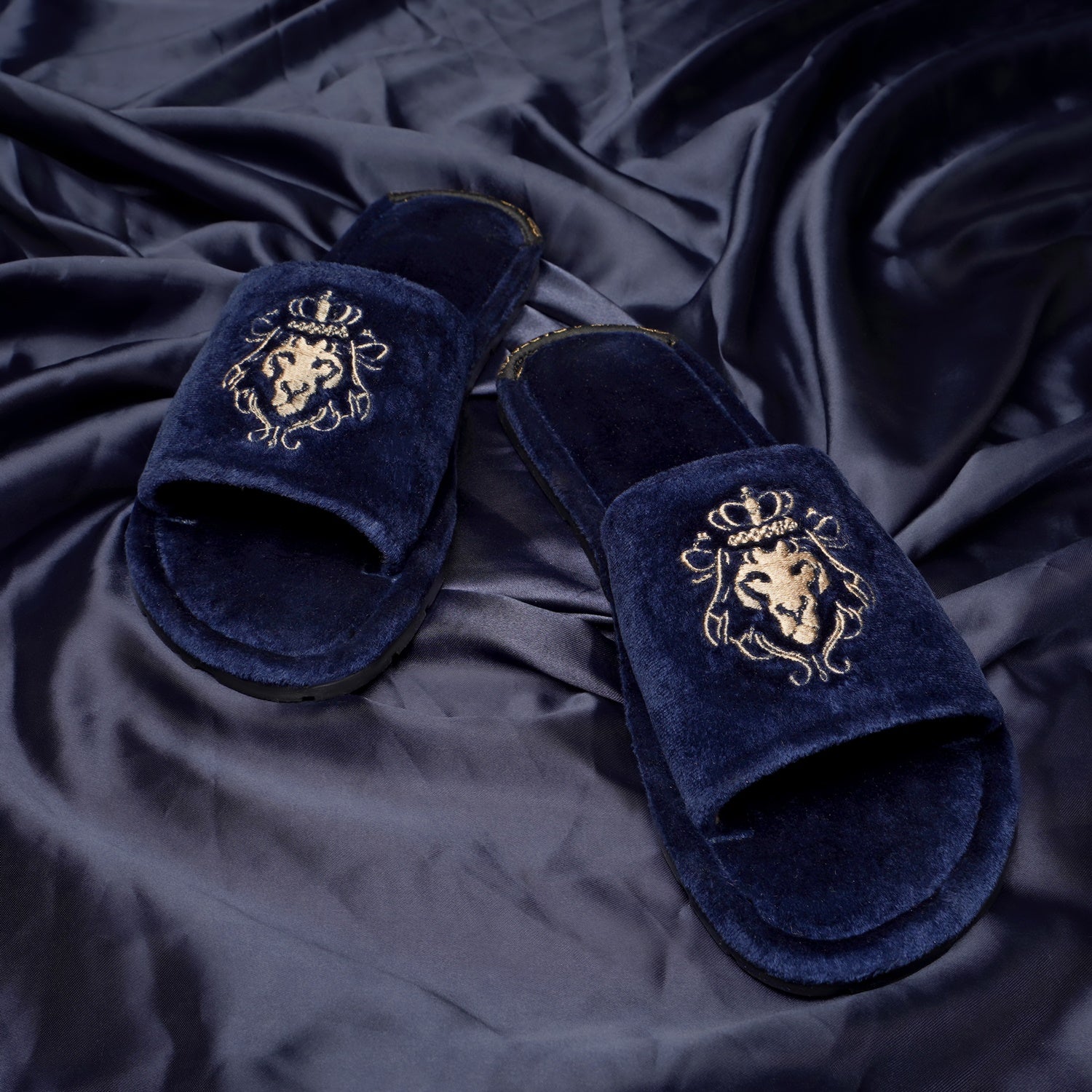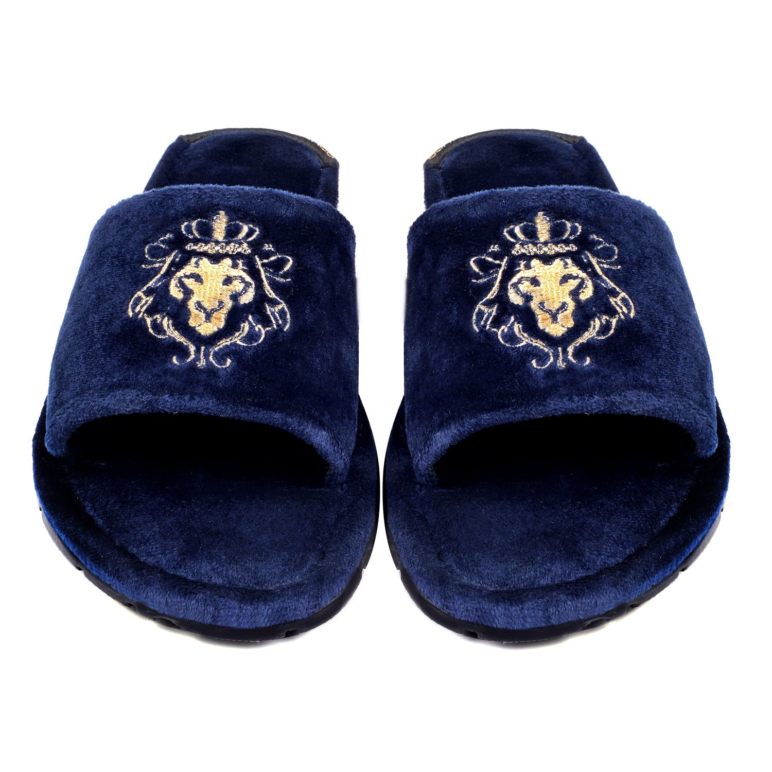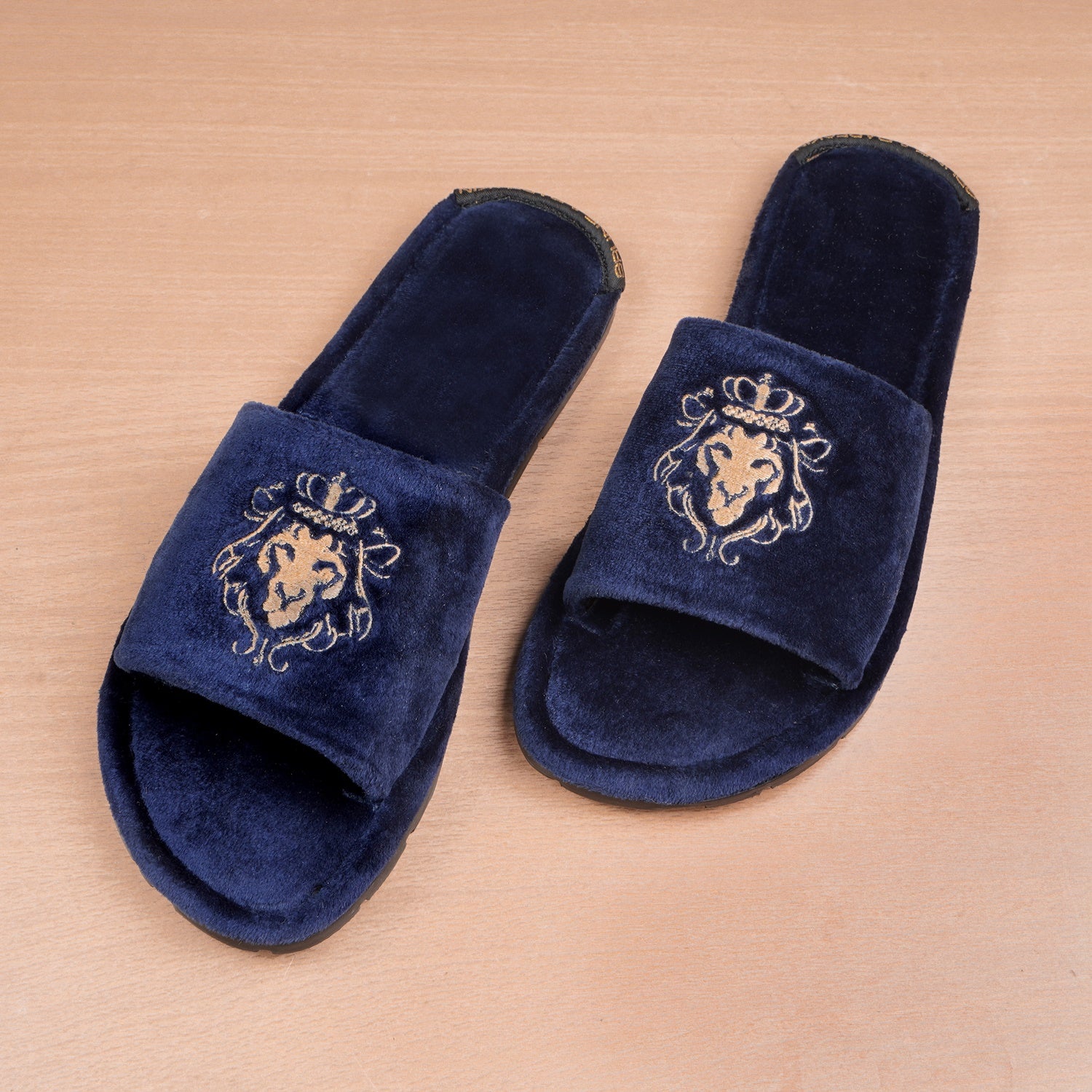 Lionesses are all ready to roar with their Lions. The women's slippers with lioness embroidered are one of the most comfortable slippers present in the style bucket of BARESKIN. The whole velvet base provides the extra cushioning effect to the feet. It feels very cozy while walking. The two shades navy velvet looks fab when wears with Jeans, Shorts, Capris and other casual wears. The embroidered lioness on the strap enhances the elegance. Rubber outer sole ensures the perfect walking grip.
