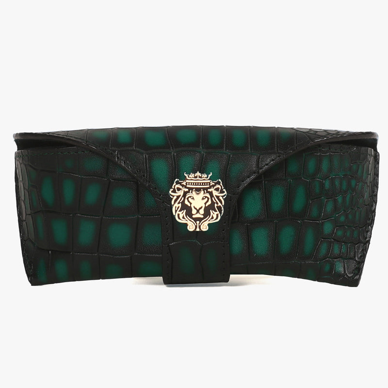 Looped Closure Metal Lion Smokey Finish Deep Cut Cognac Leather Eyewear Glasses Cover