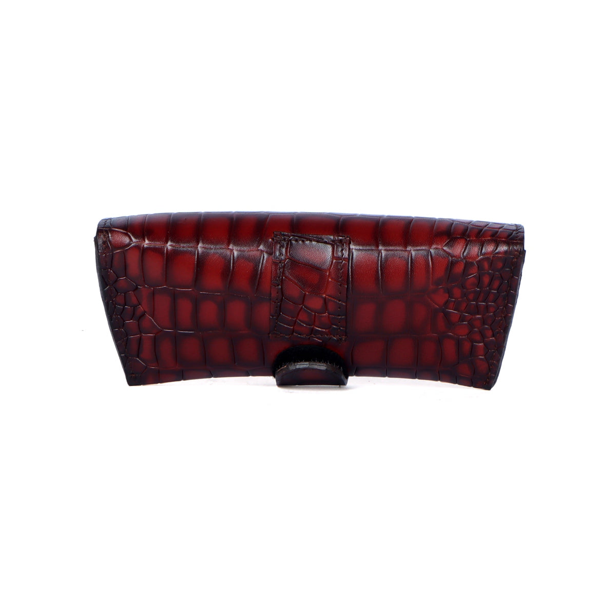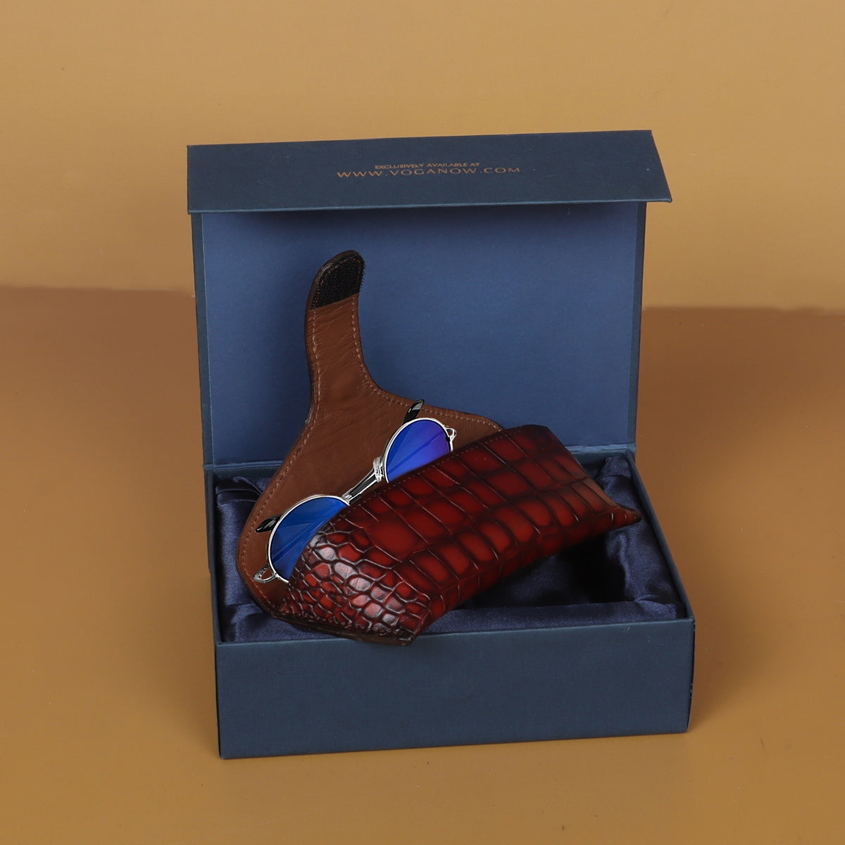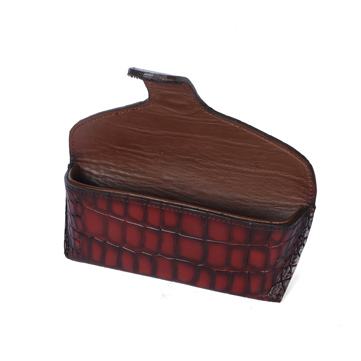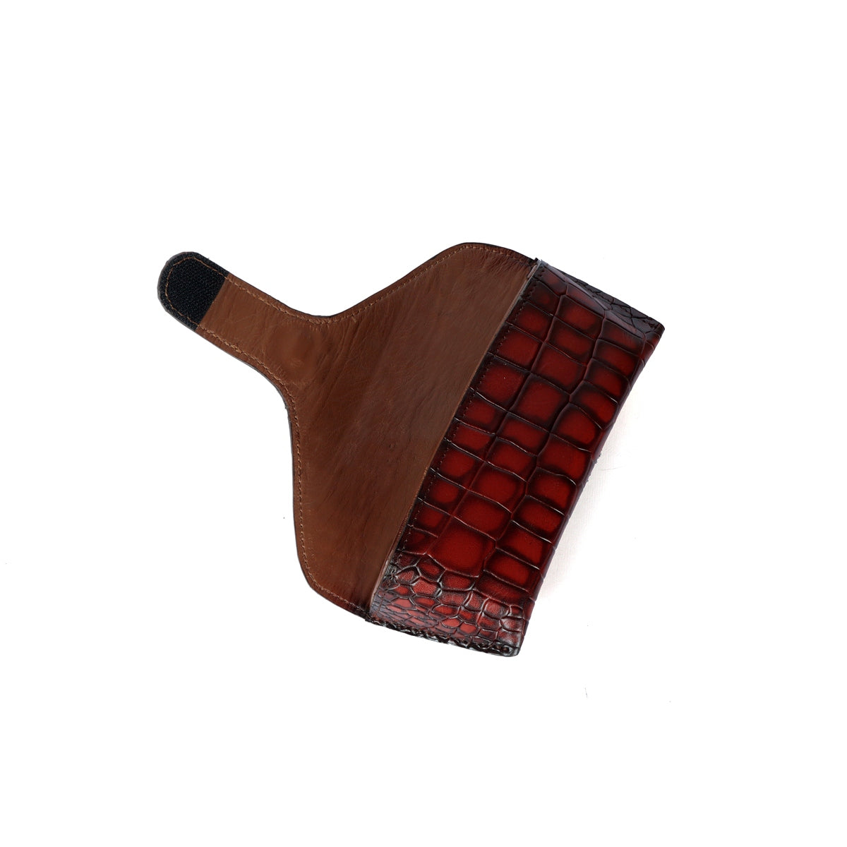 Carry your Eye wears with this stylish deep cut croco textured Leather Cover. Brune & Bareskin presents this special Smokey finish cognac leather eye-wear cover to protect and keep your Sunglasses. It is a must-have accessory in your bag. This deep cut Smokey finish leather air-pod cover is quite very handy for travelers as well. The stylish look makes it an eye catching accessory. You can get it made in any color shade you want along with the name initials with our Bespoke Service.