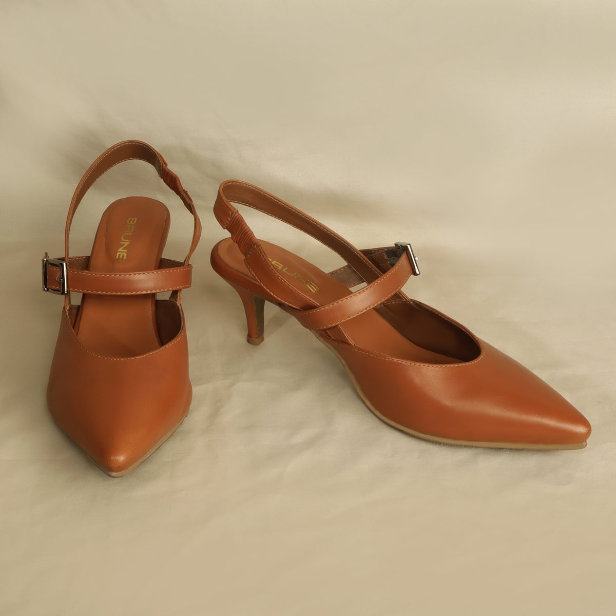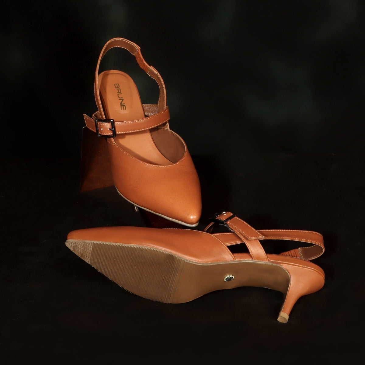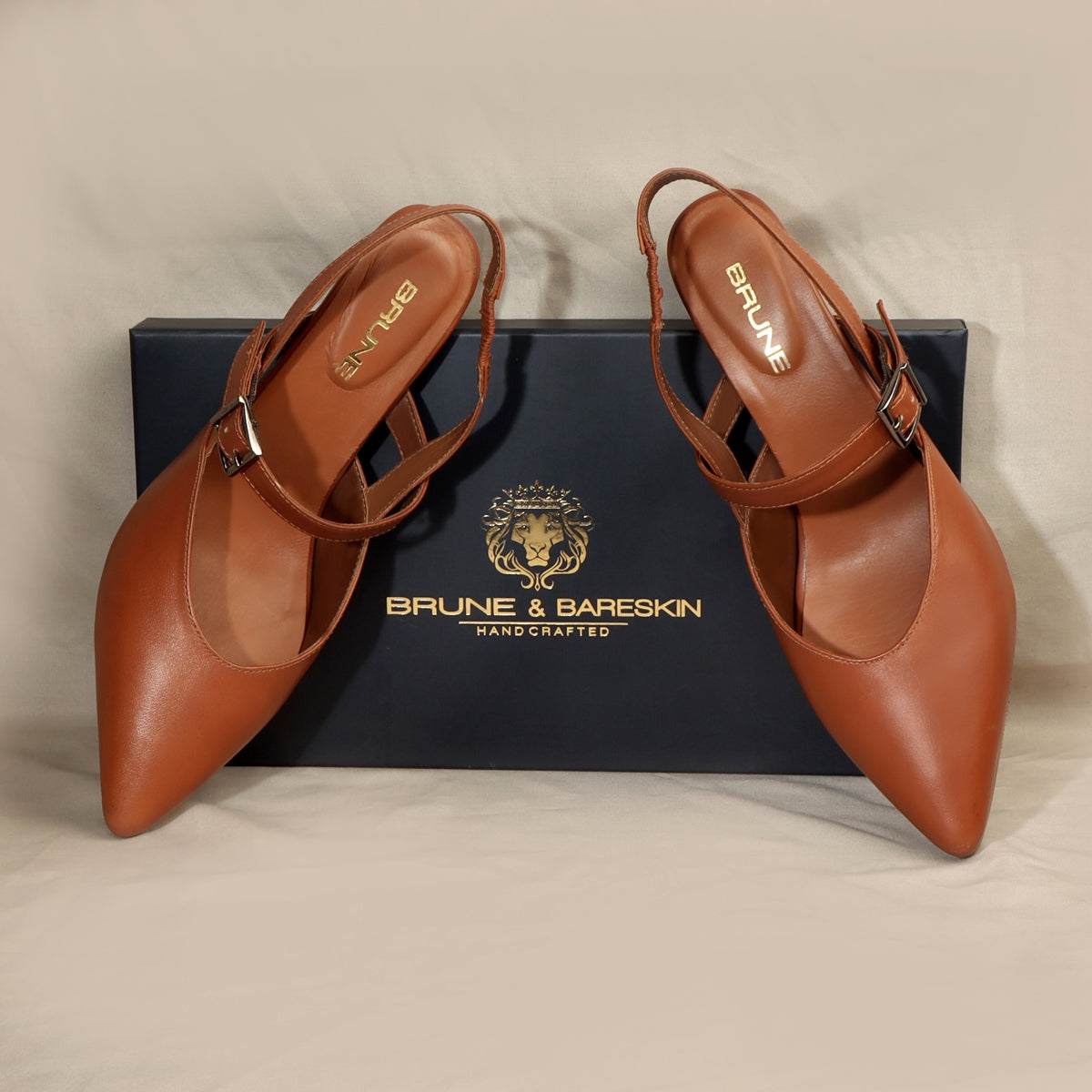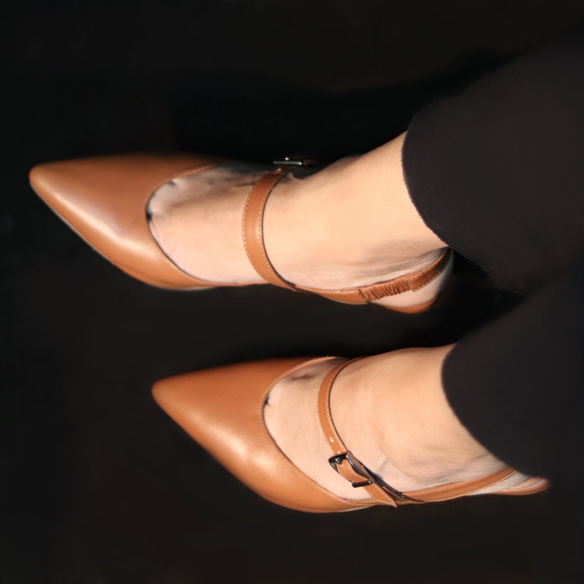 Low Heel Ankle Strap Chic Pointed Toe Slingback Pumps and Classy Kitten Heel By Brune & Bareskin