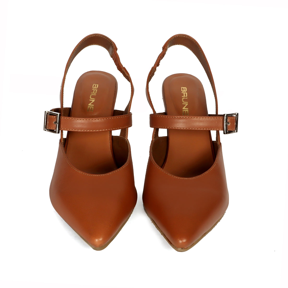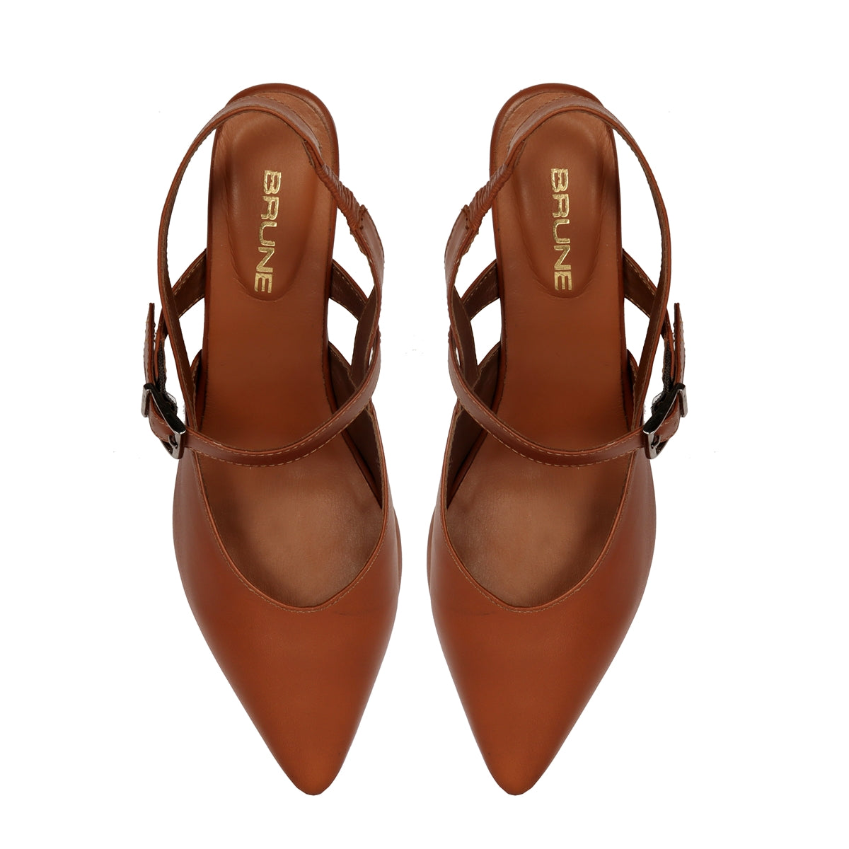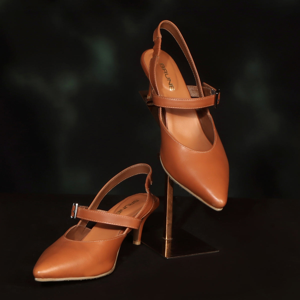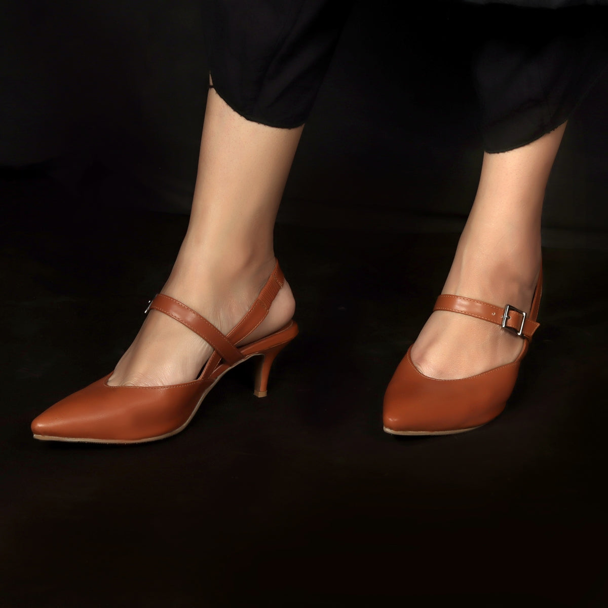 Low Heel Ankle Strap Chic Pointed Toe Slingback Pumps and Classy Kitten Heel By Brune & Bareskin