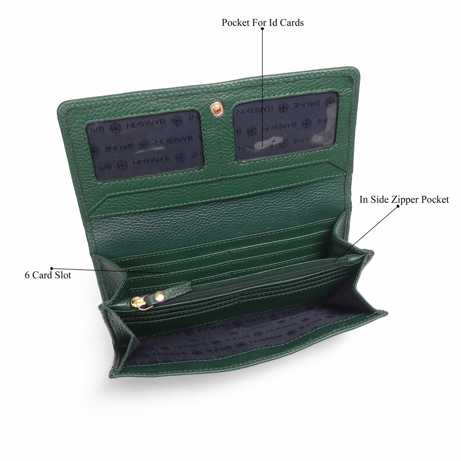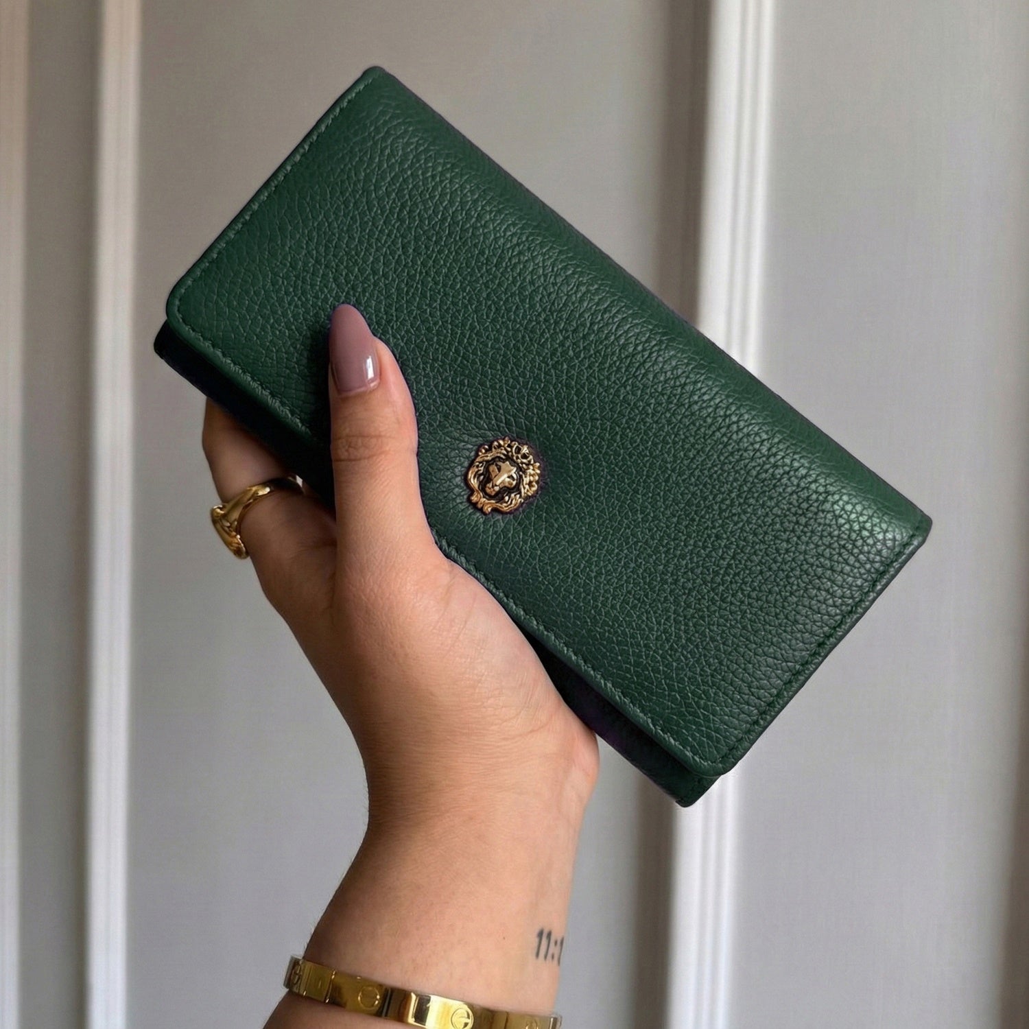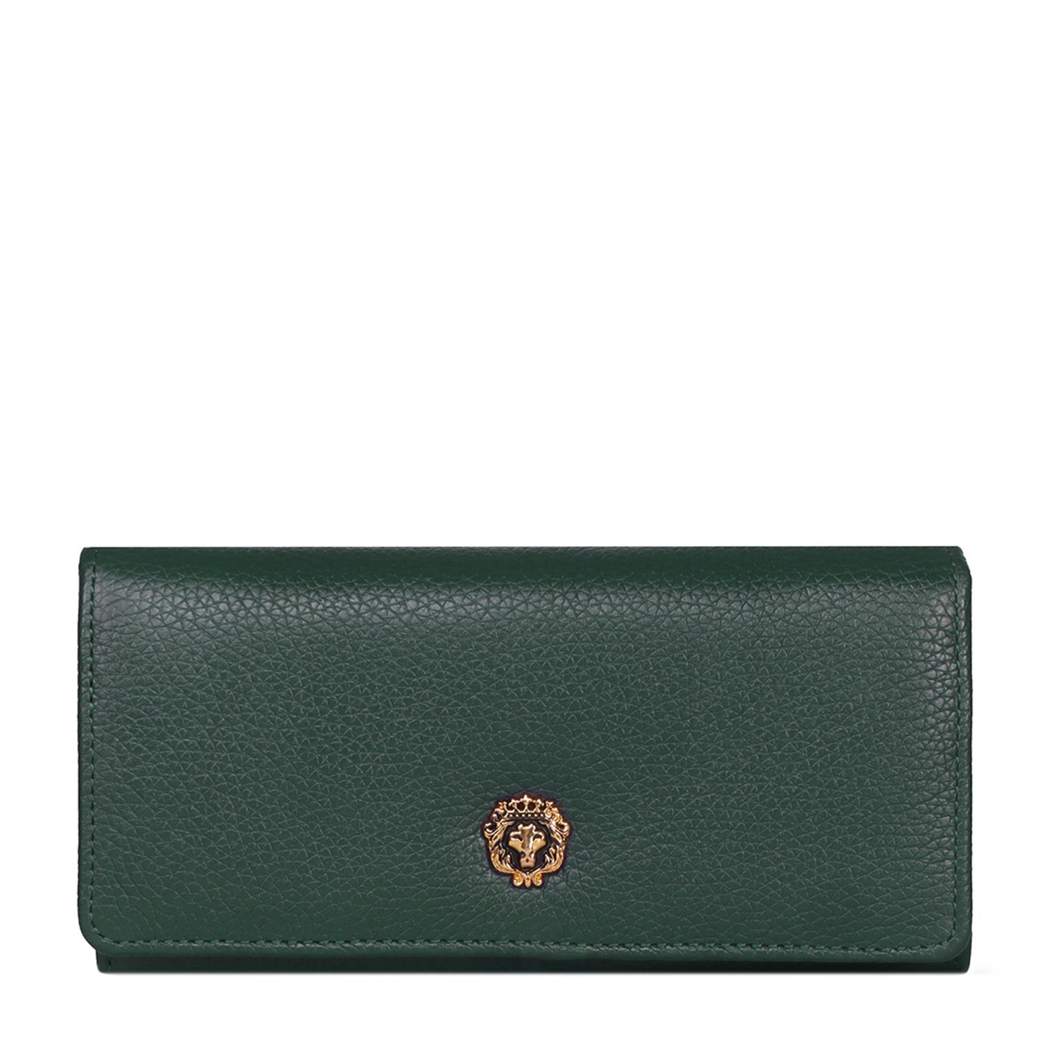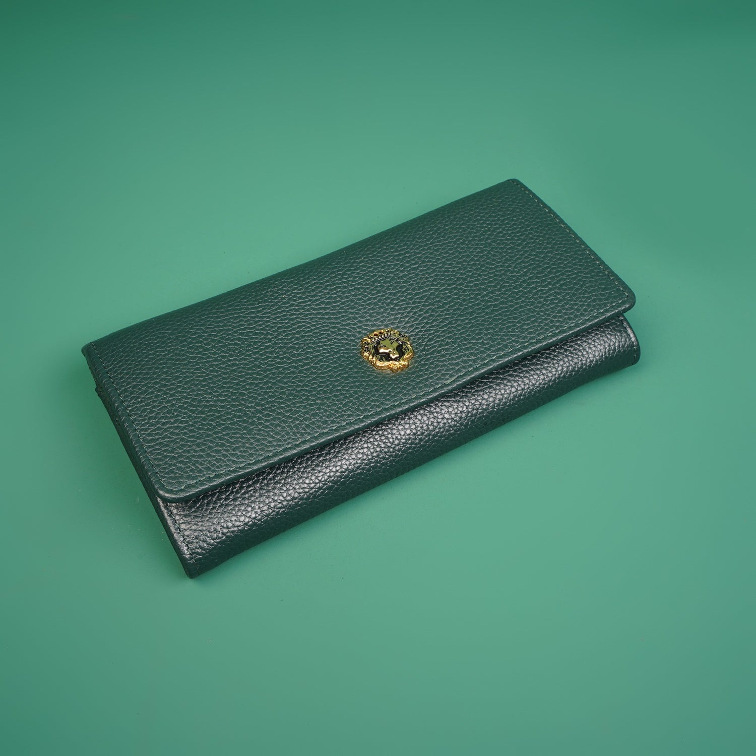 This Green Textured Leather Ladies Clutch/Wallet offers luxe everyday elegance with its buttery leather and standout 3D metal lion logo.
