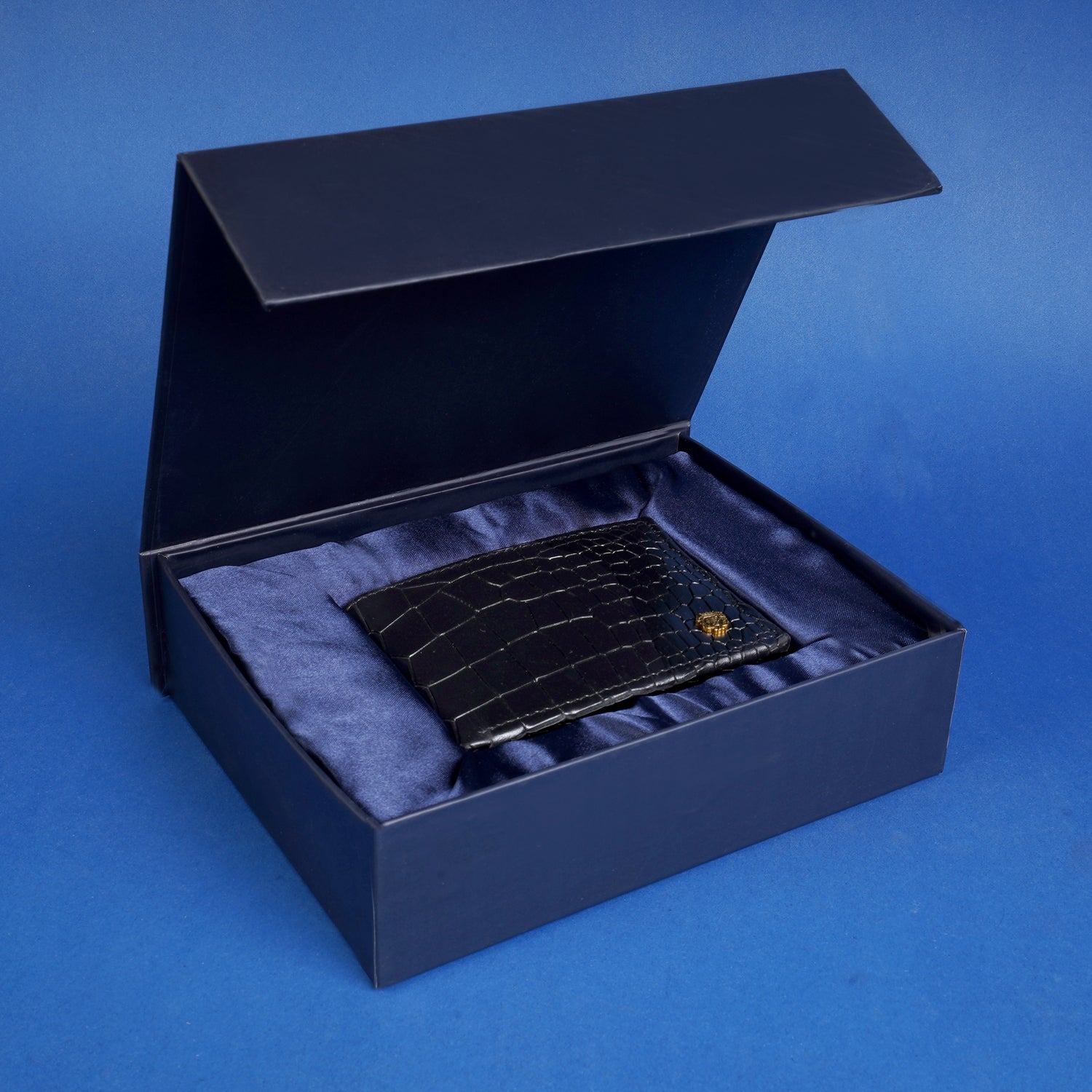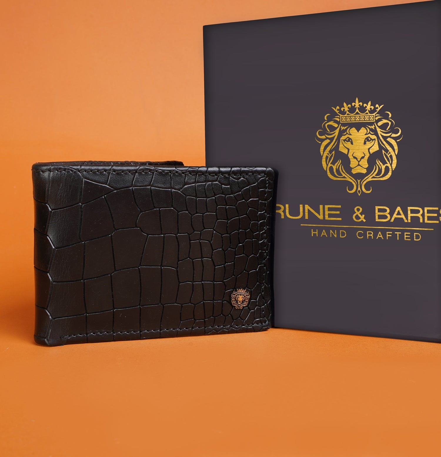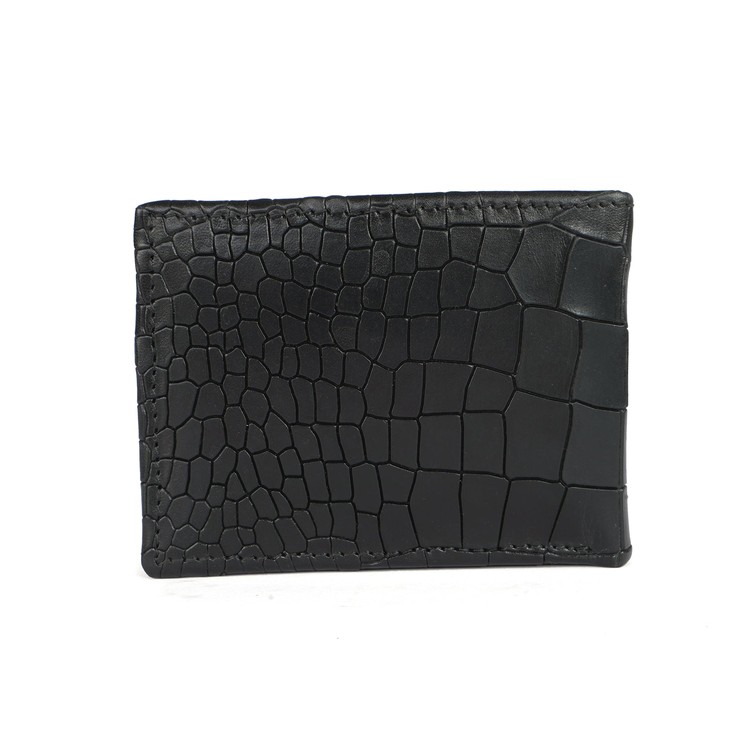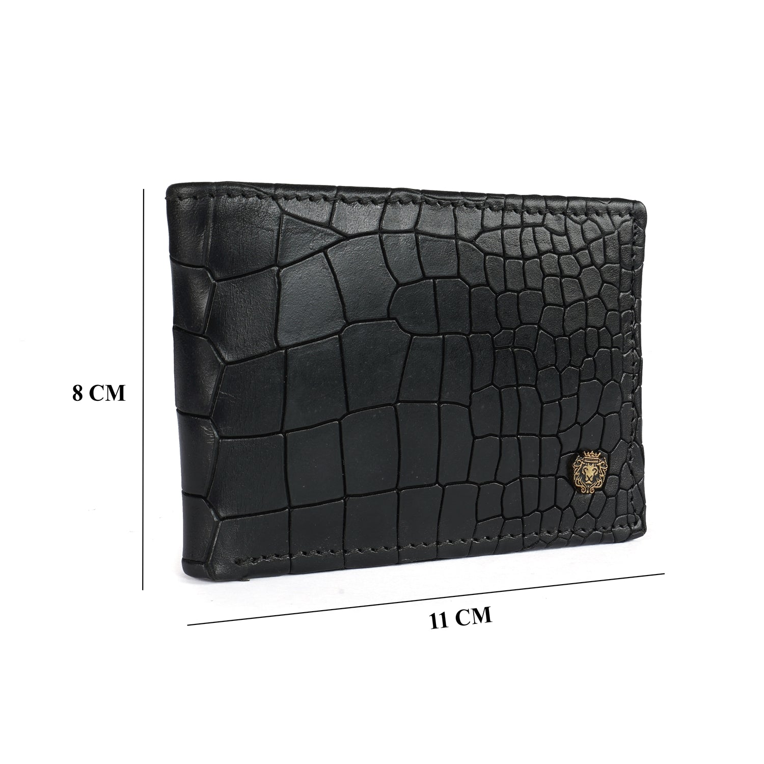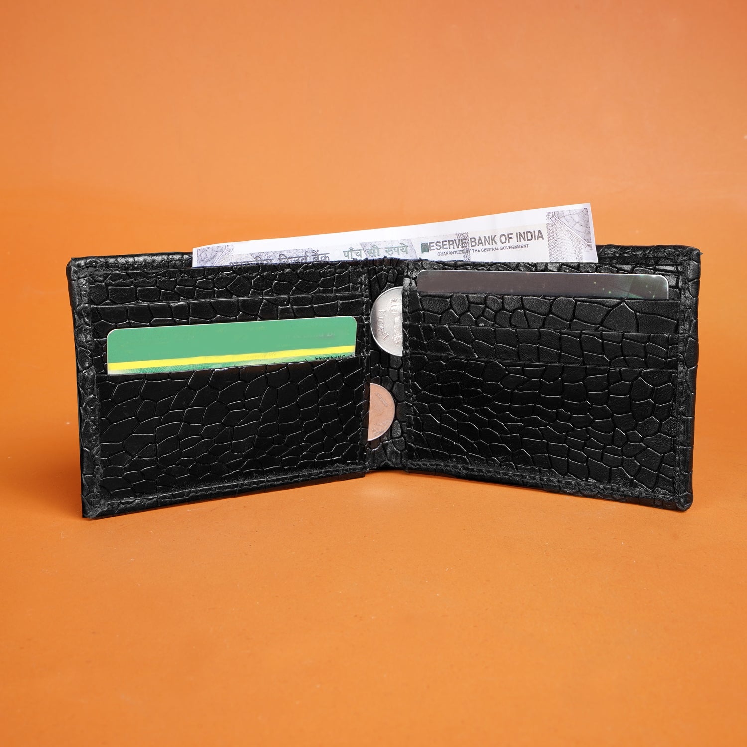 Luxurious Men's Bi-Fold Wallet Black Croco Textured Leather