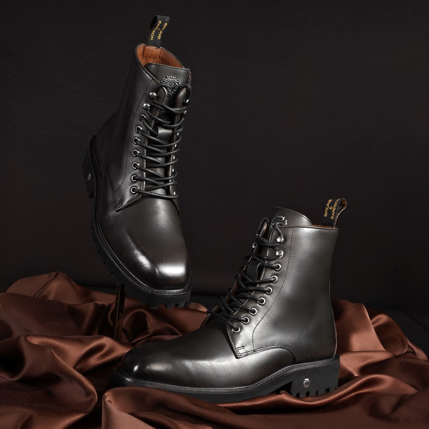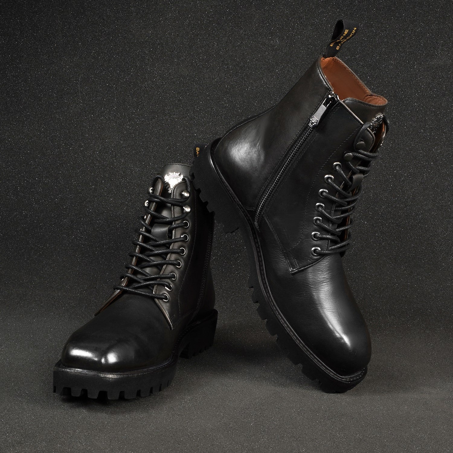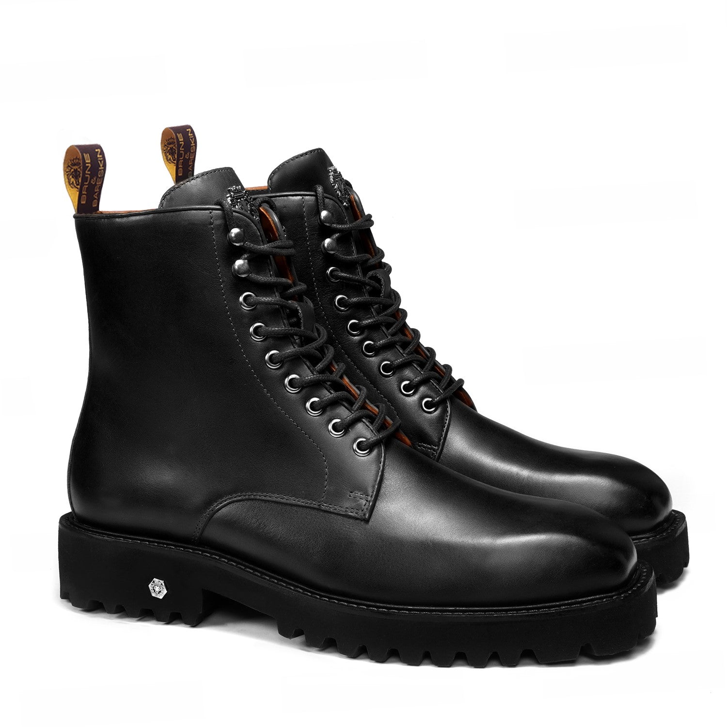 These premium black chunky boots by Brune & Bareskin are crafted from full-grain leather, offering a luxurious feel with exceptional durability.