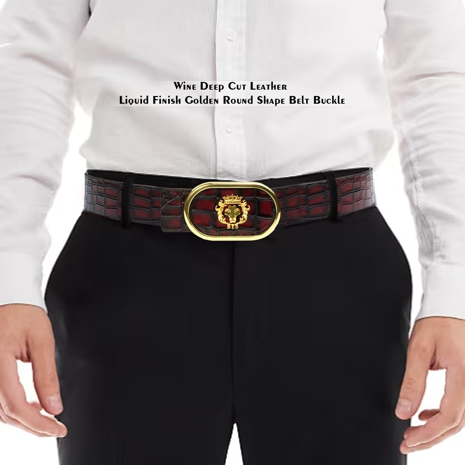 Make a bold statement with this luxurious wine-colored croco-embossed genuine leather belt, designed for those who appreciate fine craftsmanship and timeless elegance. The deep-cut leather detailing, combined with a rich dual-tone finish, creates a striking and sophisticated look that effortlessly enhances any outfit.