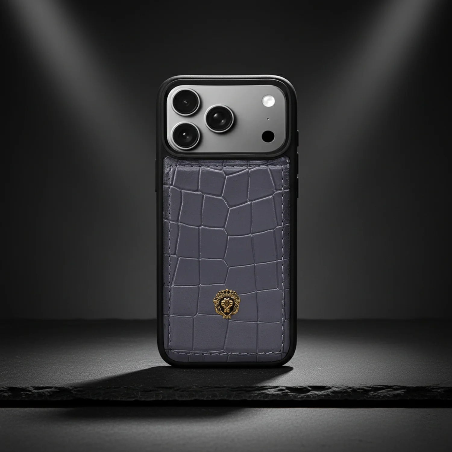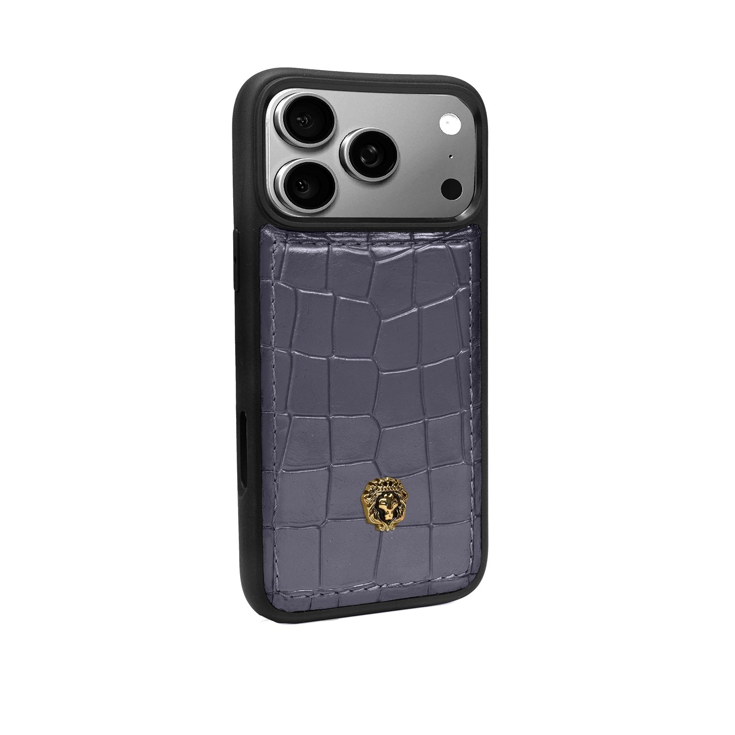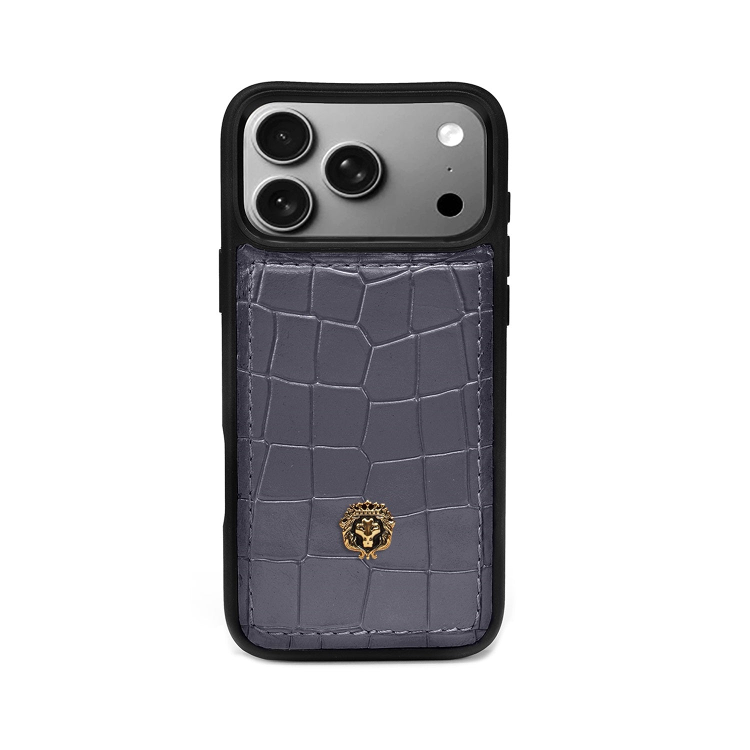 Experience the essence of true luxury with this handcrafted iPhone 17 Pro series case. Wrapped in premium grey croco-textured leather, it exudes sophistication and timeless elegance. The sleek black finish frame adds a touch of opulence, while the iconic Brune & Bareskin lion logo crowns the design with regal charm. Meticulously crafted to perfection, this case is more than just protection—it is a bold style statement that reflects class, power, and individuality.