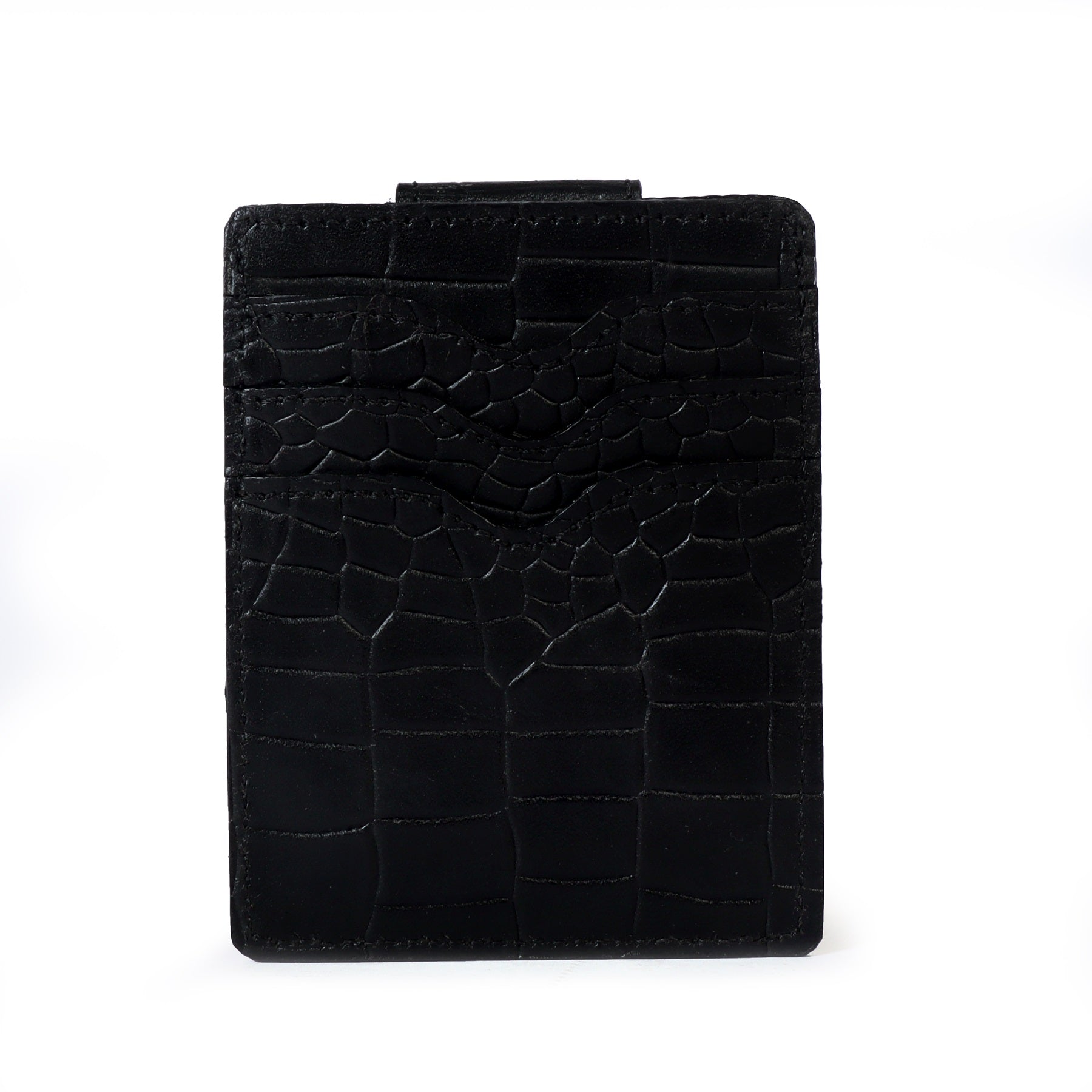 Magnetic Clip Black Deep Cut Croco Textured Leather Card Holder By Brune & Bareskin