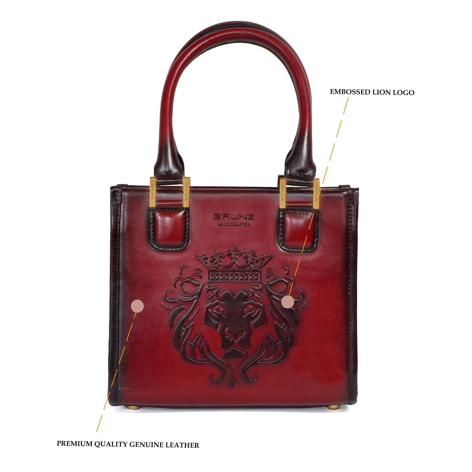 Medium Size Hand Bag with Embossed Lion Smoky Wine Croco Deep Cut Textured Leather