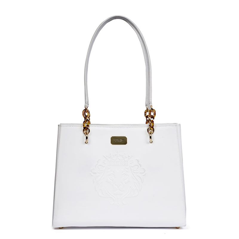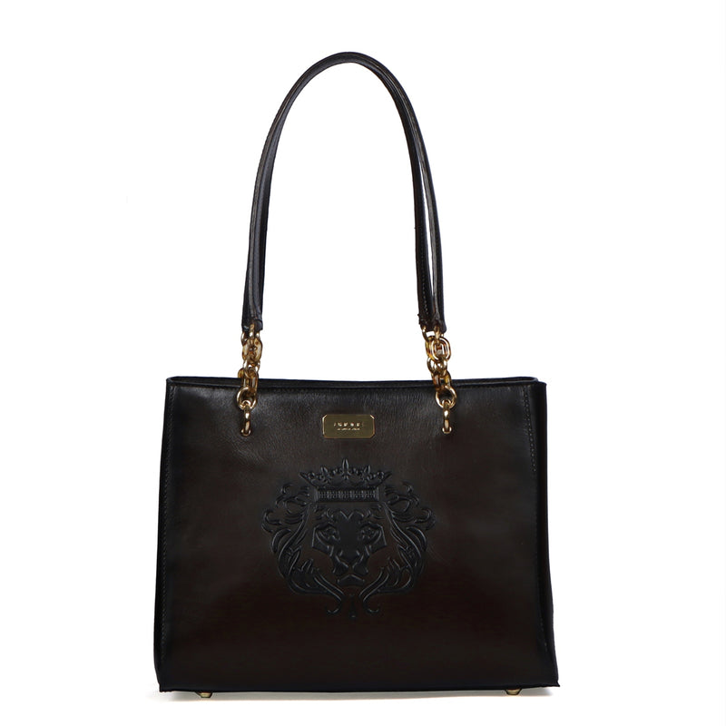 Medium Sized Leather Hand Bag In Deep Cut Smokey Wine With Embossed Lion Logo