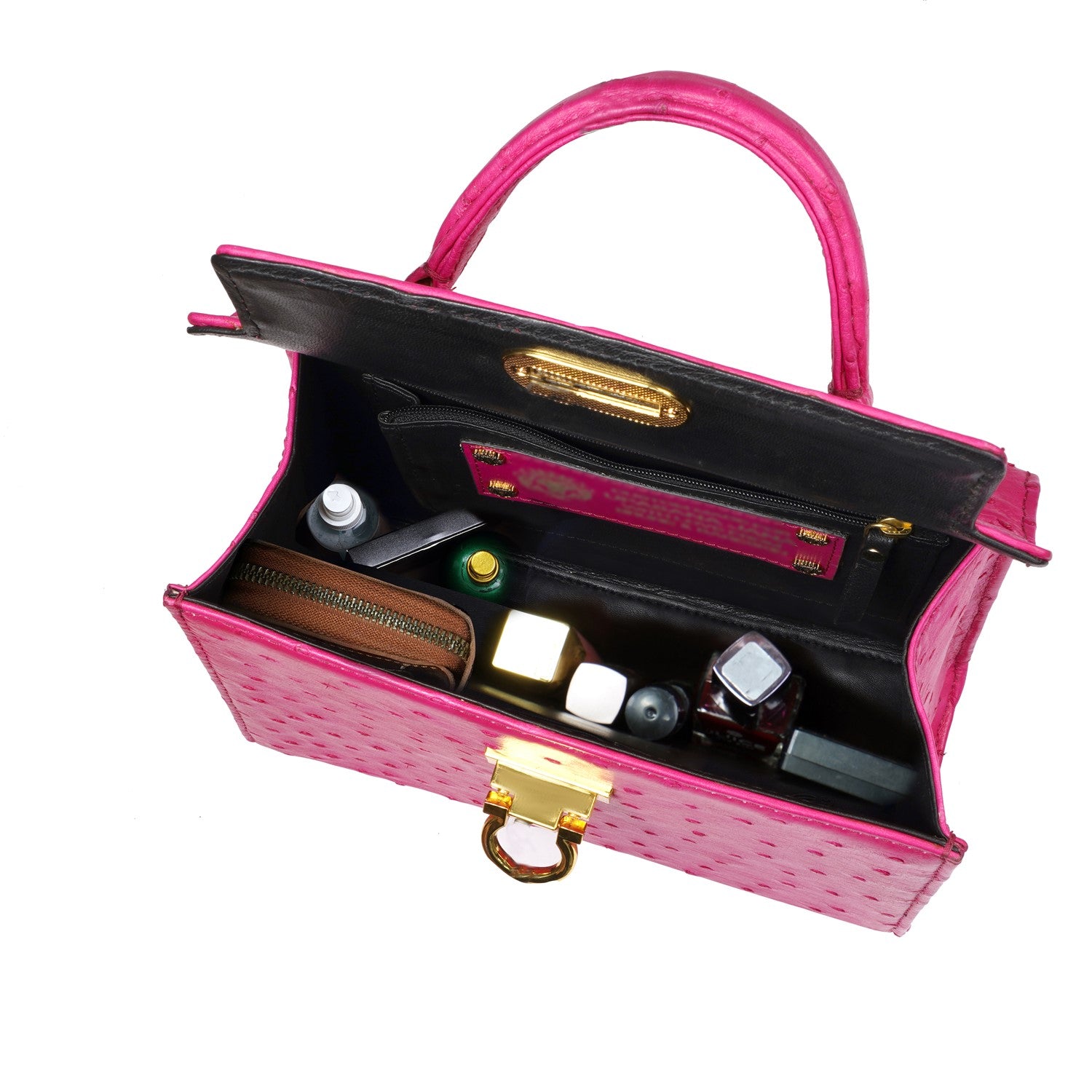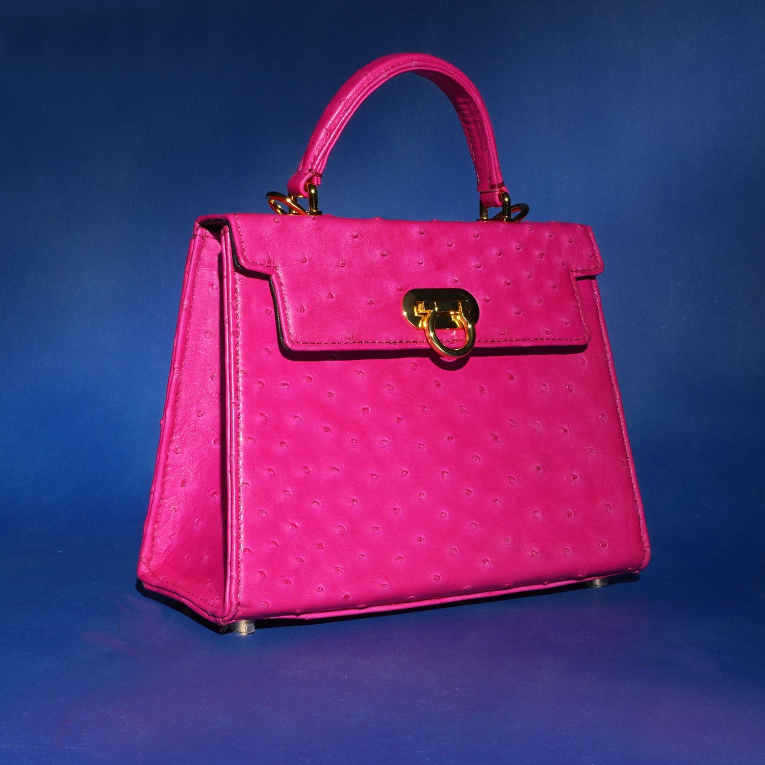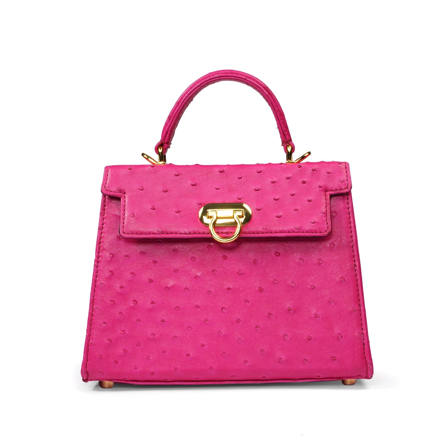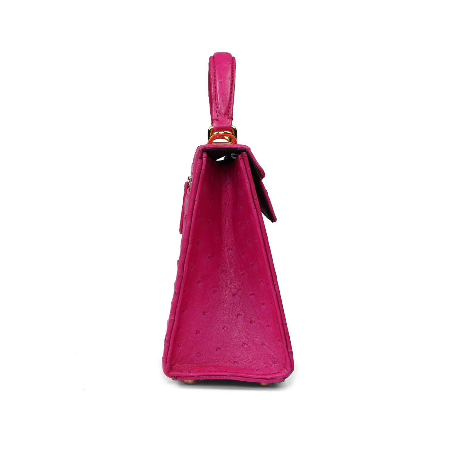 Medium Sized Premium Structured Pink Handbag in Real Ostrich Leather