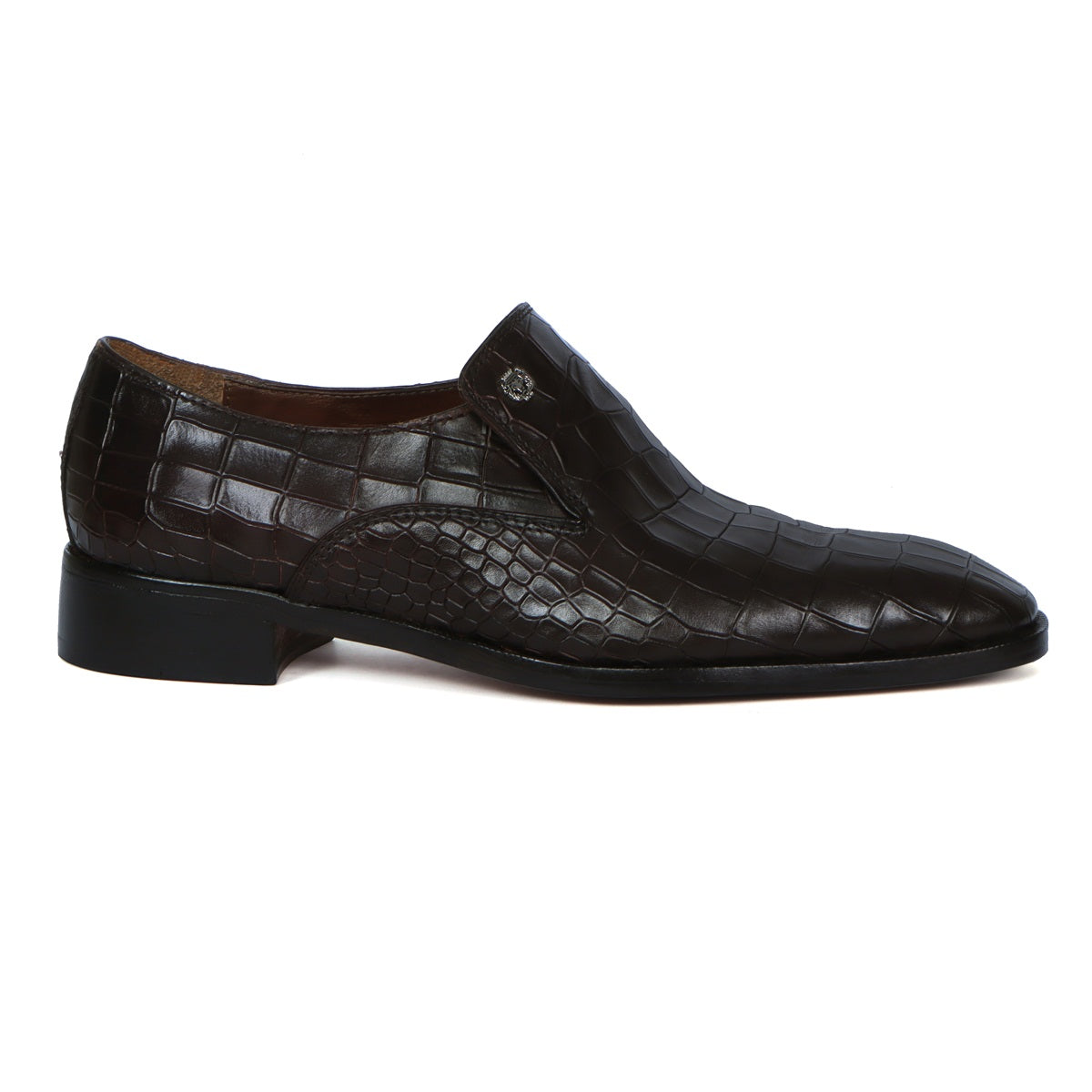 Men Italian Loafer with Dark Brown Deep Cut Croco Textured Leather