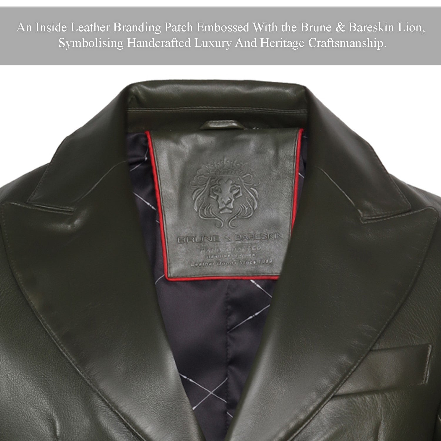 Make a bold statement with our Olive Green Premium Lambskin Leather Blazer, crafted for those who appreciate distinctive luxury and refined craftsmanship. Designed using premium-quality leather, this blazer features a chest pocket with two flap pockets powerful, sophisticated look with a rich, dimensional finish.