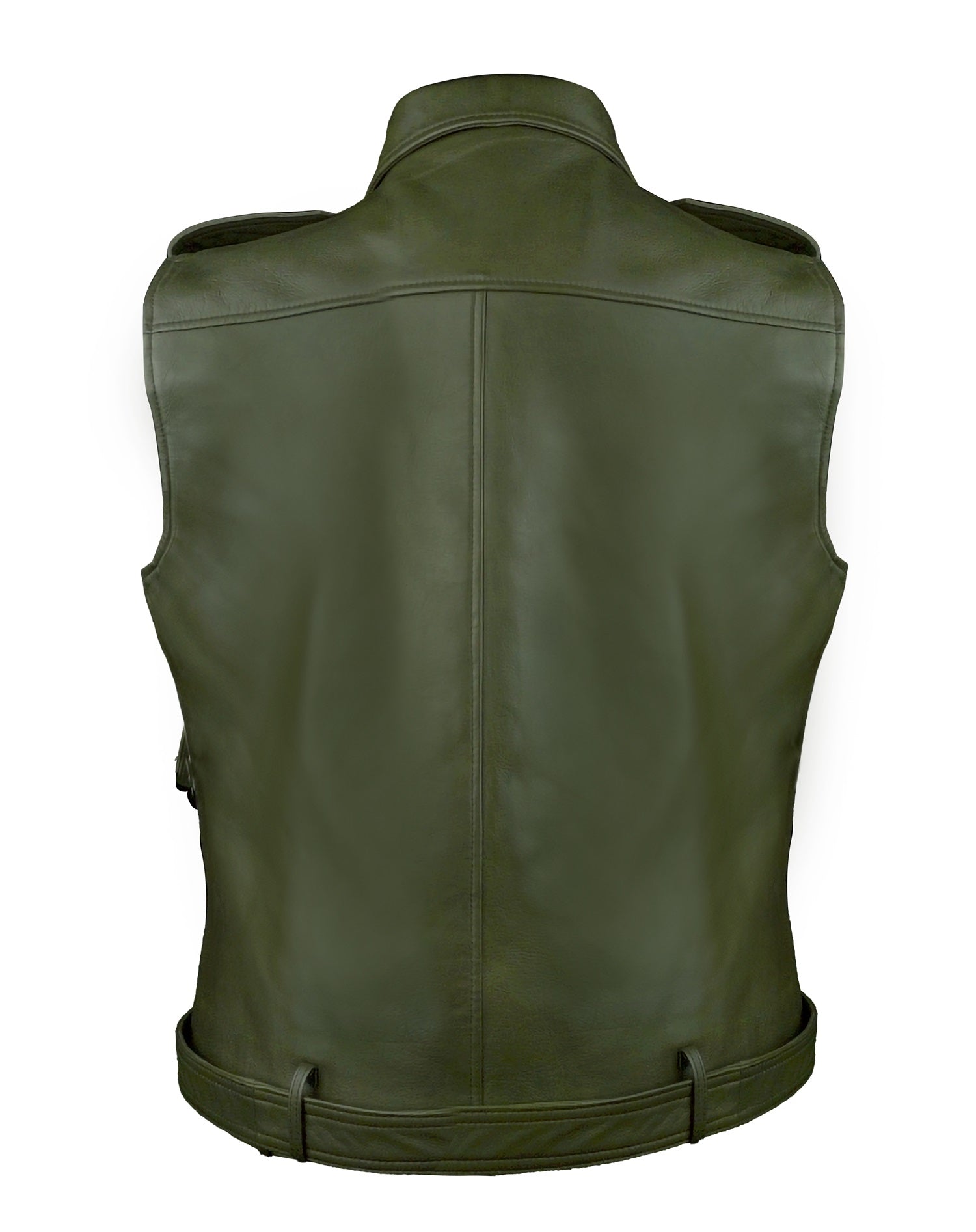Men’s Olive Leather Utility Vest with Belted Hem Detail