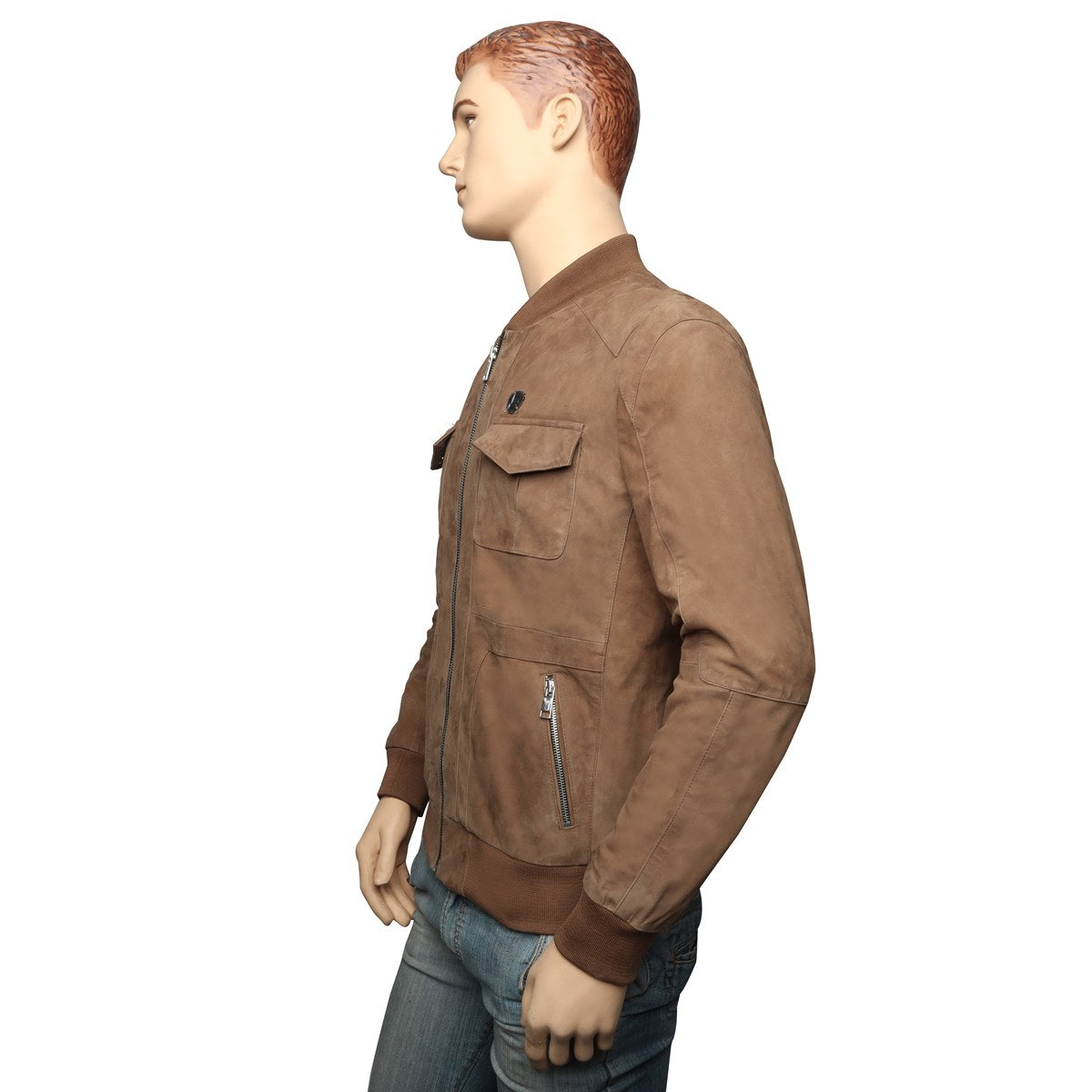 Men's Multi Pockets Beige Suede Leather Jacket with Rib Design by Brune & Bareskin