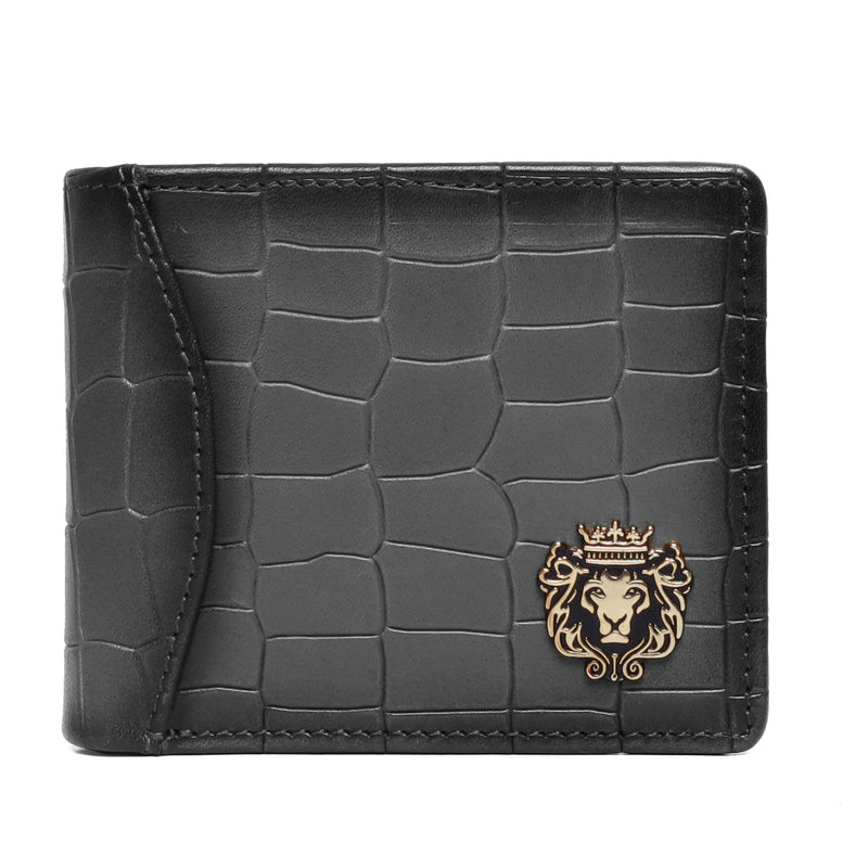 Men's Bi-Fold Wallet with Smoky Green Deep Cut Croco Textured Leather