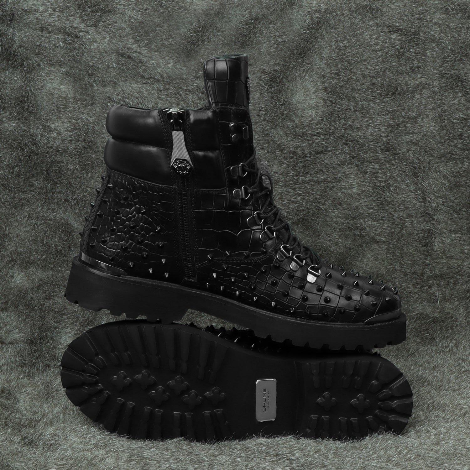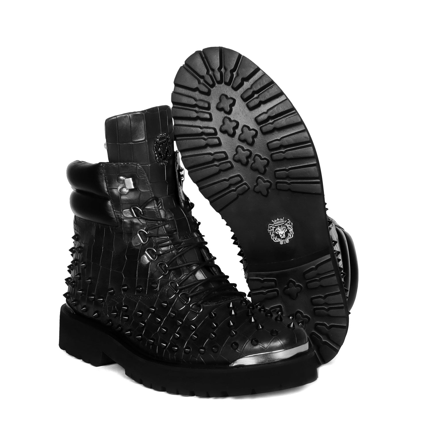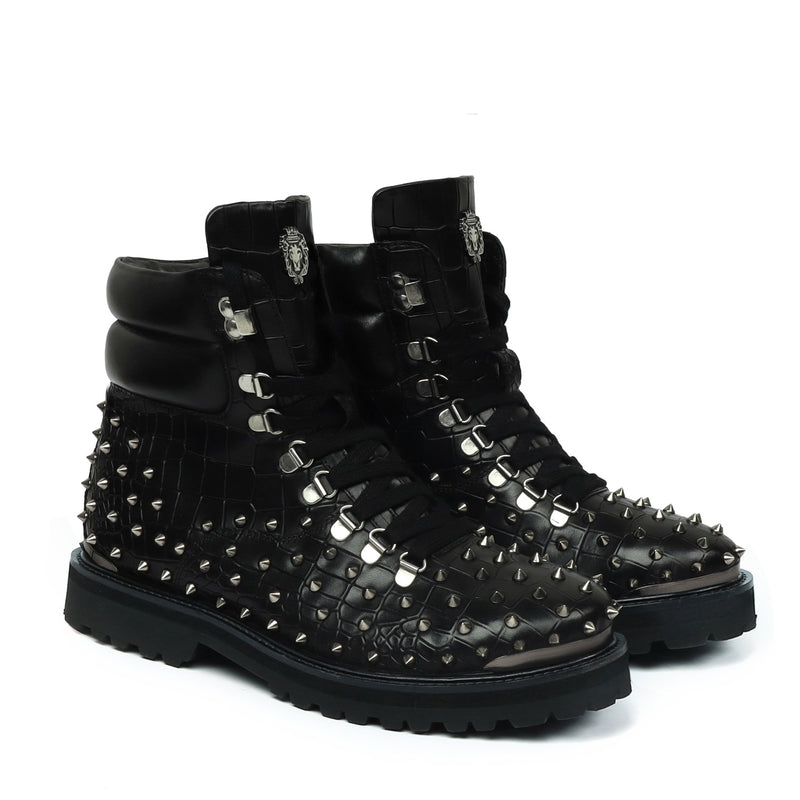 Stud Black Biker Boots in Deep Cut Leather with Ultra Light Weight by Brune & Bareskin
