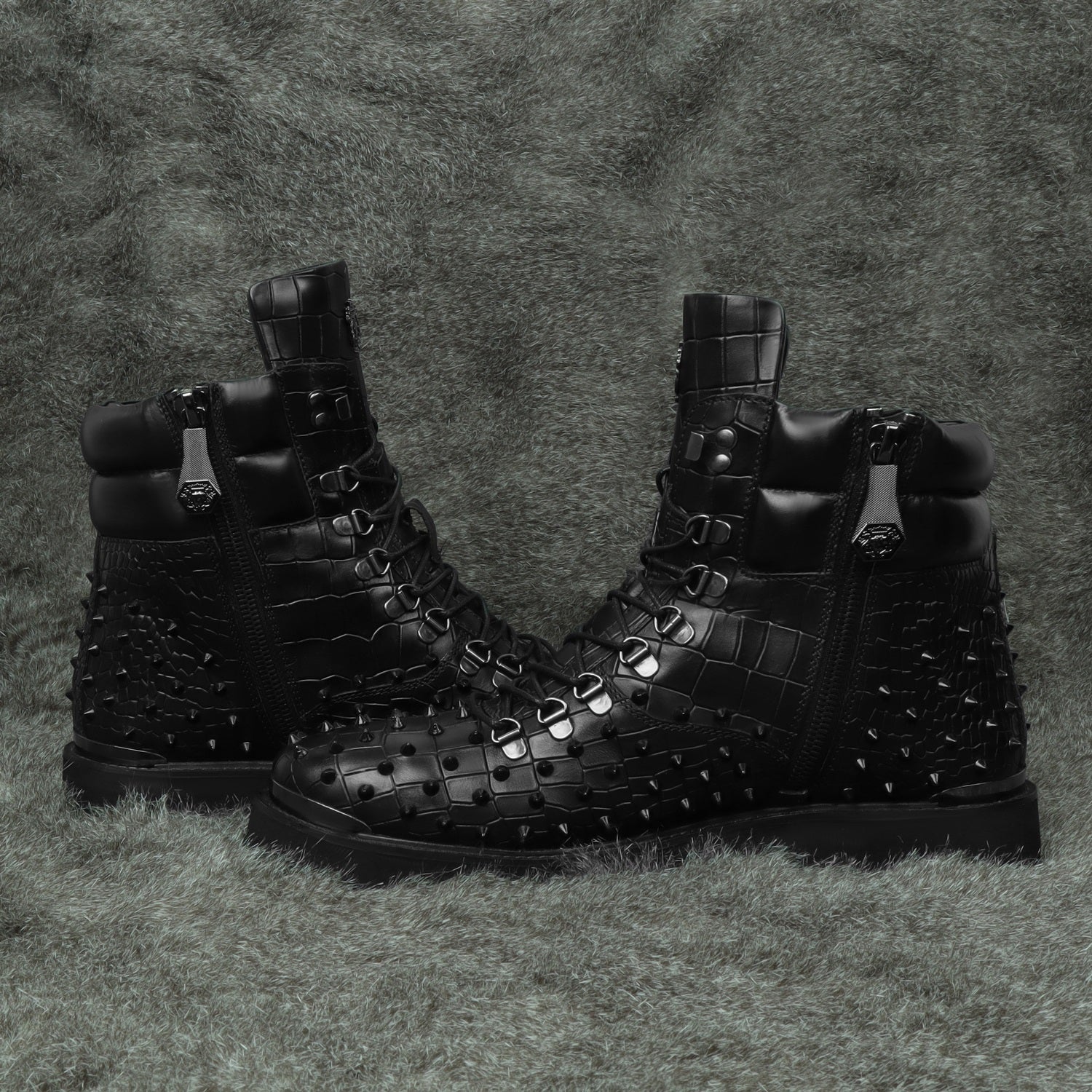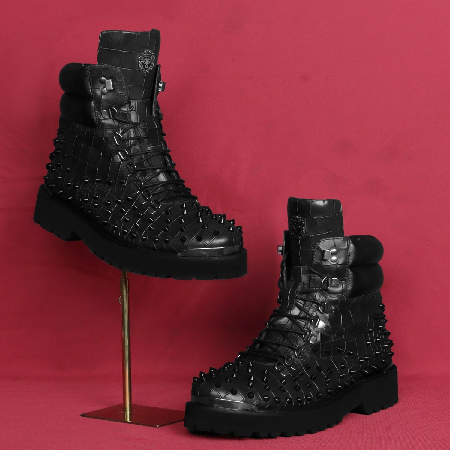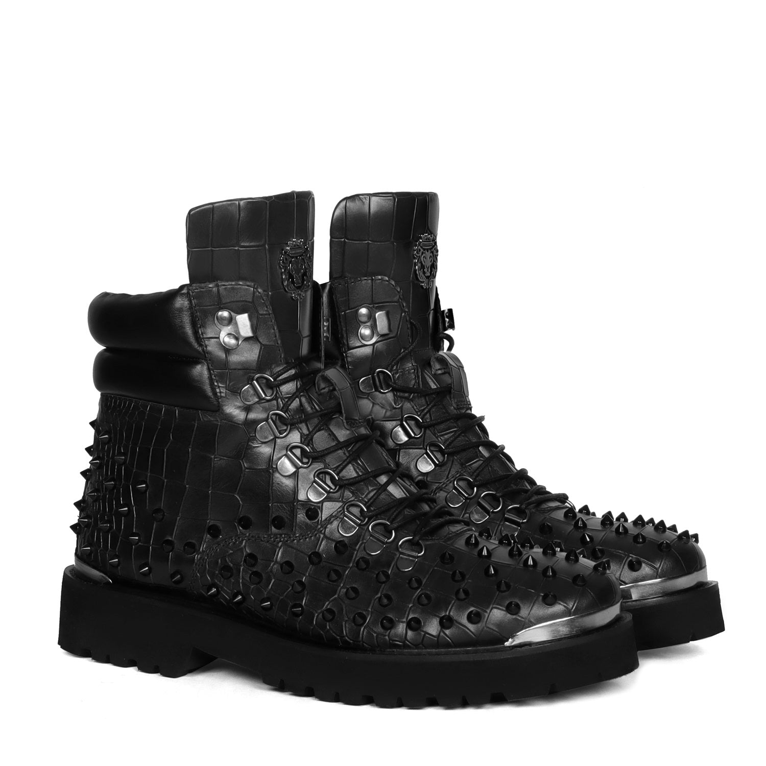 Stud Black Biker Boots in Deep Cut Leather with Ultra Light Weight by Brune & Bareskin