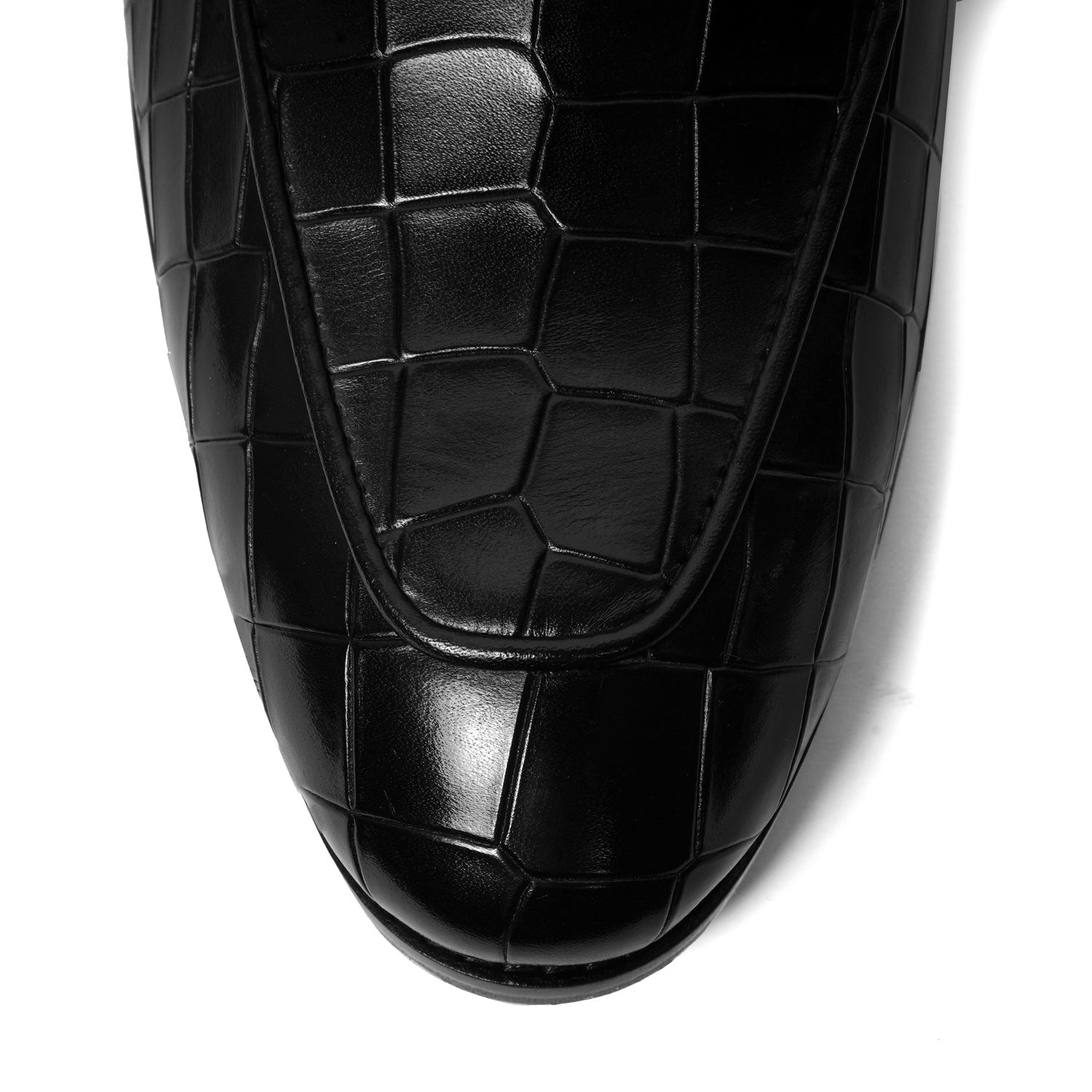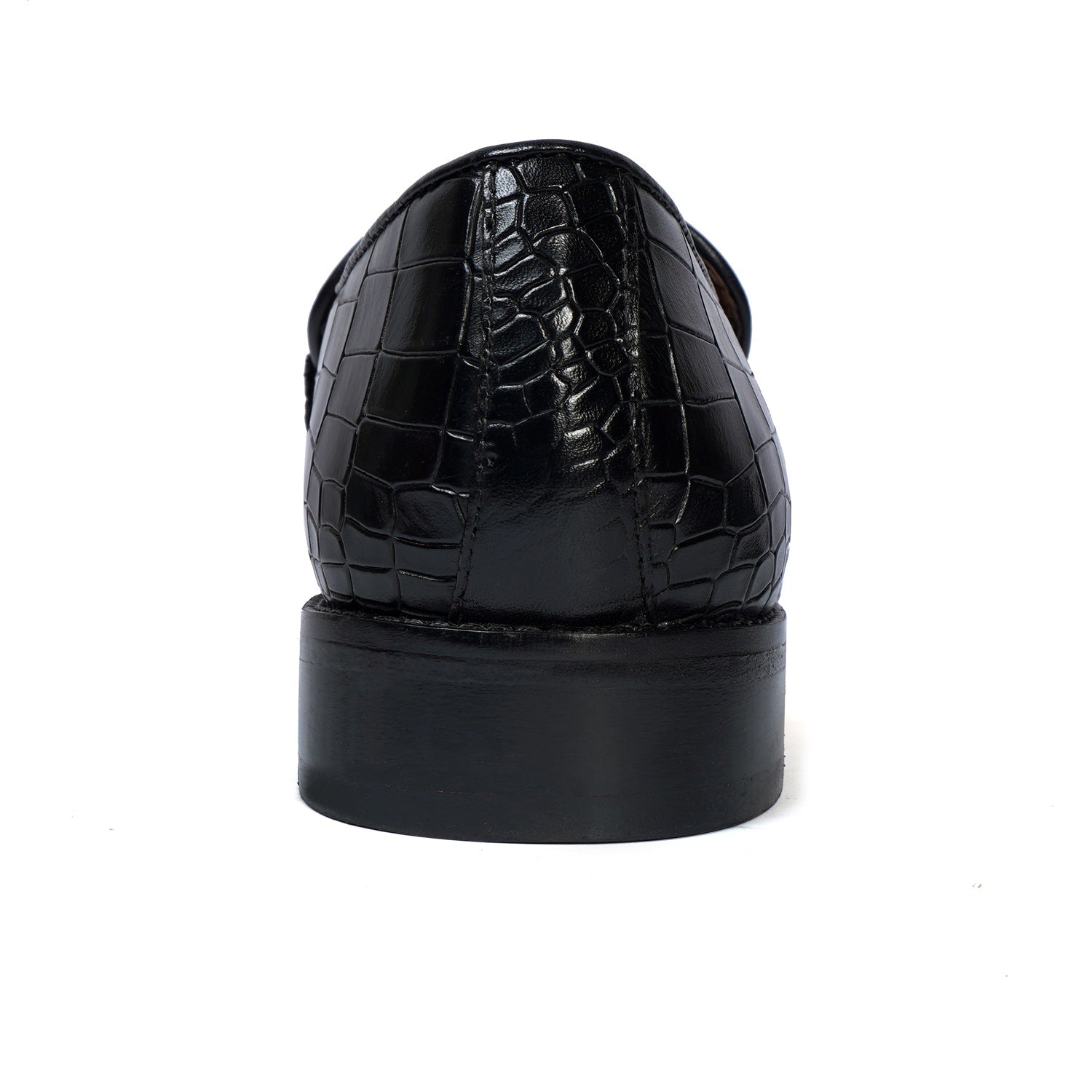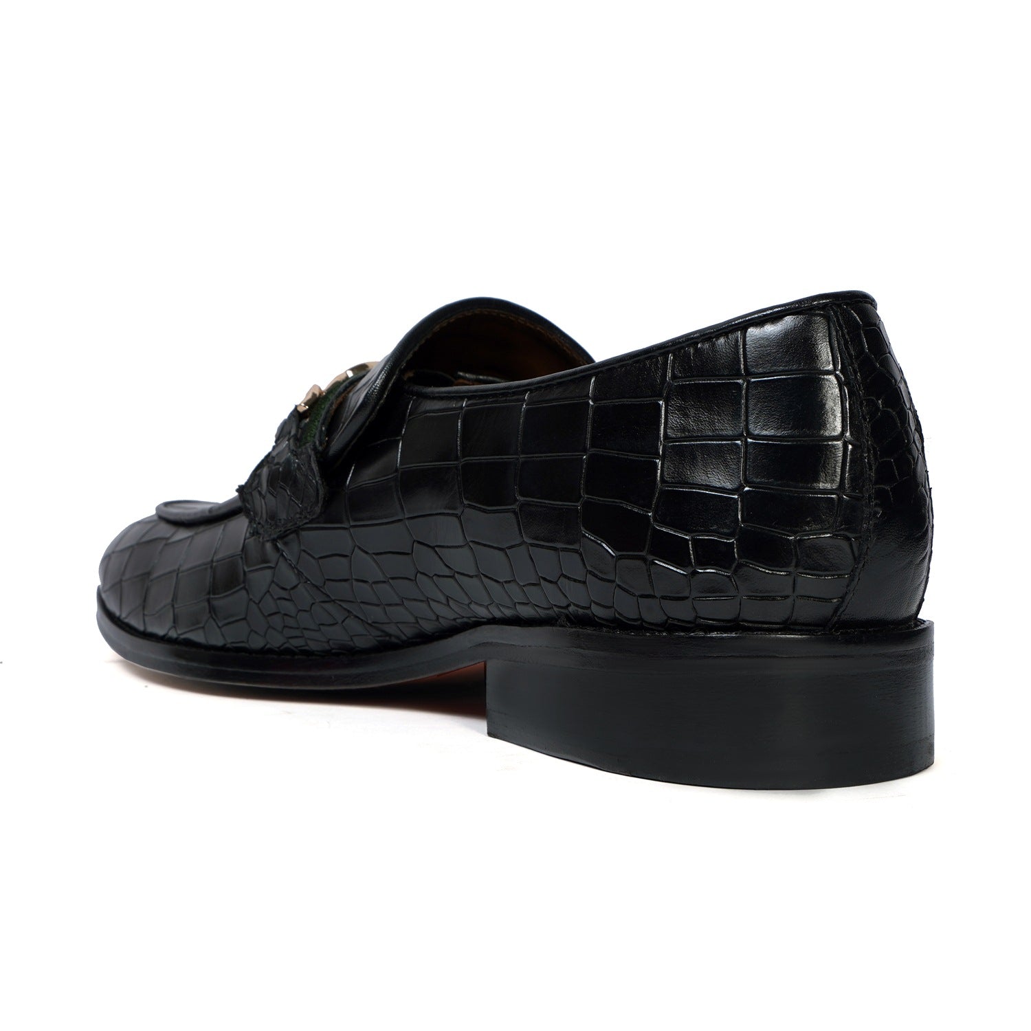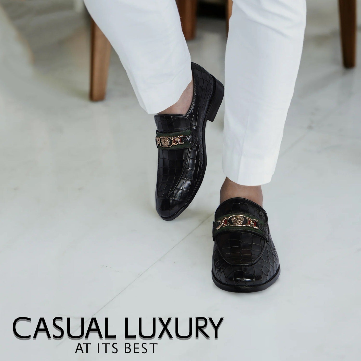 Croco Textured Black Loafer with Raised Metal Lion Chain Embellishment