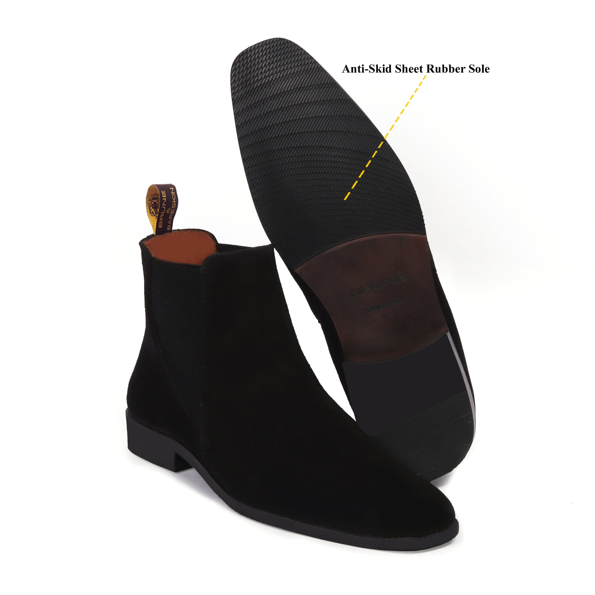 Crafted in rich black suede leather, this Chelsea boot blends timeless elegance with modern sophistication. The sleek silhouette is elevated by a sharp elastic side design, offering both style and ease of wear. Built for comfort and durability, it’s a versatile piece that pairs effortlessly with both formal and casual outfits—making it a must-have addition to any wardrobe.