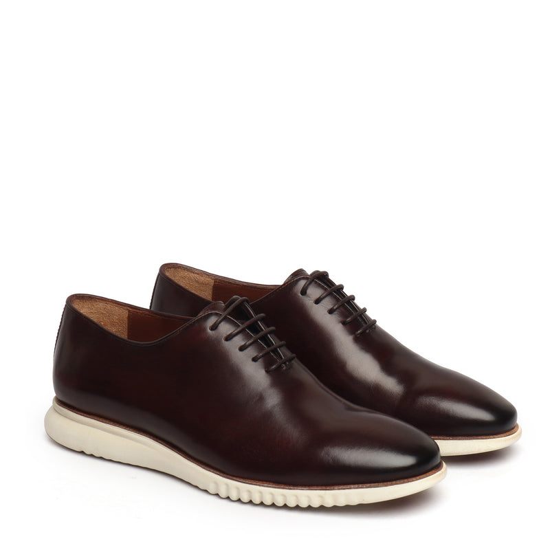 Black Light Weight Leather Oxford Lace-Up Sneakers