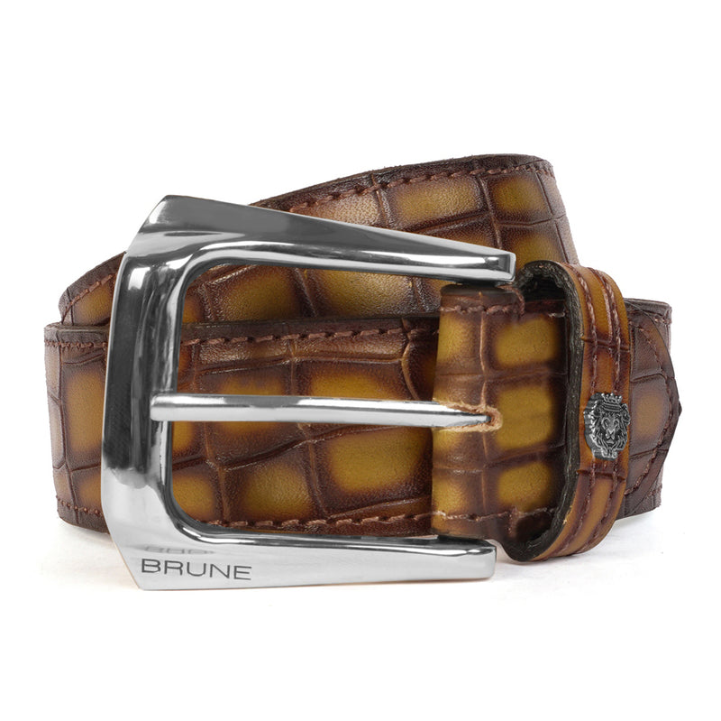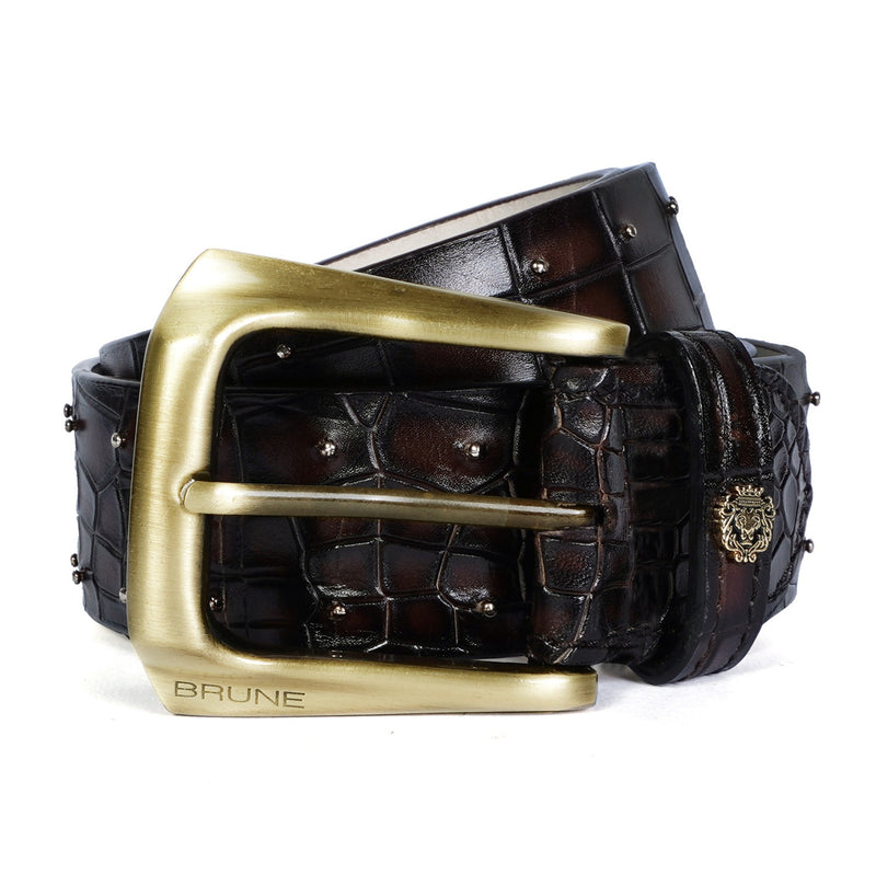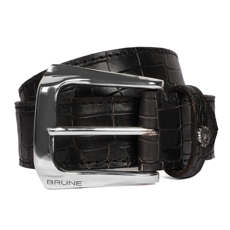 Brune & Bareskin's introducing special Design the Micro Size Lion Logo to add an extra elegance For different products. The Stylish Mini lion logo and golden slant shape finished buckle enhances its appearance further. This attractive belt ranks high on the latest Formal style to offer you well-deserved popularity. The gold finished buckle enhances its appearance further. It can easily be teamed up with our suede leather shoes, wallet, card holders and other accessories.