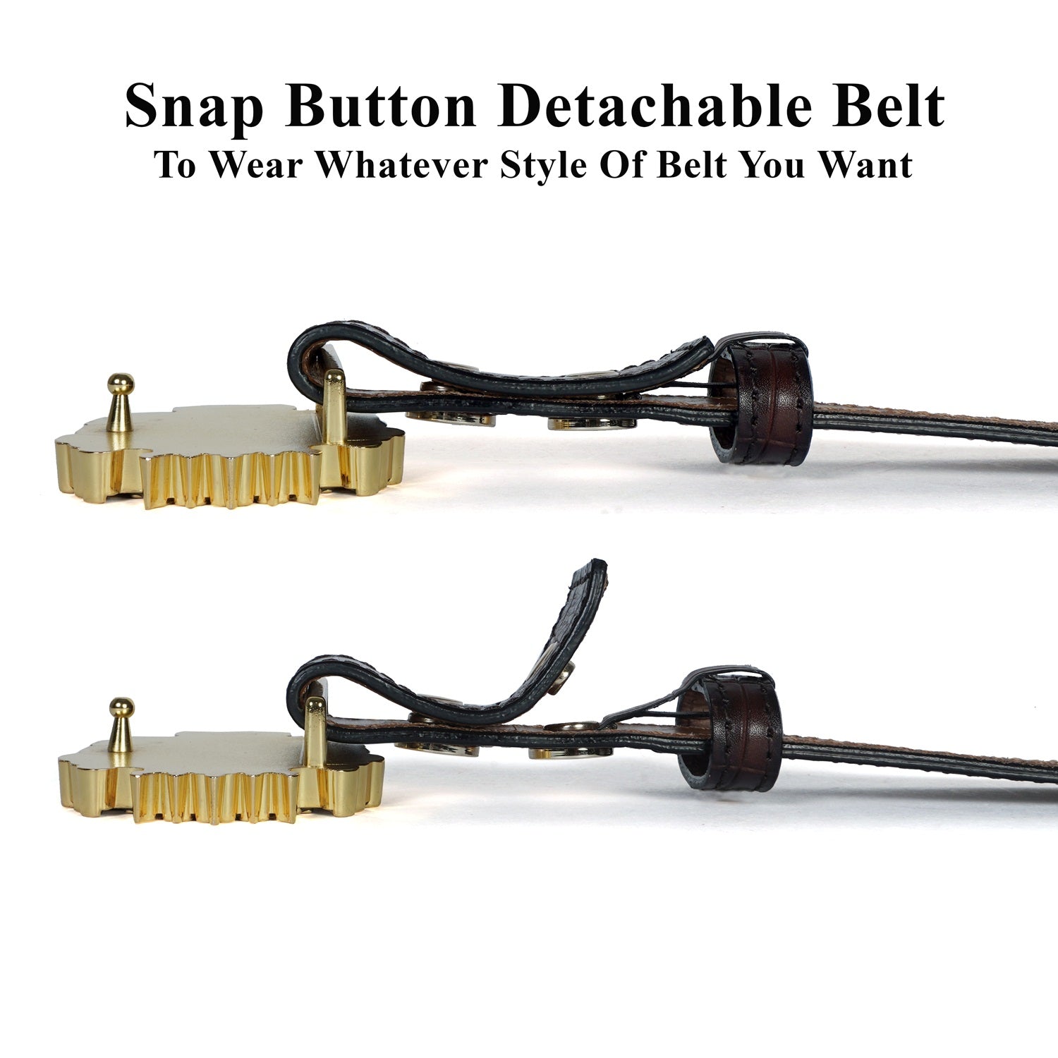 Detachable Dark Brown Belt with Removable "Brune & Bareskin" Brand Lion Logo Buckle in Deep Cut Leather