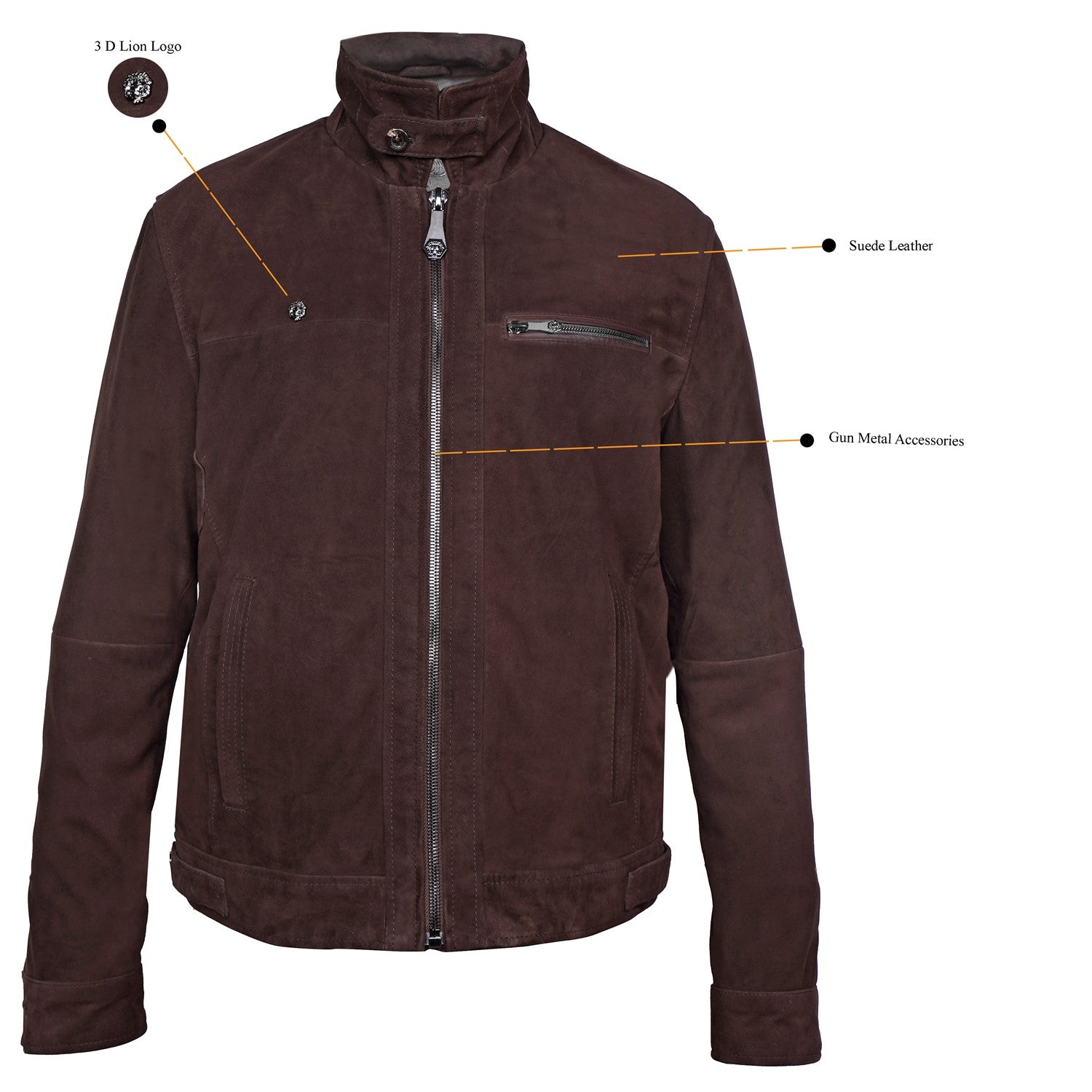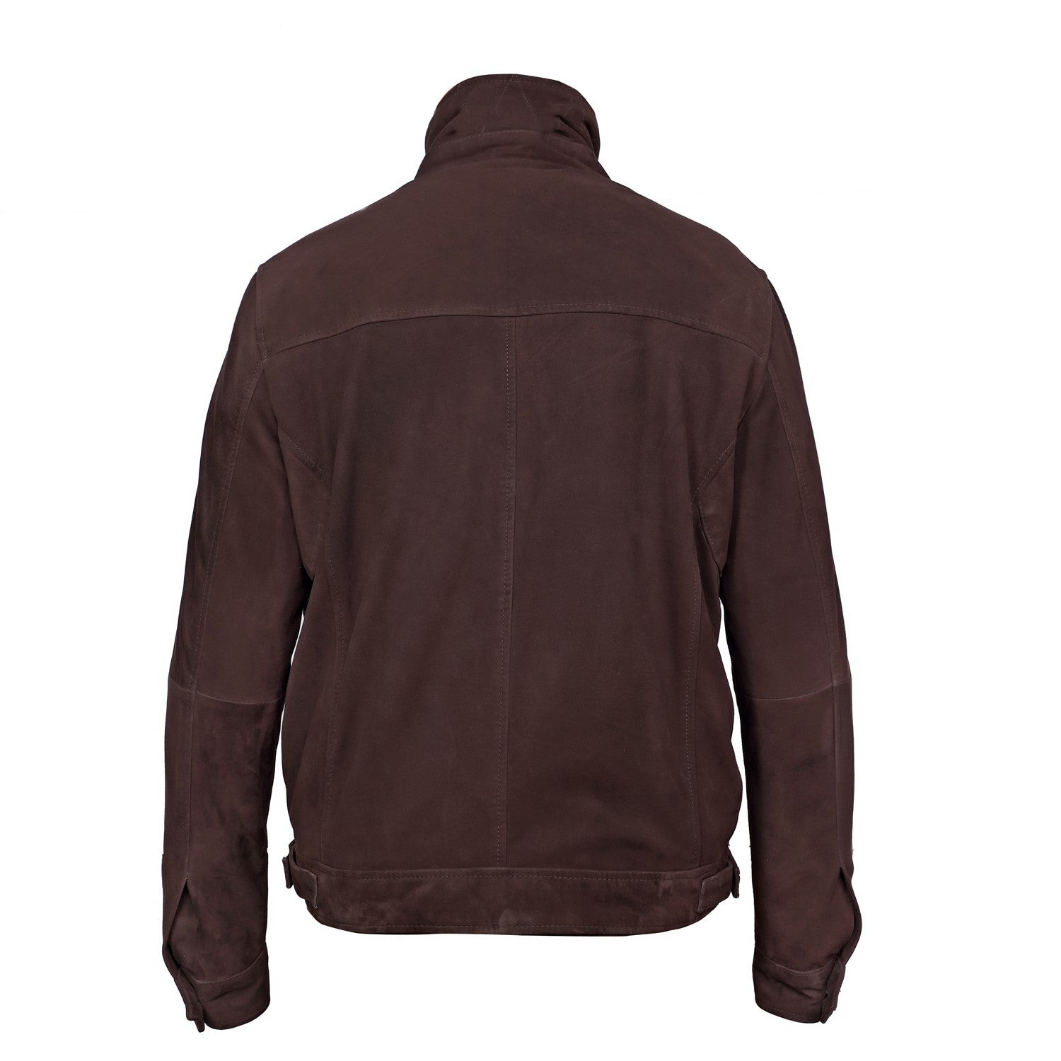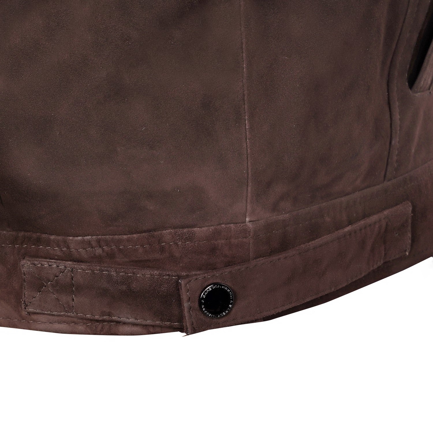 Men's Dark Brown Suede Leather Club Collar Regular Fit Jacket