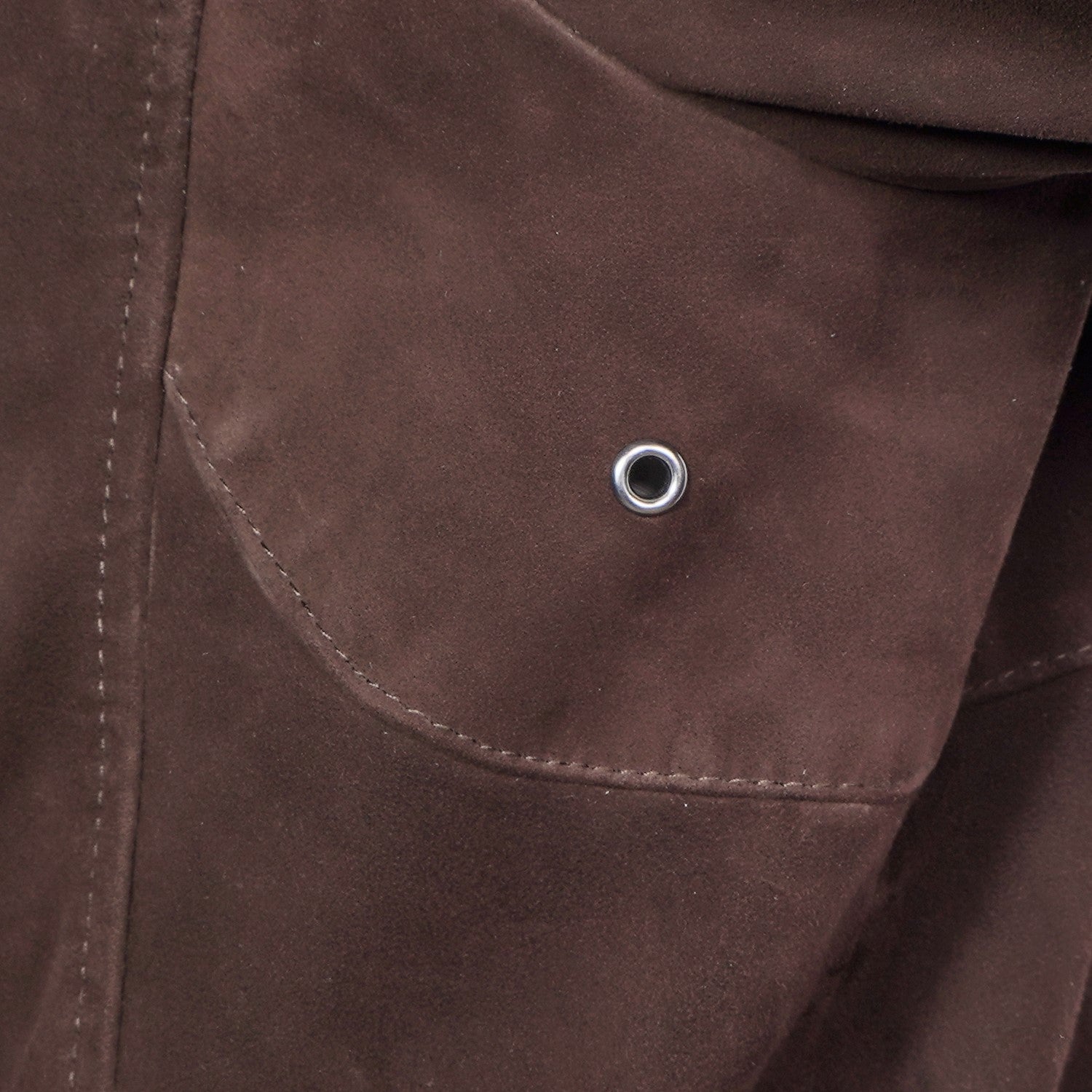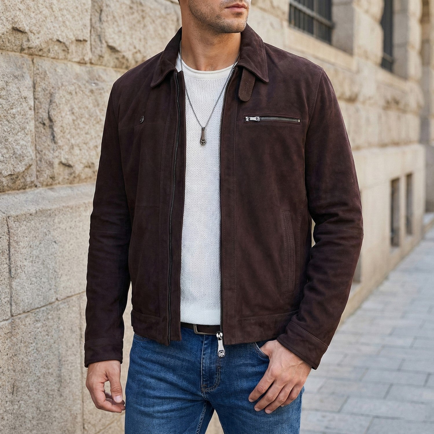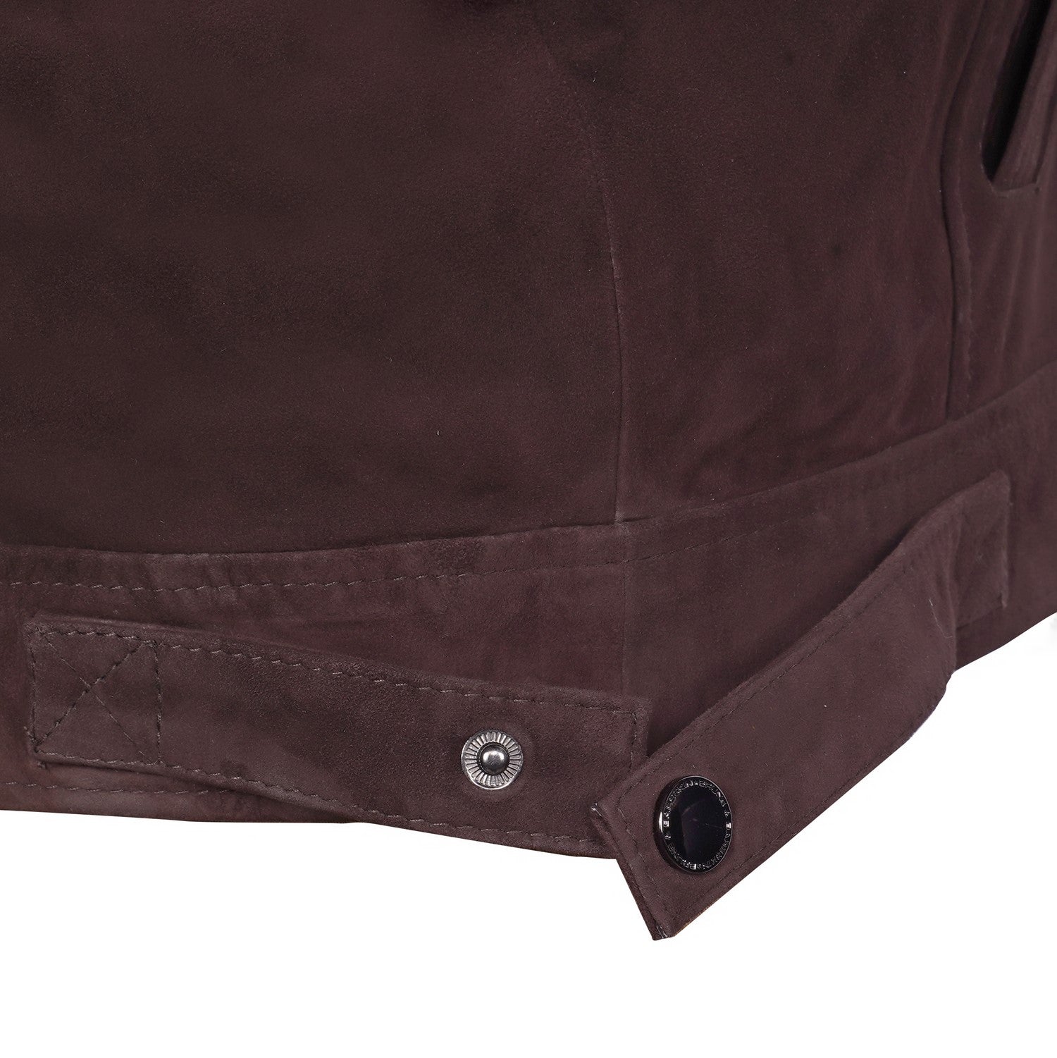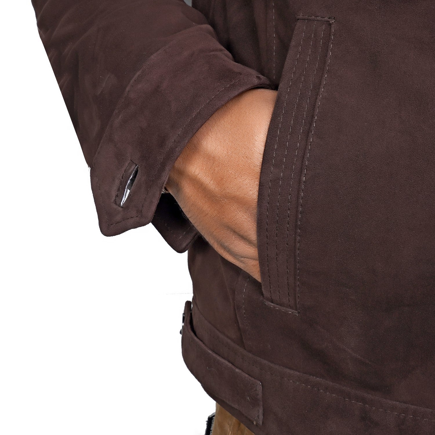 Men's Dark Brown Suede Leather Club Collar Regular Fit Jacket