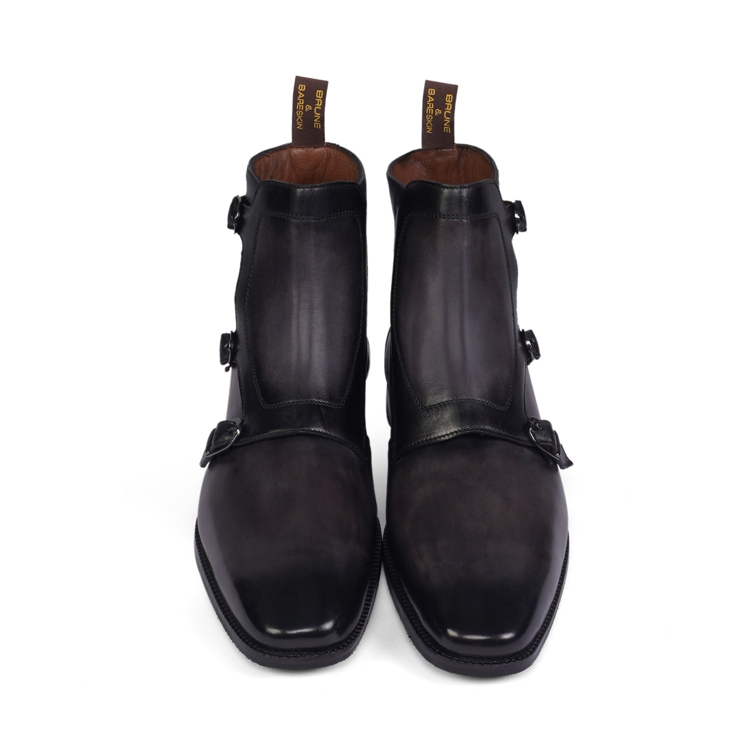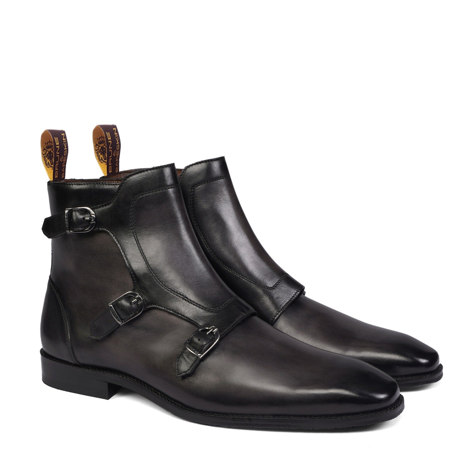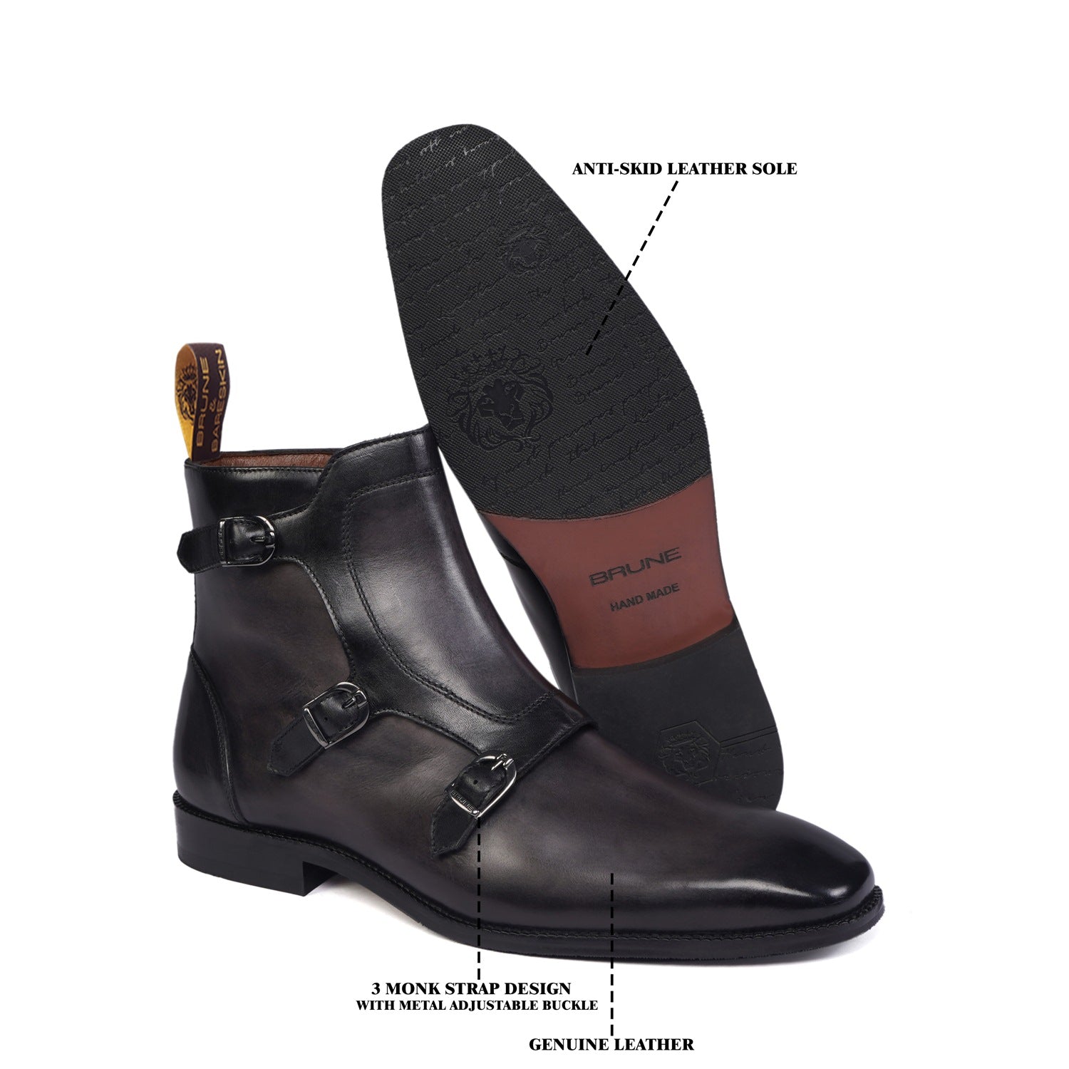 Men's Grey Triple Monk High Ankle Leather Boots By Brune & Bareskin