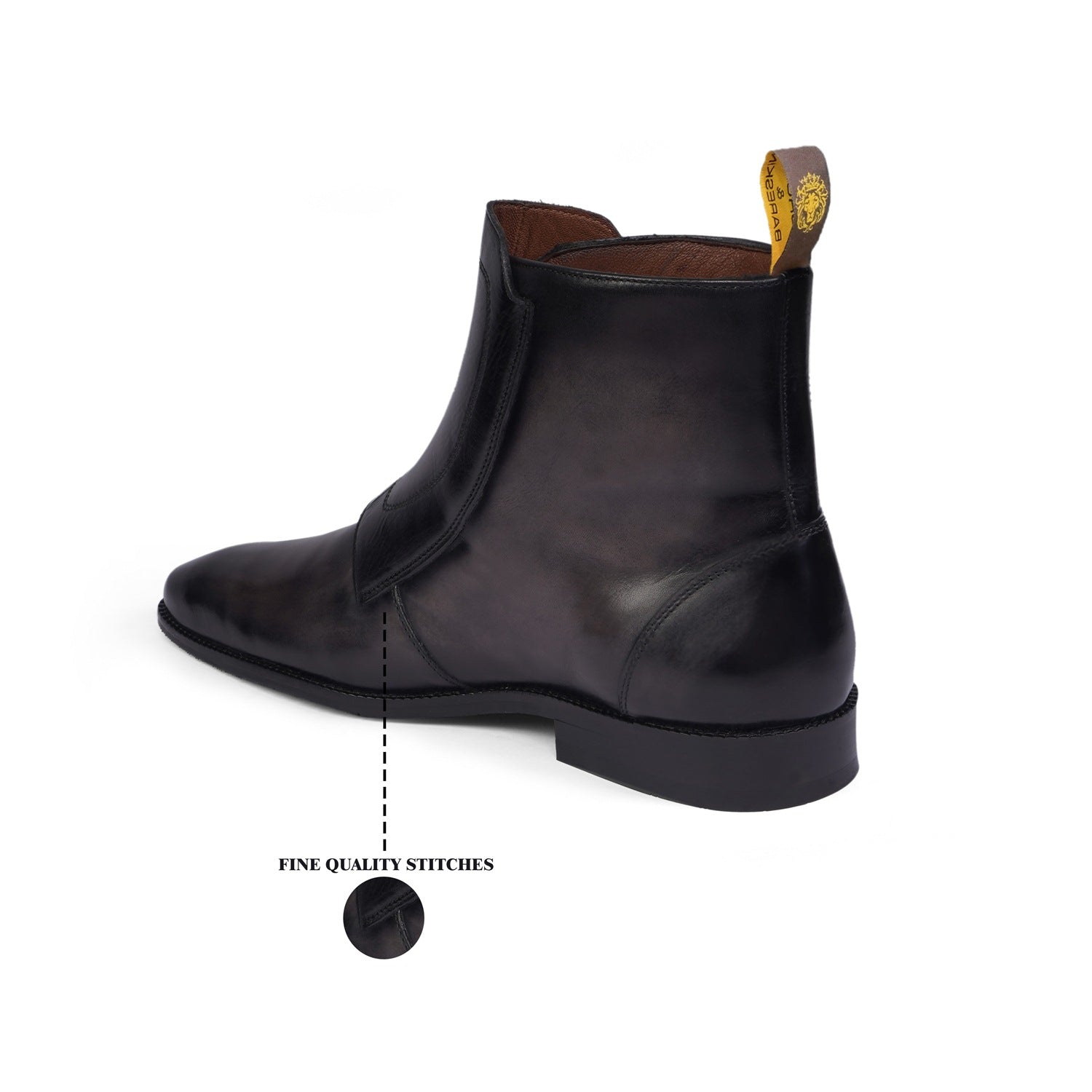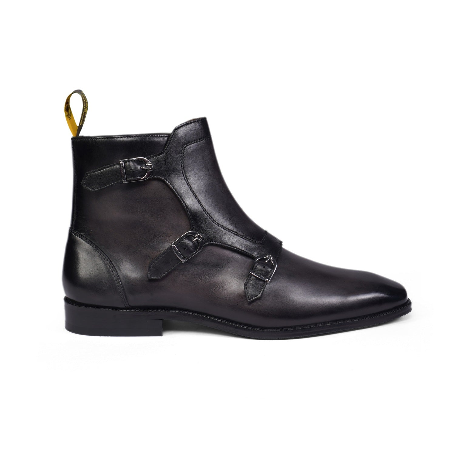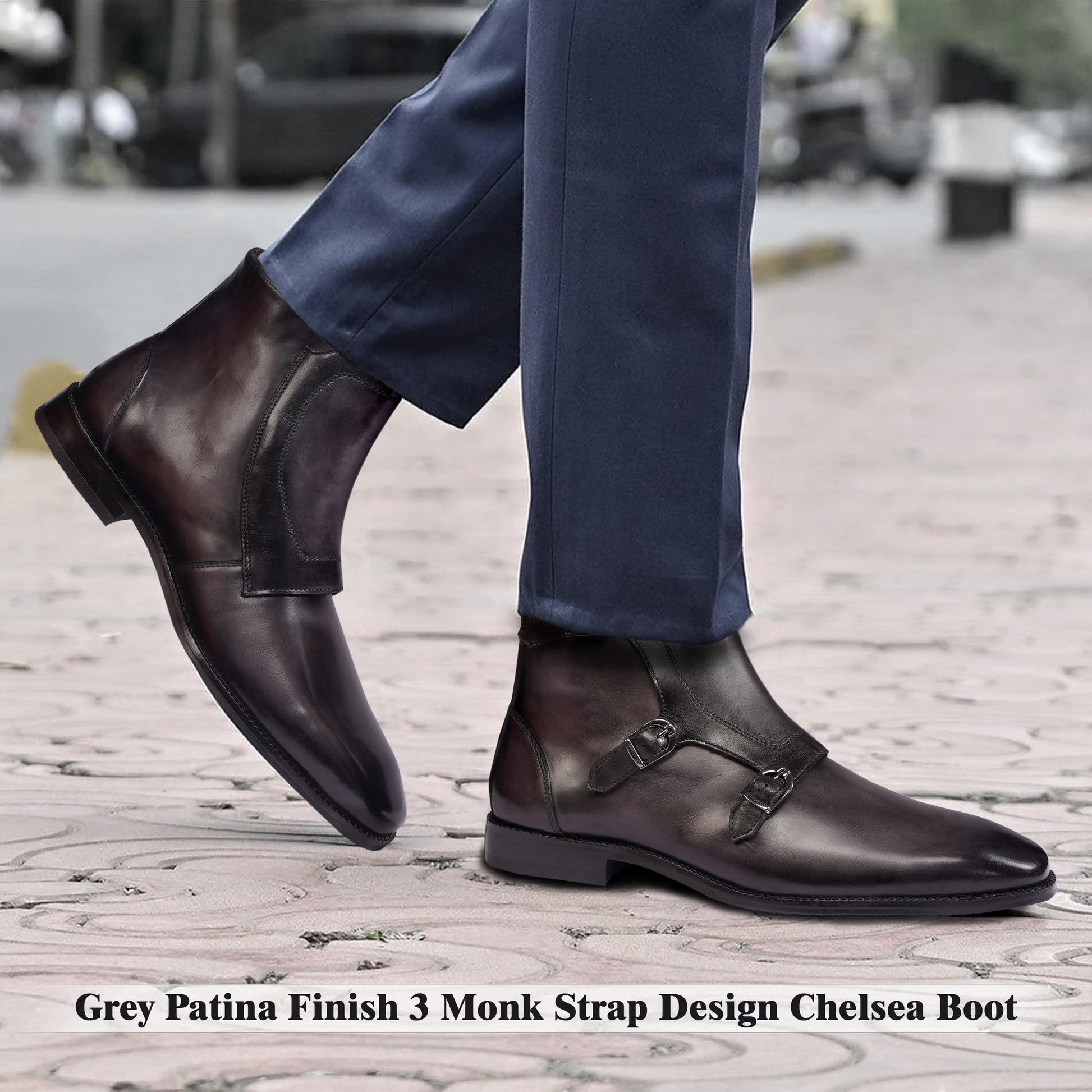 Men's Grey Triple Monk High Ankle Leather Boots By Brune & Bareskin