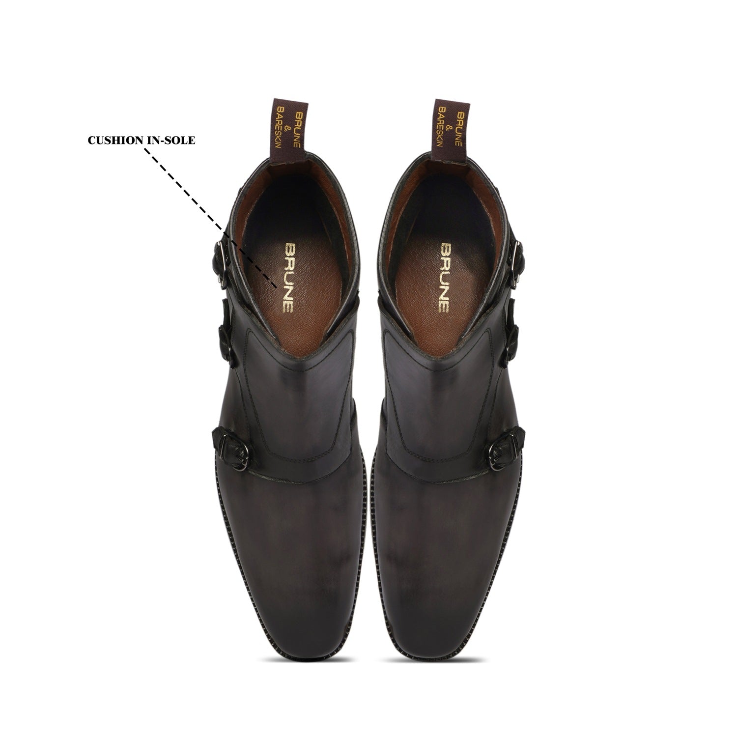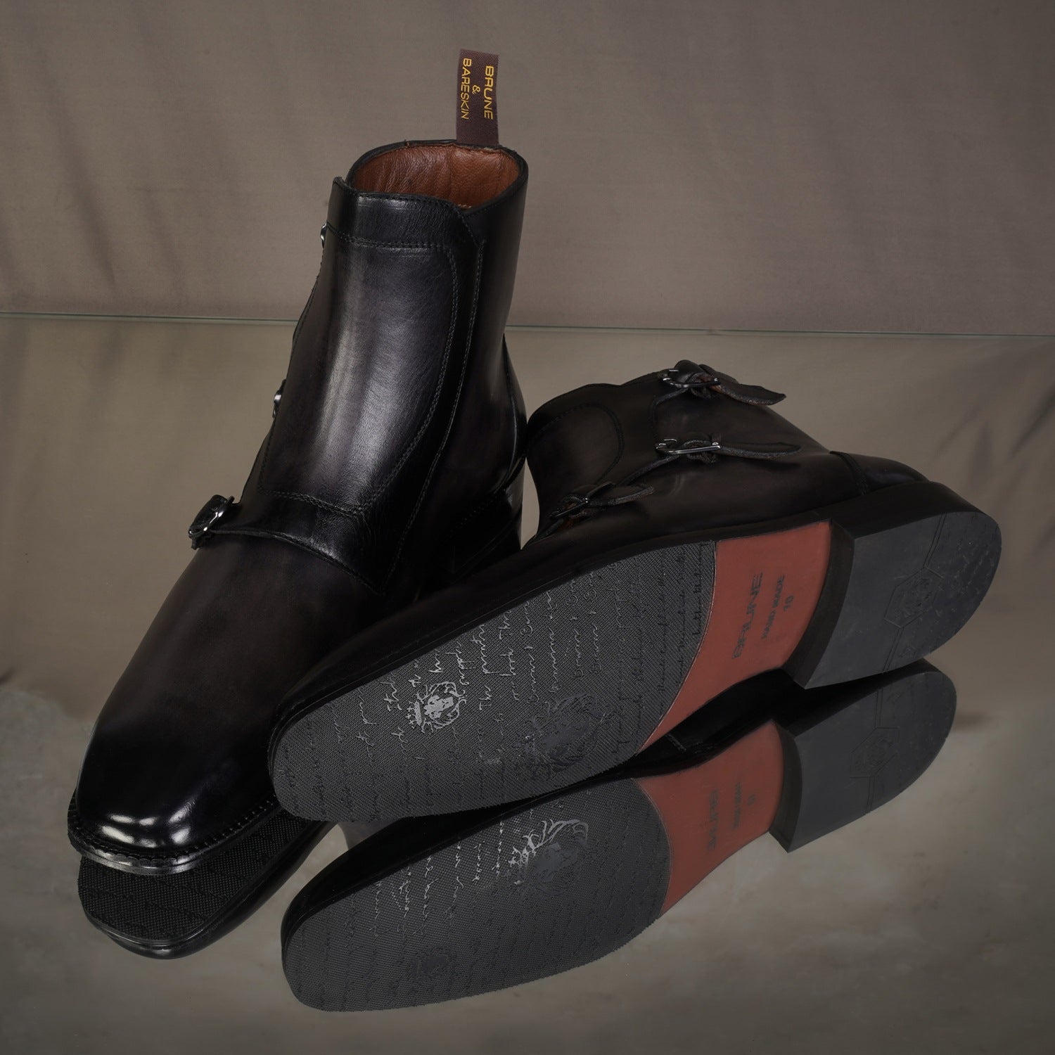 Class, Comfort & Style is available at Brune & Bareskin. If you prefer the buckle and strap system for your shoes, over lace shoes, then this is a perfect style for you. These triple monk high ankle leather boots are real piece of style Gems. Burnished Hand Finished Leather enhances the style quotient. These ankle-length shoes are fitted shoes that emphasize the size and shape of your feet to perfection. They are easy to team from a casual adventures look to formal trousers as they blend well with the classic fabrics as well as the modern blended synthetic fabric pants, slacks and trousers. BRUNE & BARESKIN continues to offer this classic shoe design to match your customized needs as well. You can ask for personalized changes to these monks boot to give them your styling touch.