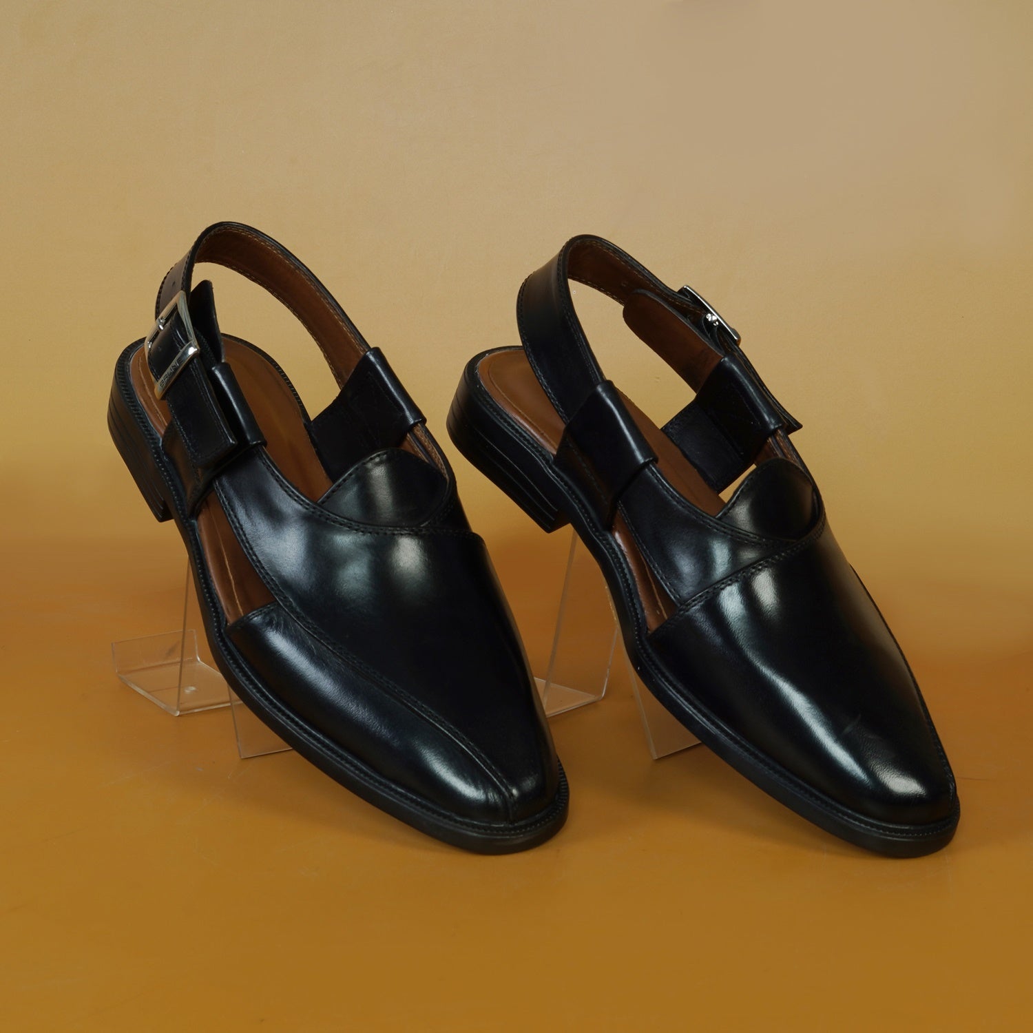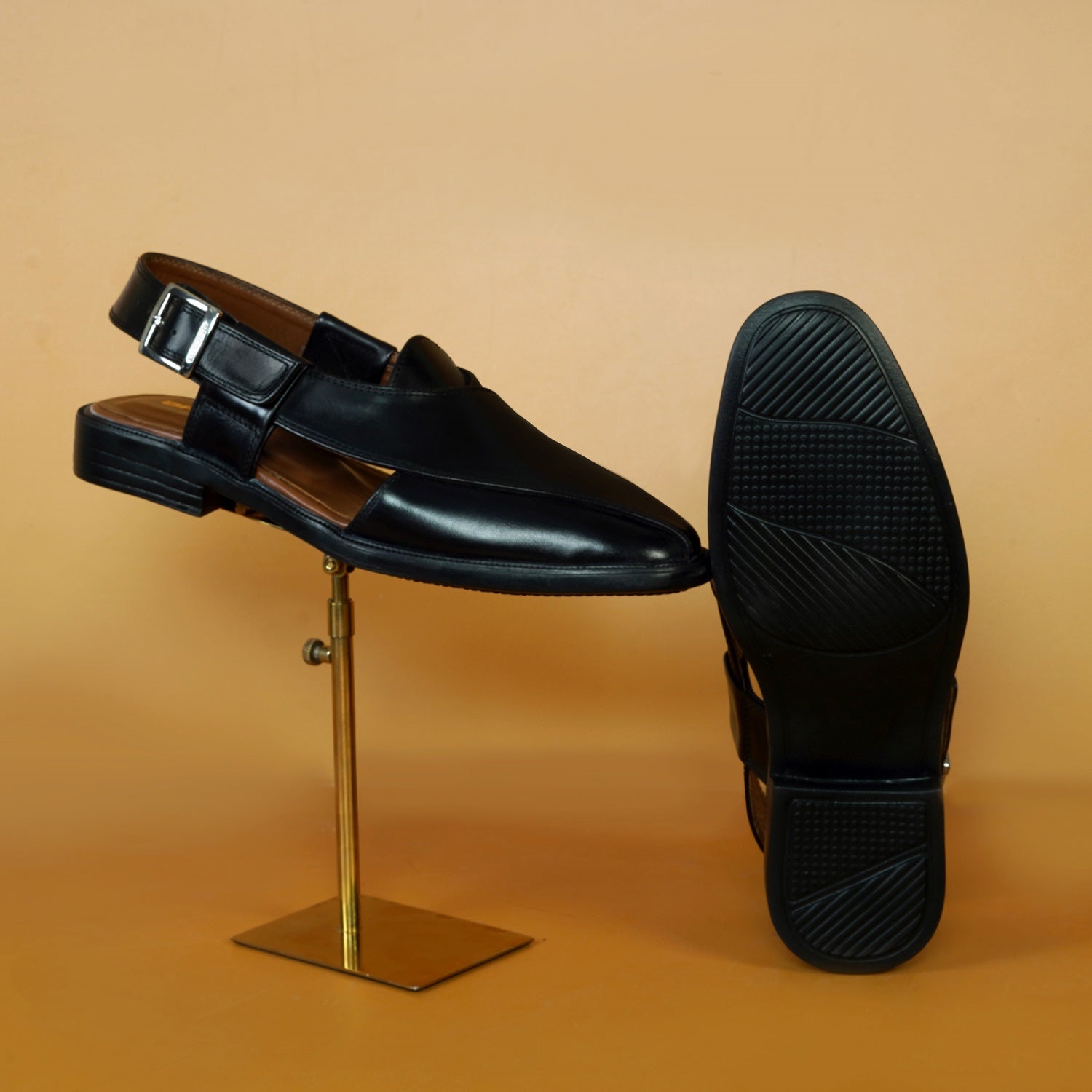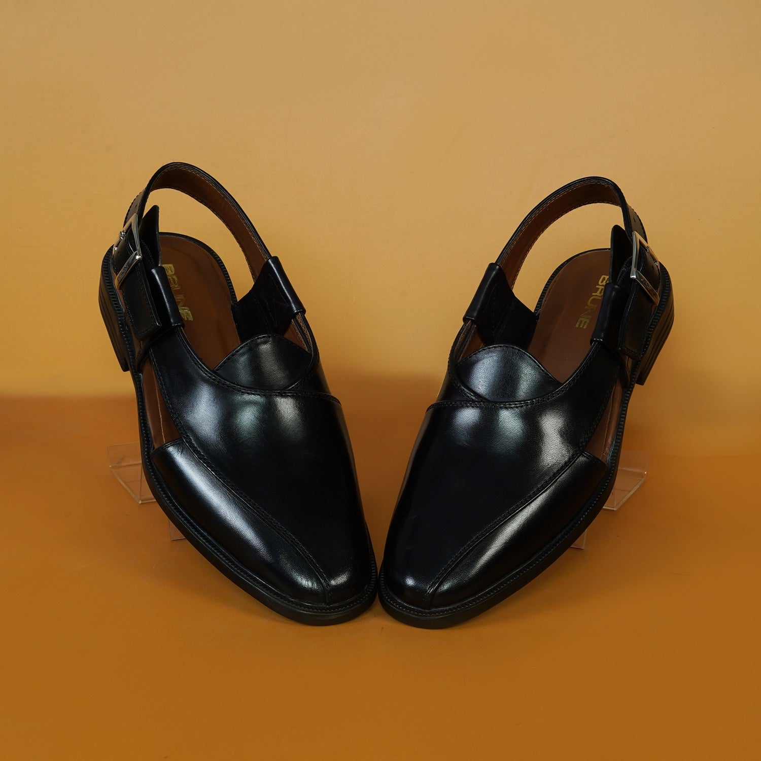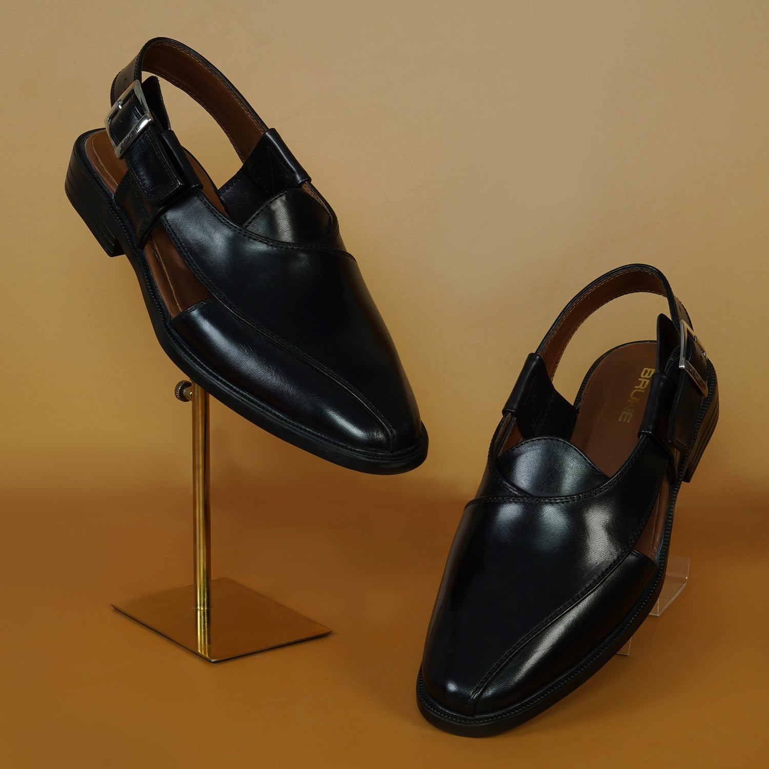 Take a deep breath & relax with our comfort sole Men's sandals. The Hand-painted slightly darker shade patches on the black color are blended so well. These Peshawari sandals designed with genuine leather & have wide cross straps attached to the sole. The ankle strap is attached along with buckle to wear it at your comfort level & size. These Branded Sandals are precisely crafted with quality and the latest trends in mind. Gives you a marvelous look to team up with any casual or ethnic wear. Leather Sole provides Comfort, grip, and durability to them.