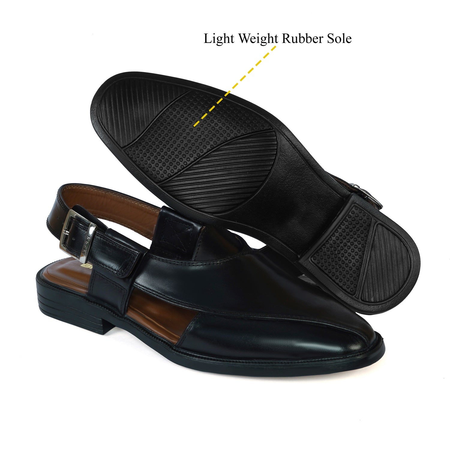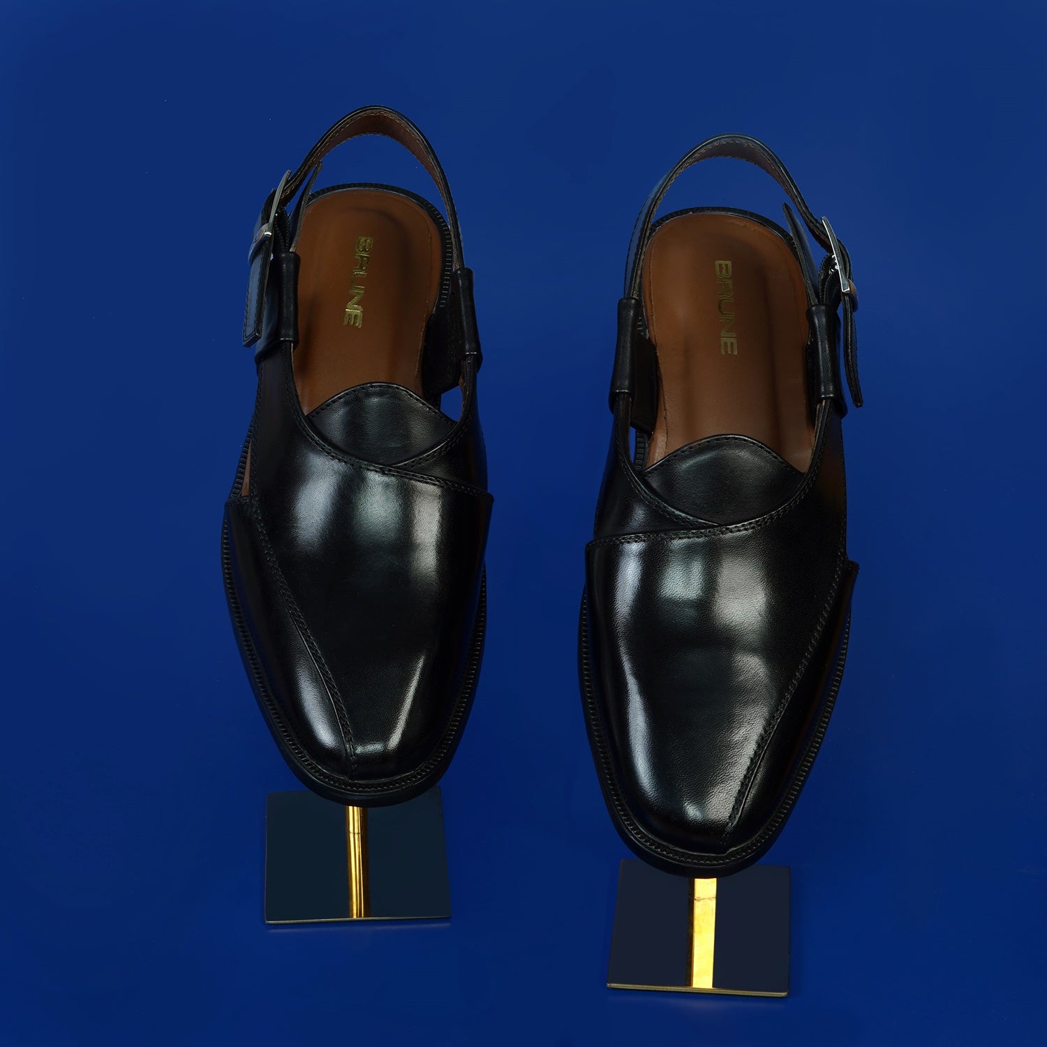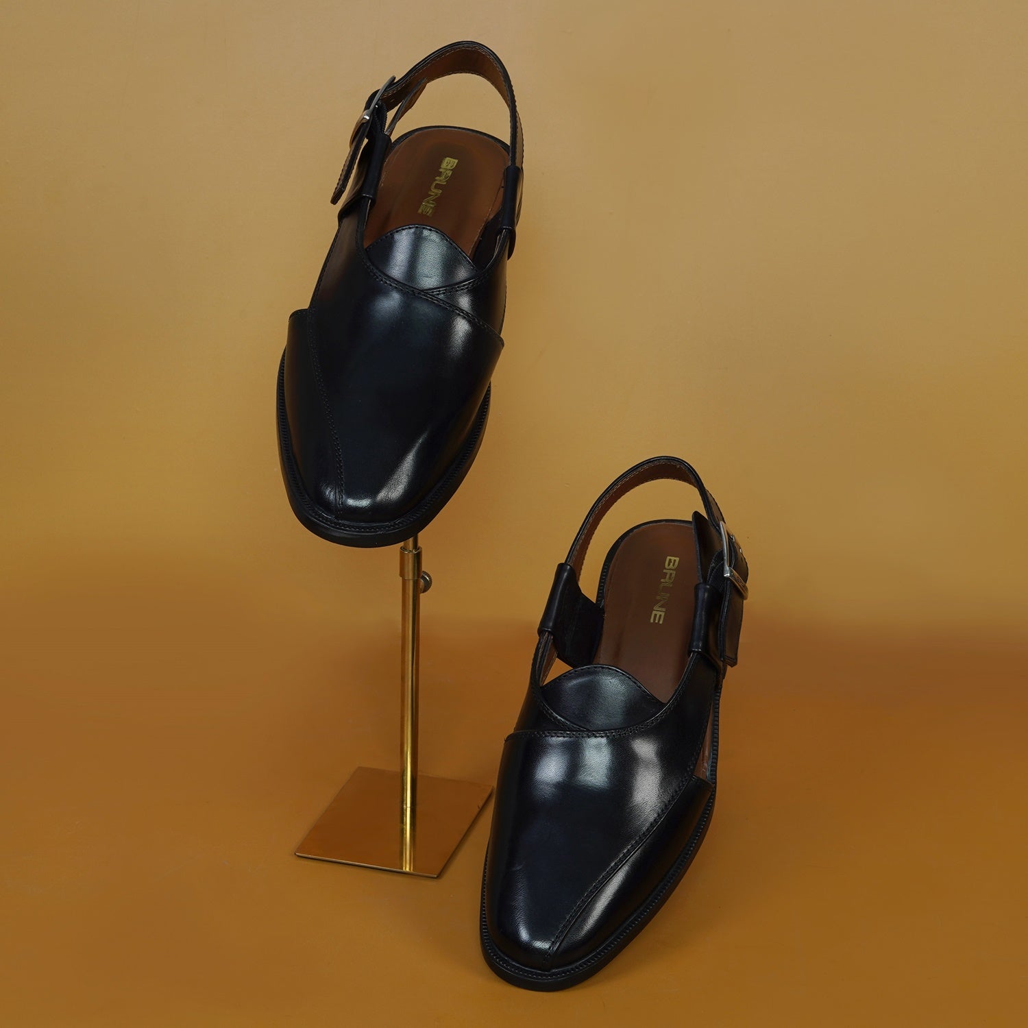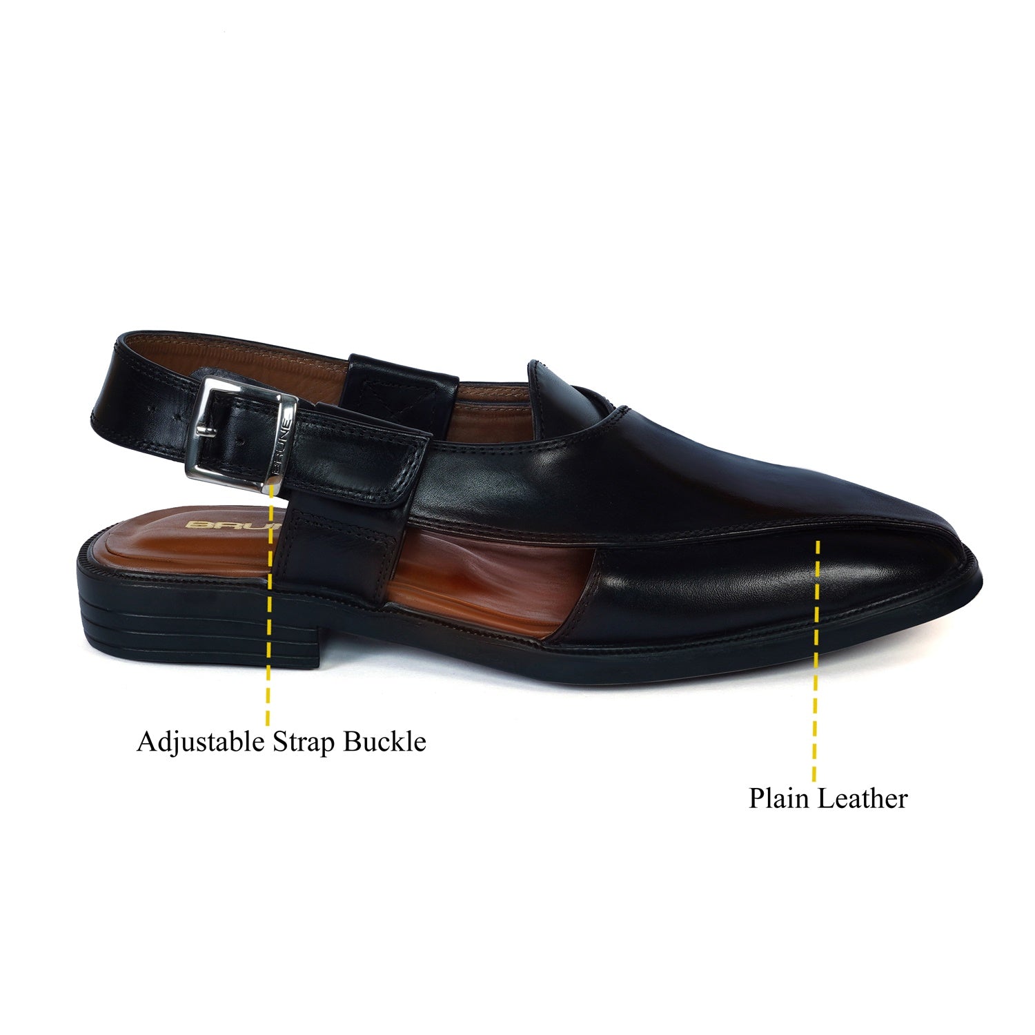 Take a deep breath & relax with our comfort sole Men's sandals. The Hand-painted slightly darker shade patches on the black color are blended so well. These Peshawari sandals designed with genuine leather & have wide cross straps attached to the sole. The ankle strap is attached along with buckle to wear it at your comfort level & size. These Branded Sandals are precisely crafted with quality and the latest trends in mind. Gives you a marvelous look to team up with any casual or ethnic wear. Leather Sole provides Comfort, grip, and durability to them.