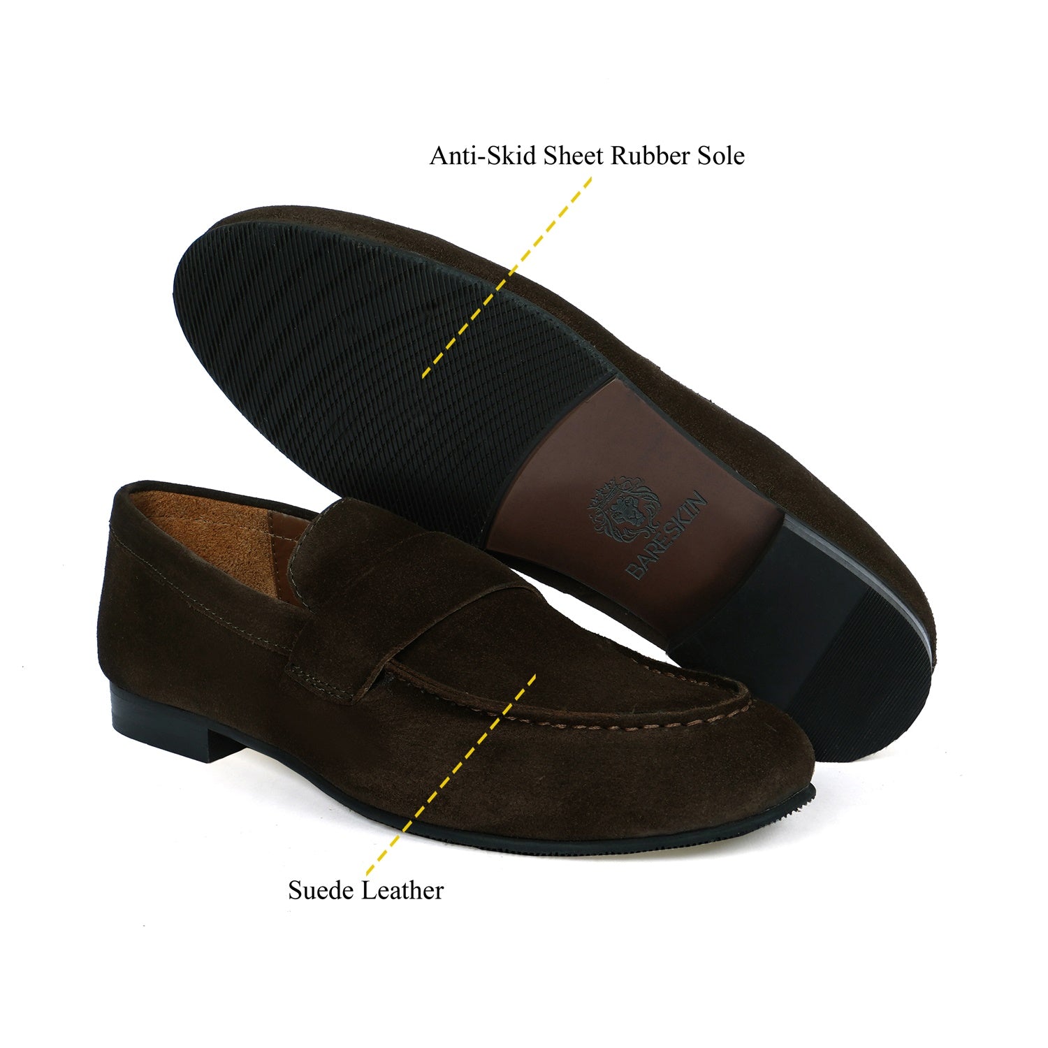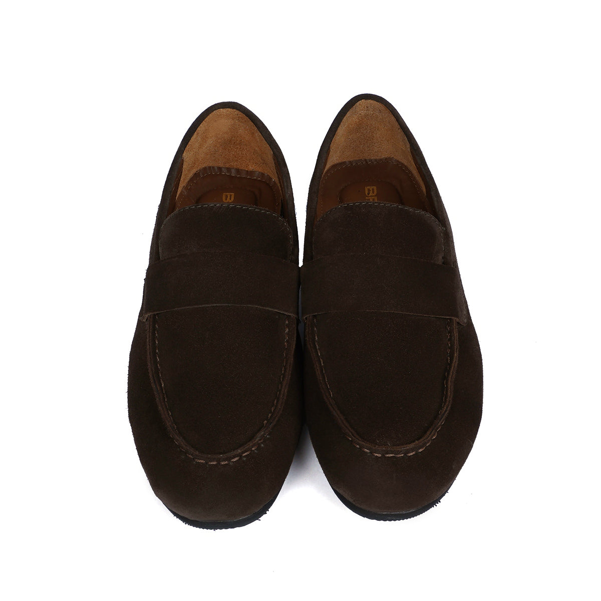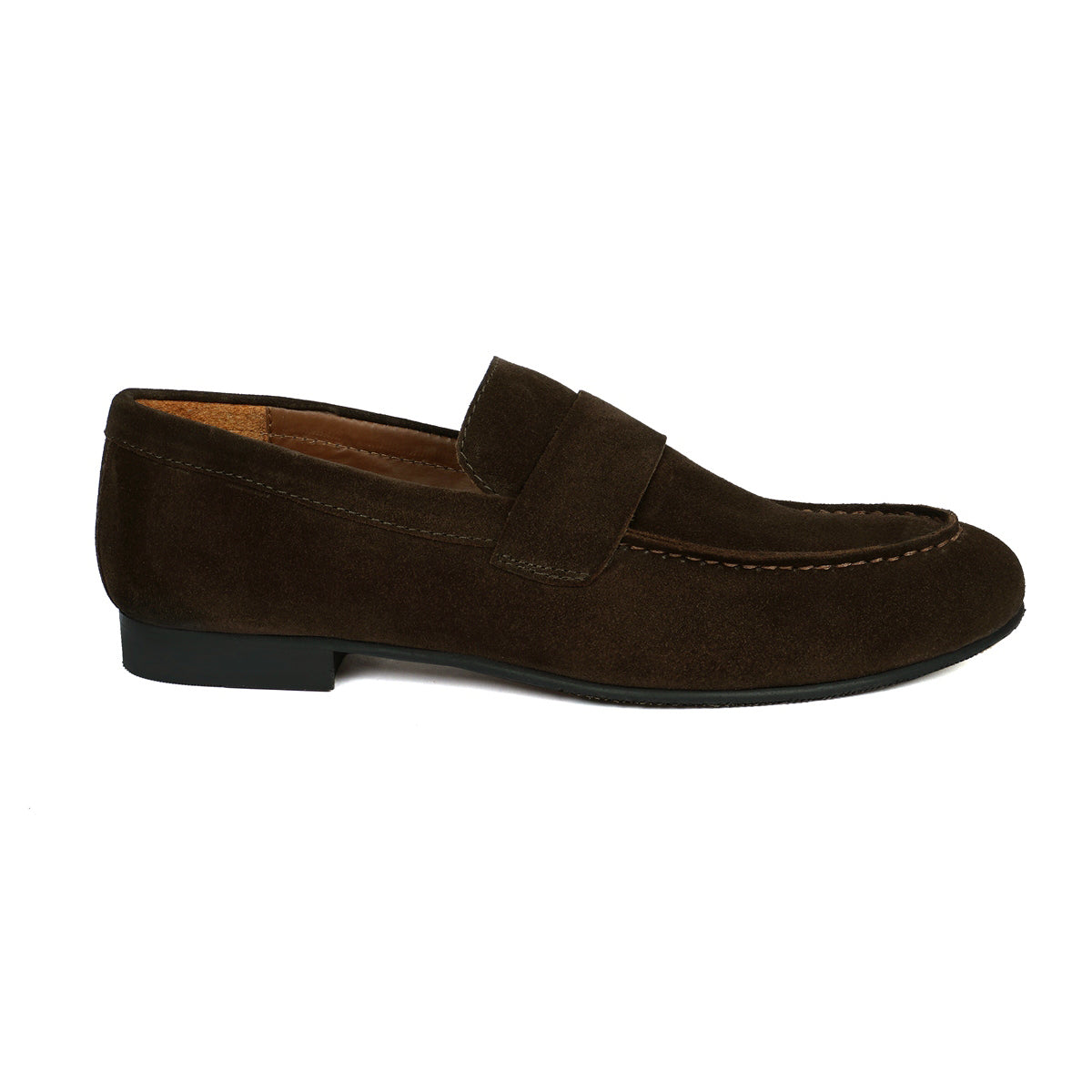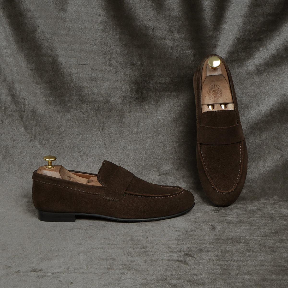 Casual Round Toe Penny Loafer in Dark Brown Suede Leather