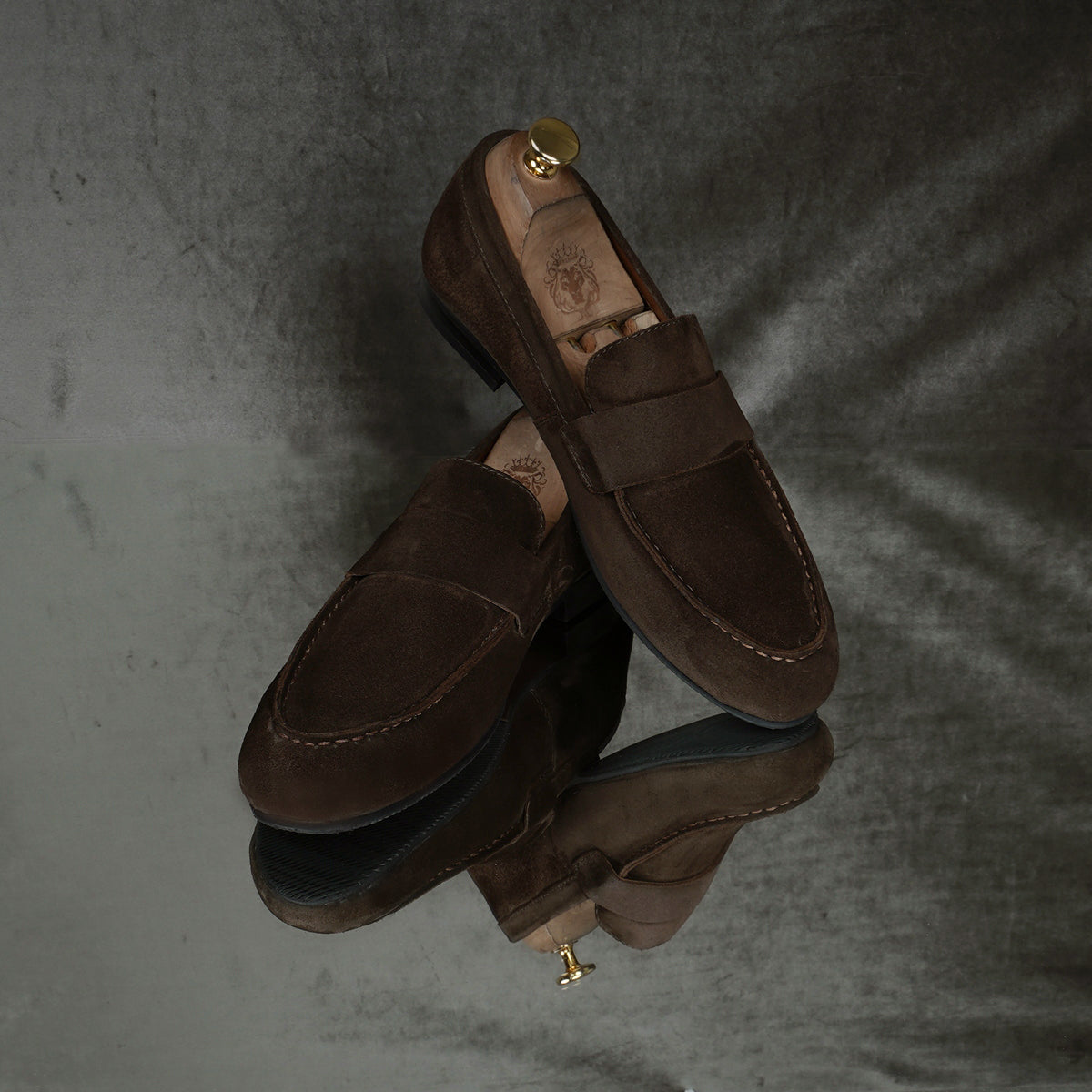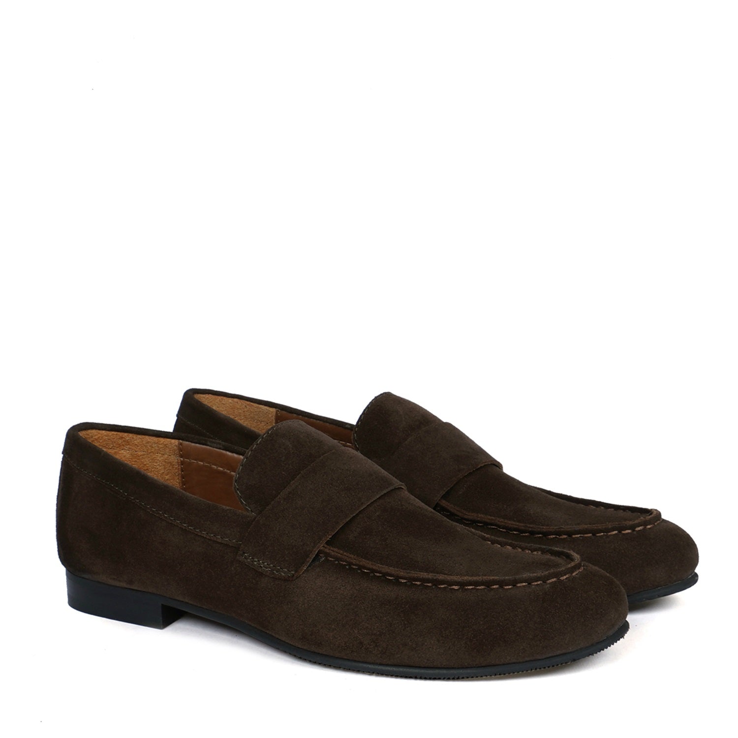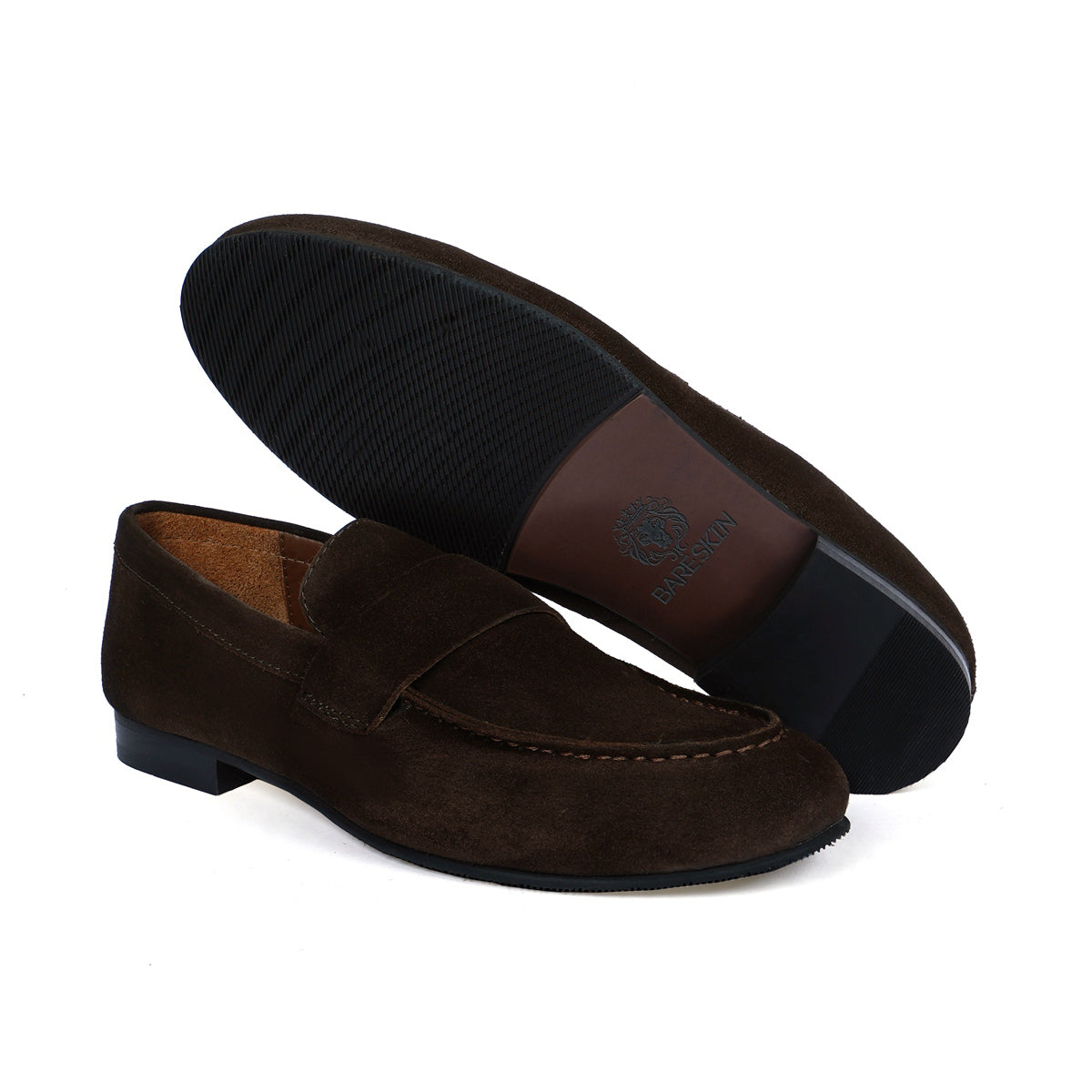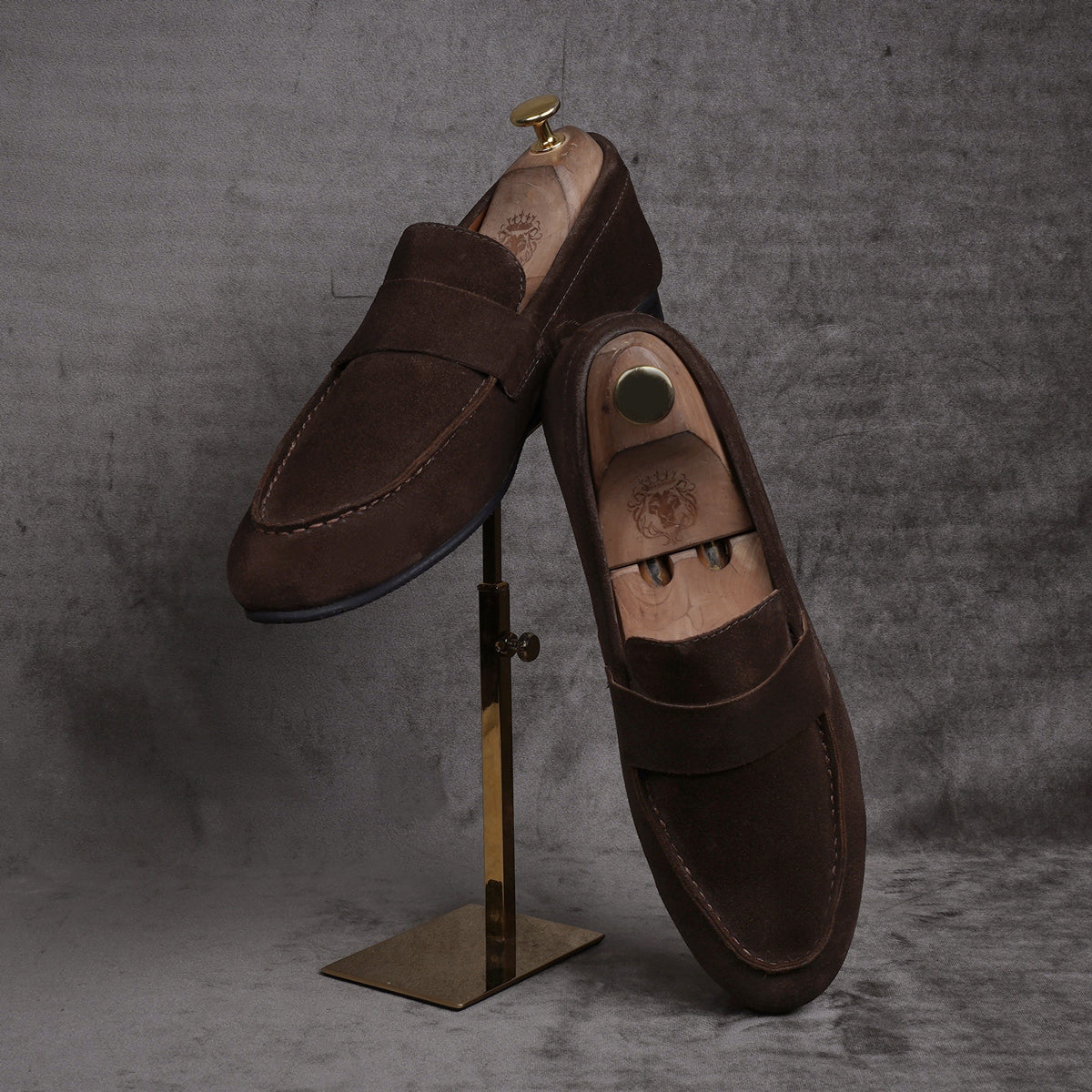 Casual Round Toe Penny Loafer in Dark Brown Suede Leather