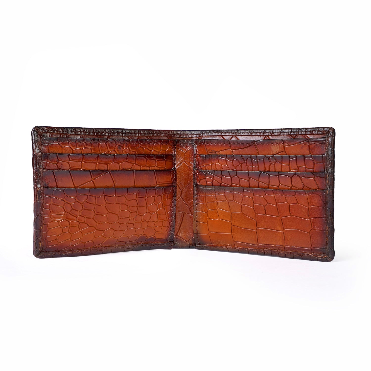 Men's Tan Bi-Fold Wallet in Deep Cut Croco Textured Leather