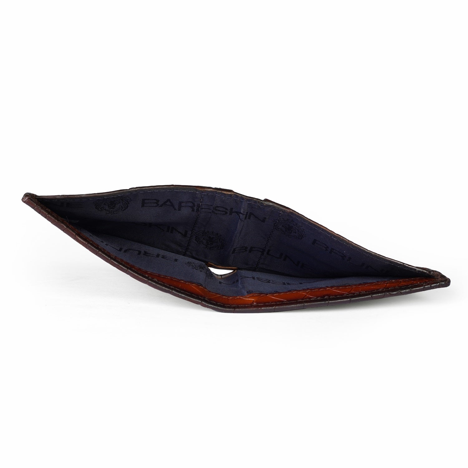 This bi-fold Tan Deep Cut Croco Textured leather wallet looks very elegant. The Brune & Bareskin signature metal Lion brand logo increases the style quotient. Bi-fold opening wallet features two main pockets along with small secure pocket on both sides. It has the total of 10 pockets, which makes it a perfect buy for today's generation. It provides the style and storage with artistic Patina regime leather color shades. 100% pure leather is used for making your style. When you choose branded by BRUNE & BARESKIN, you are sure to get more than a few glances coming your way. You can get your name initials on wallet with our bespoke services.