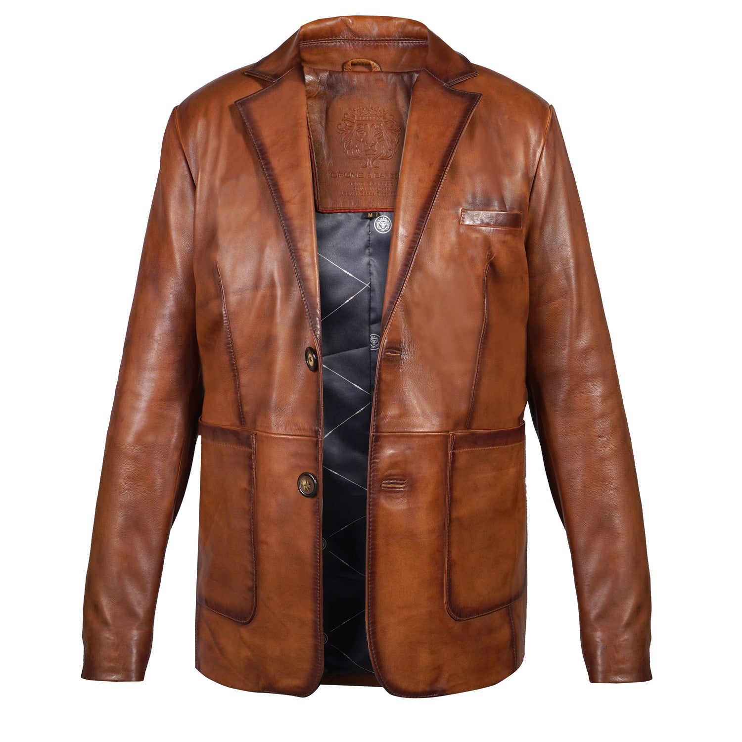 Formal Blazer Button Style Tan Leather Jacket For Men By Brune & Bareskin