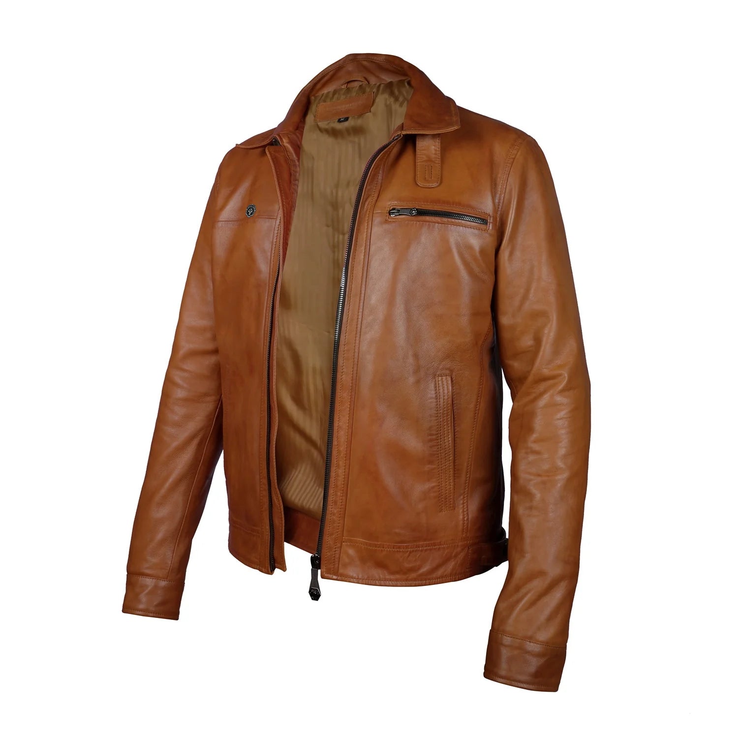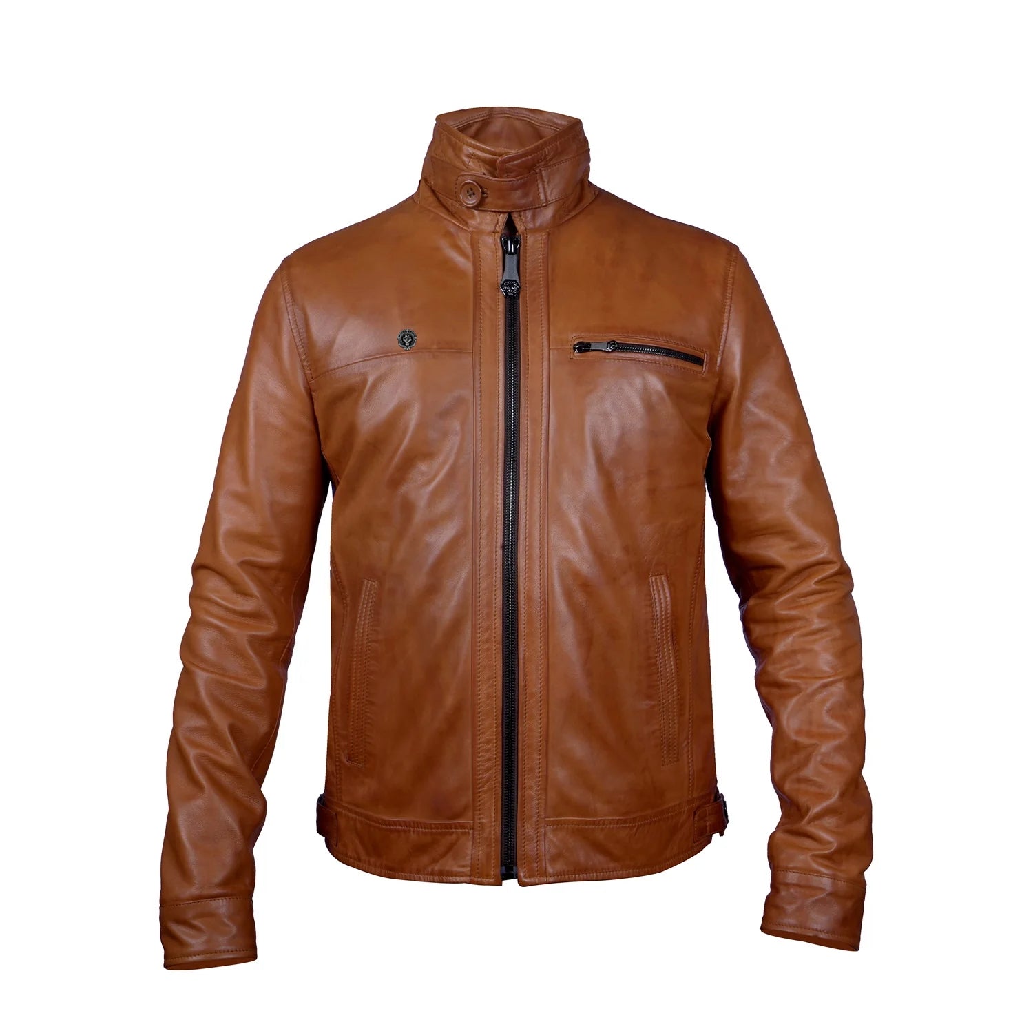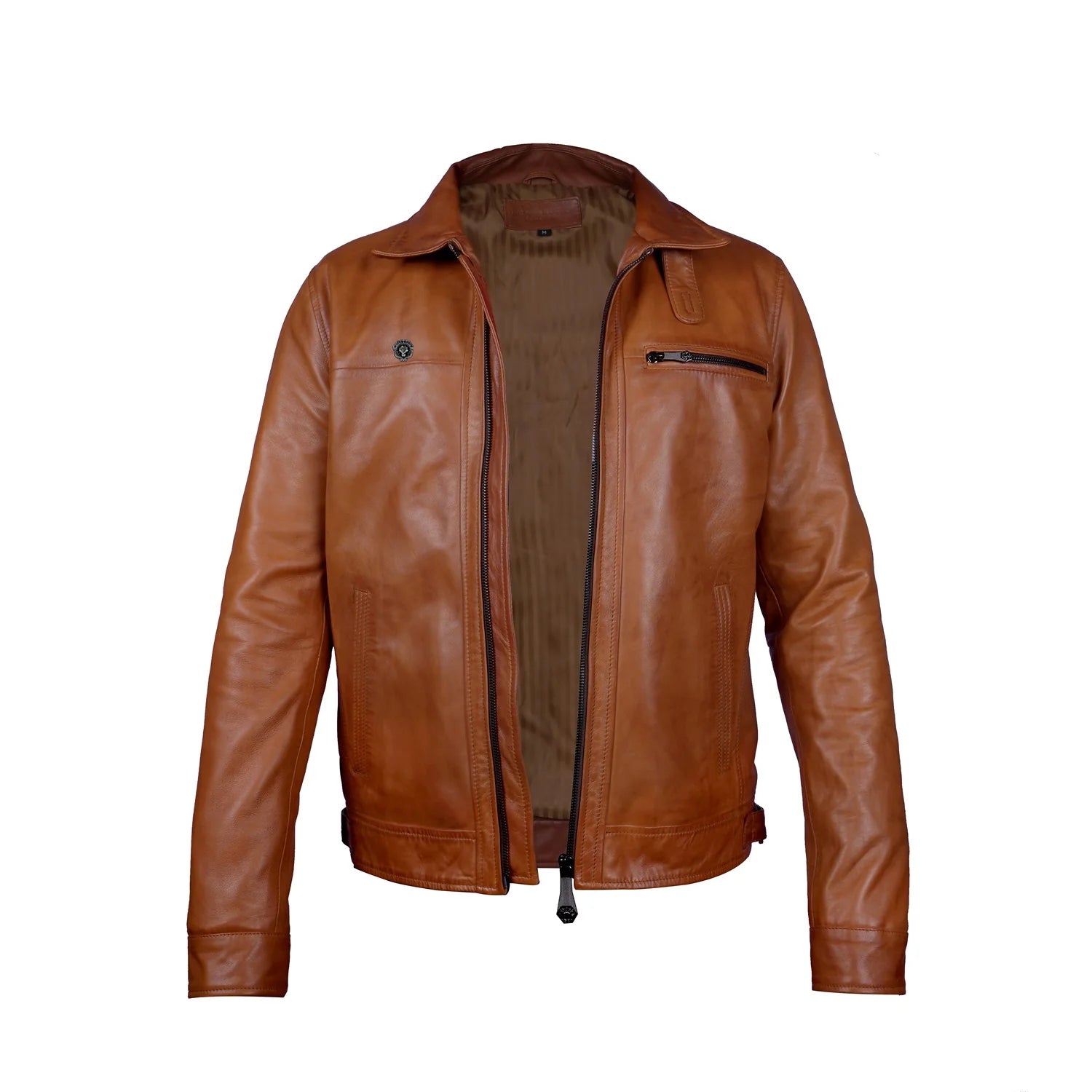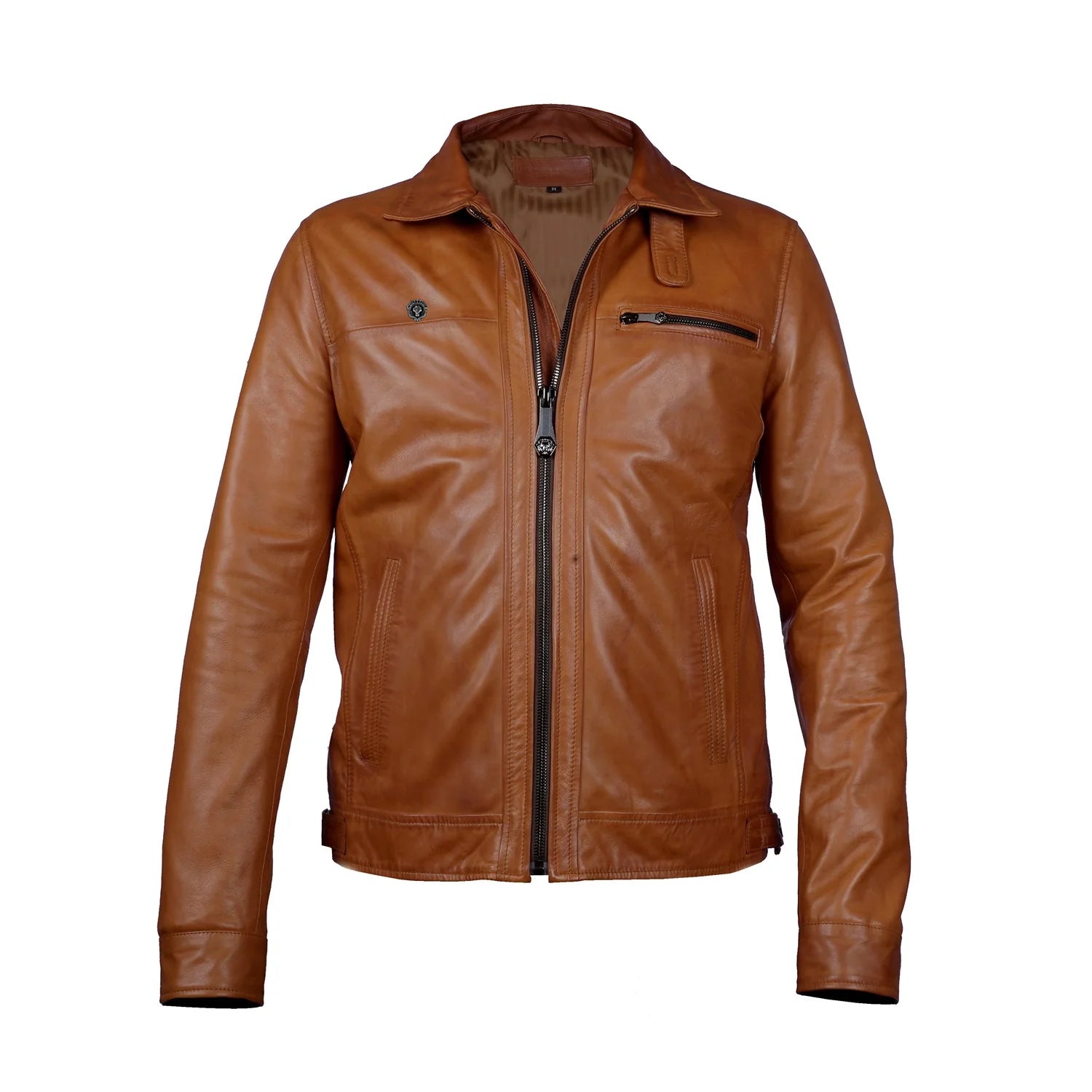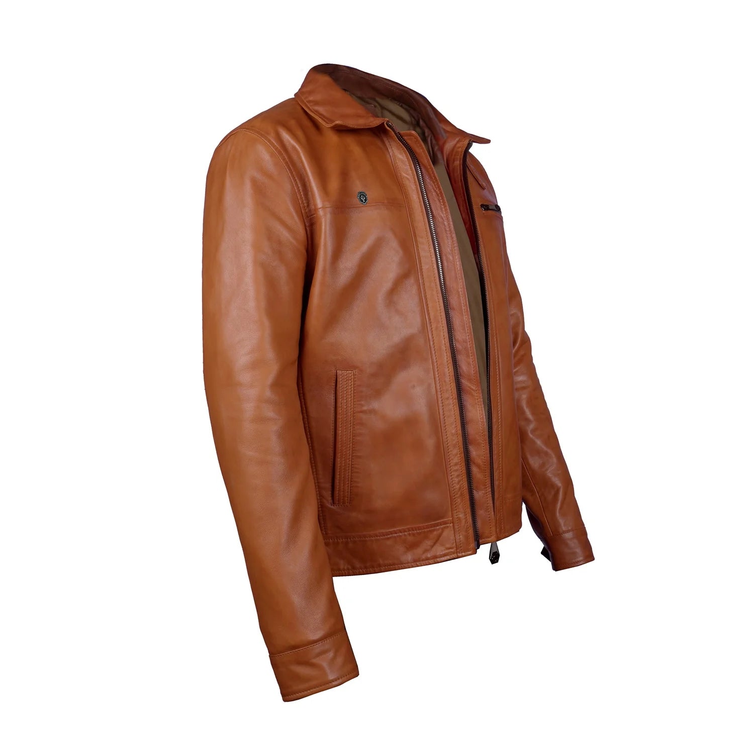 Tan Leather Regular Fit Zip Closure Jacket For Men By Brune & Bareskin