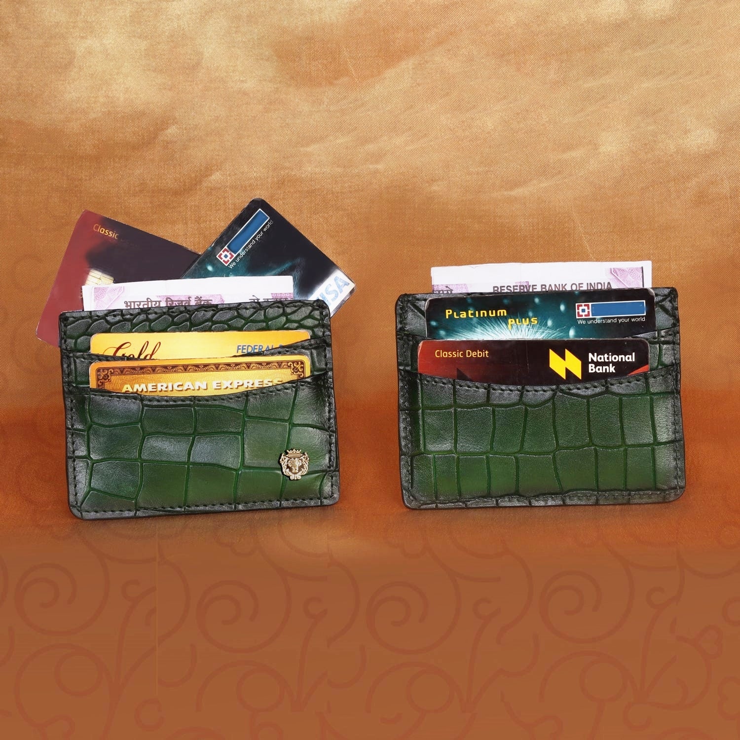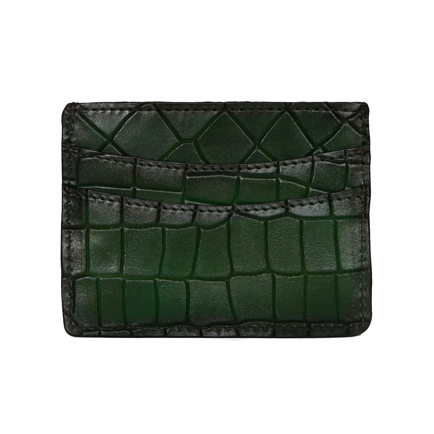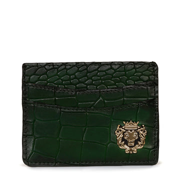Metal Lion Green Deep Cut Croco Textured Leather Card Holder By Brune & Bareskin